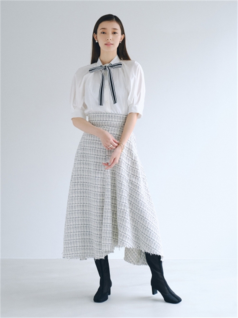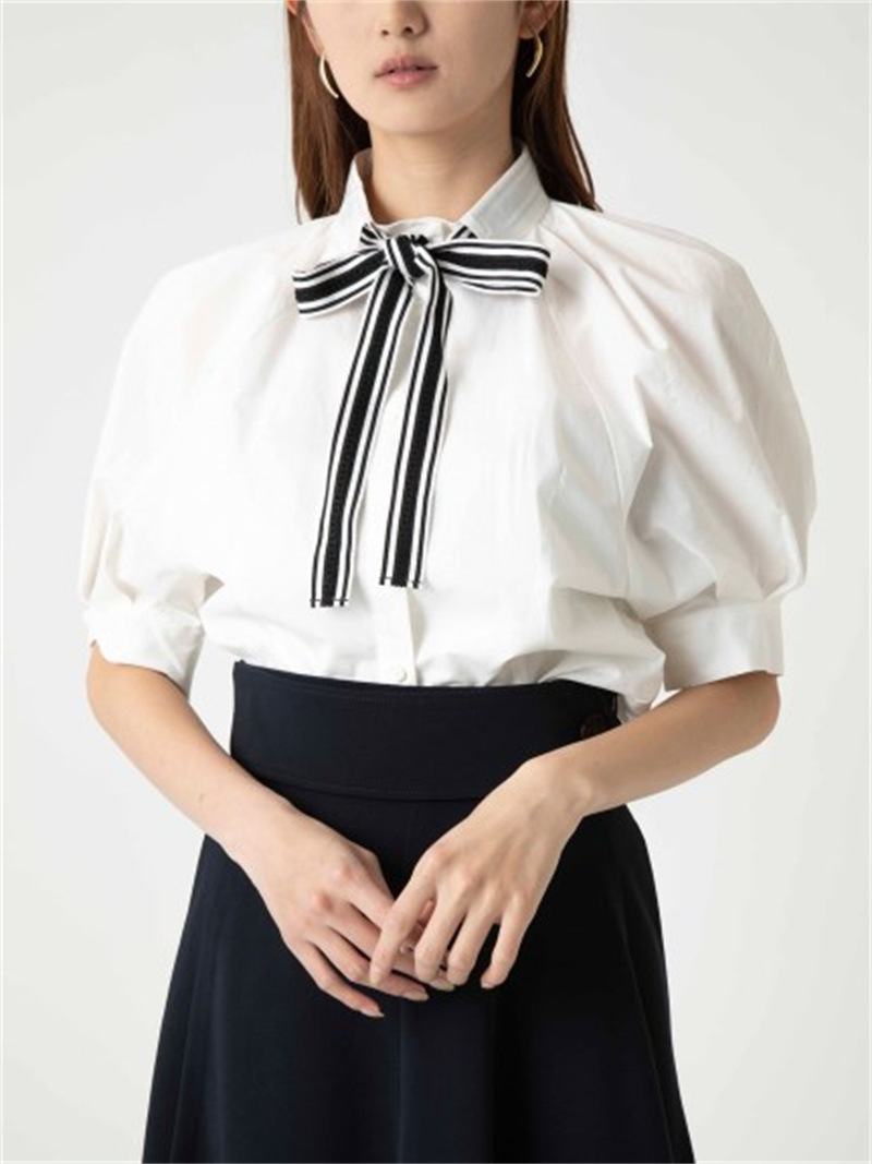 【フェミニンとモードが共存するワンランク上のボウタイブラウス】