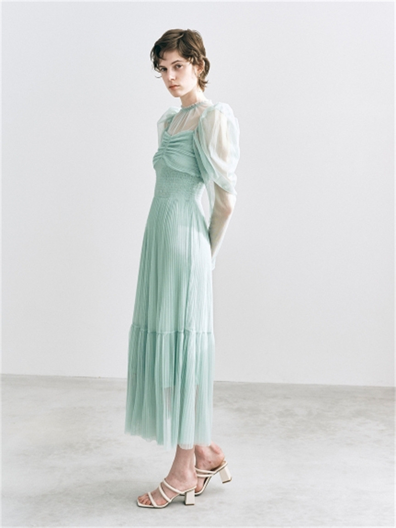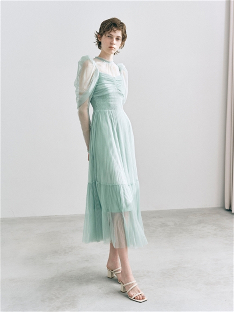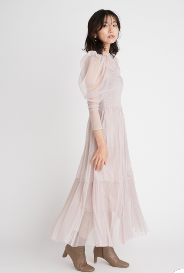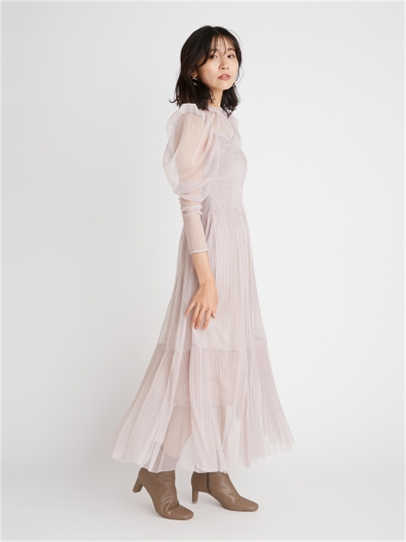 Sustainableプリーツチュールワンピース 単品購入で約5営業日内に発送します。
