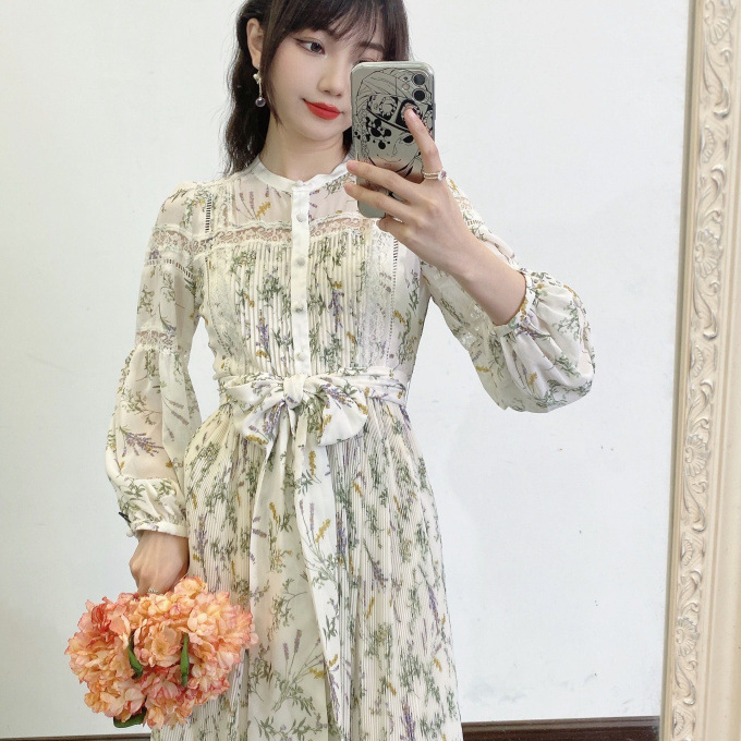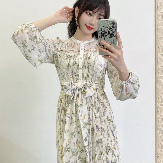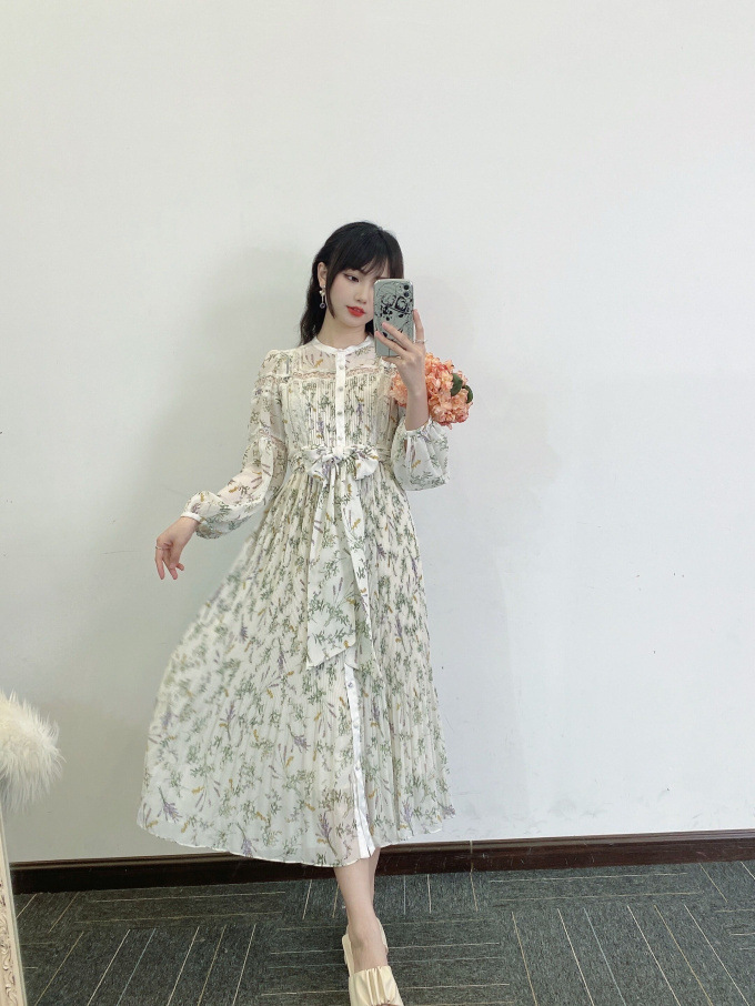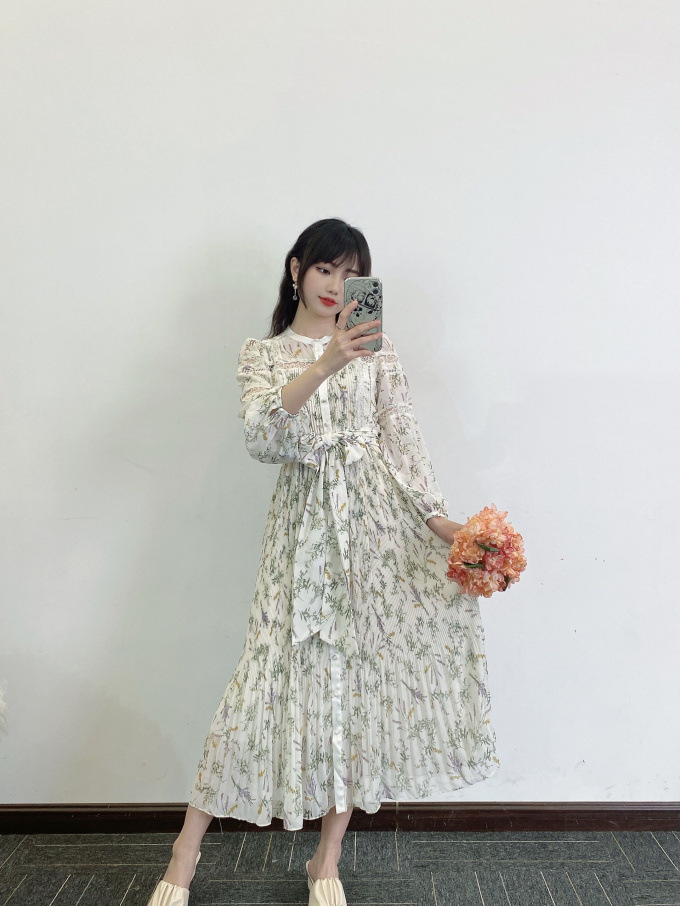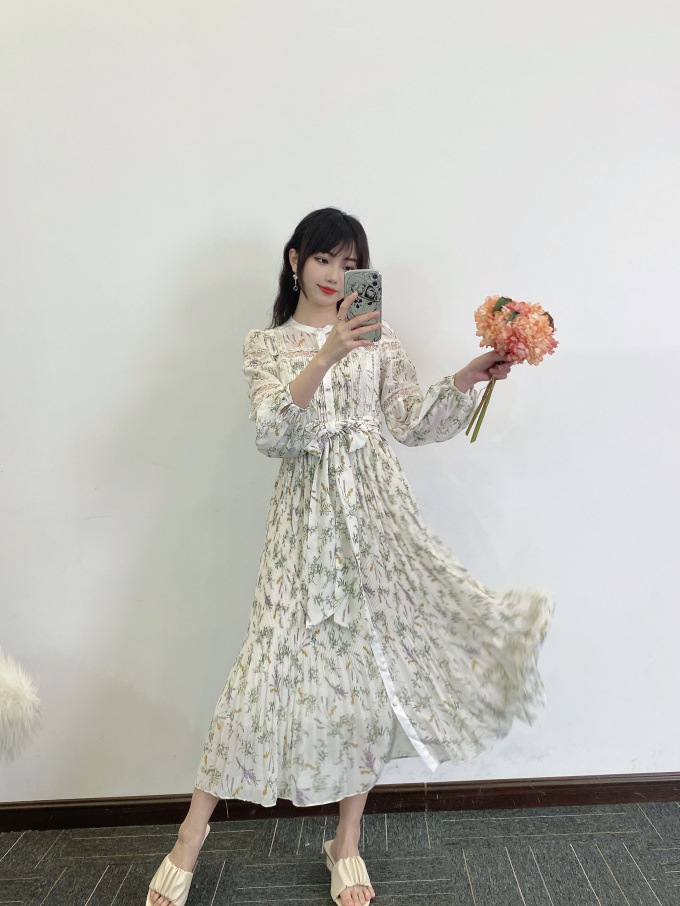 プリントプリーツワンピース 入金確認後3-5営業日発送(土日祝日除く)