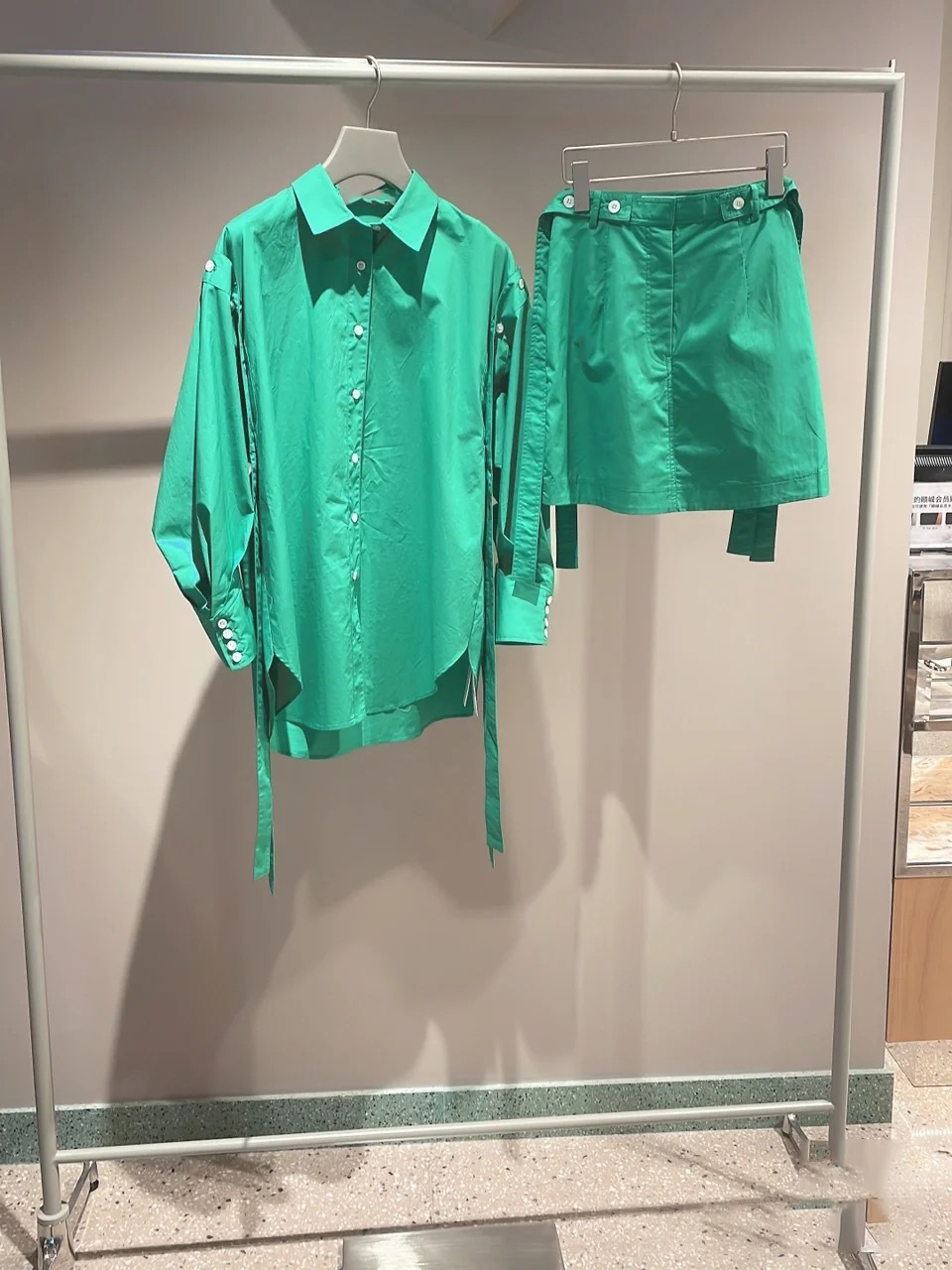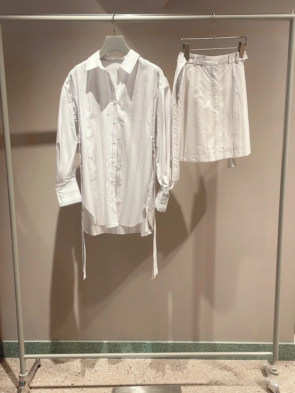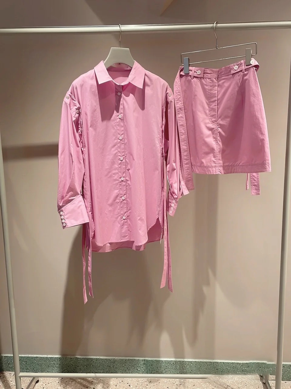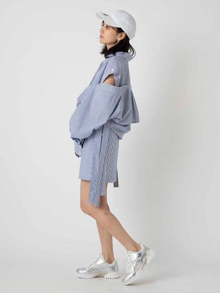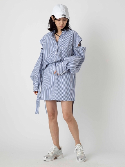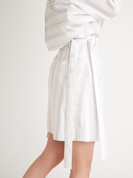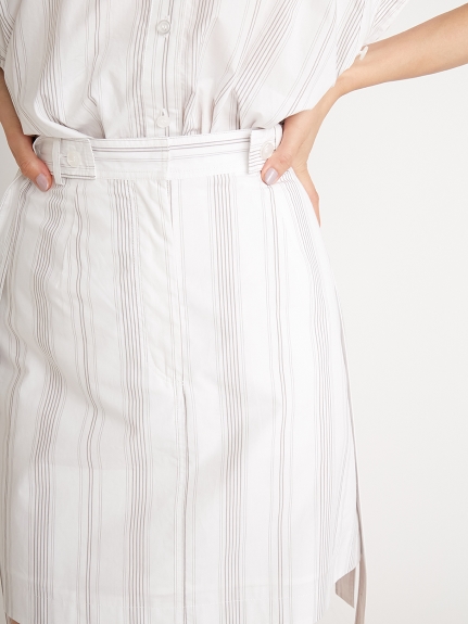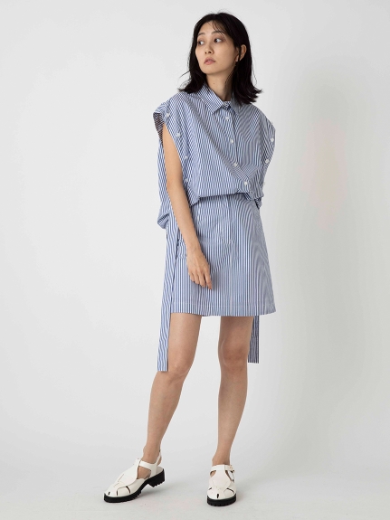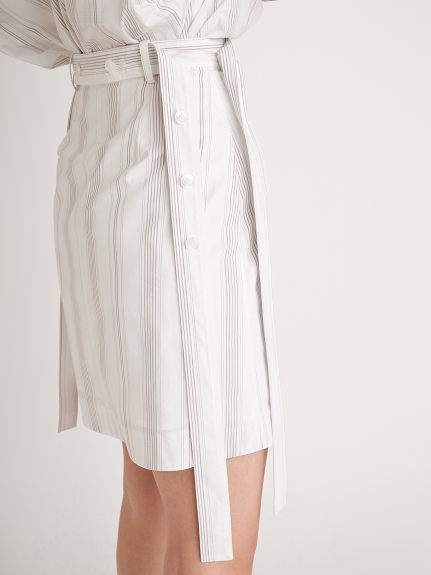 一見シンプルながら両脇にベルトを垂らした「SNIDEL」らしいこだわりのデザインが目を引くミニスカート。ベルトは取り外しできるので表情の変化も楽しめます。スタンダードな台形シルエットは様々なアイテムと好相性。同素材のオーバーシャツ(SWFB221129)を組み合わせた今年らしいセットアップスタイルもオススメです。フロントだけインすればミニワンピース風にも着こなせます。