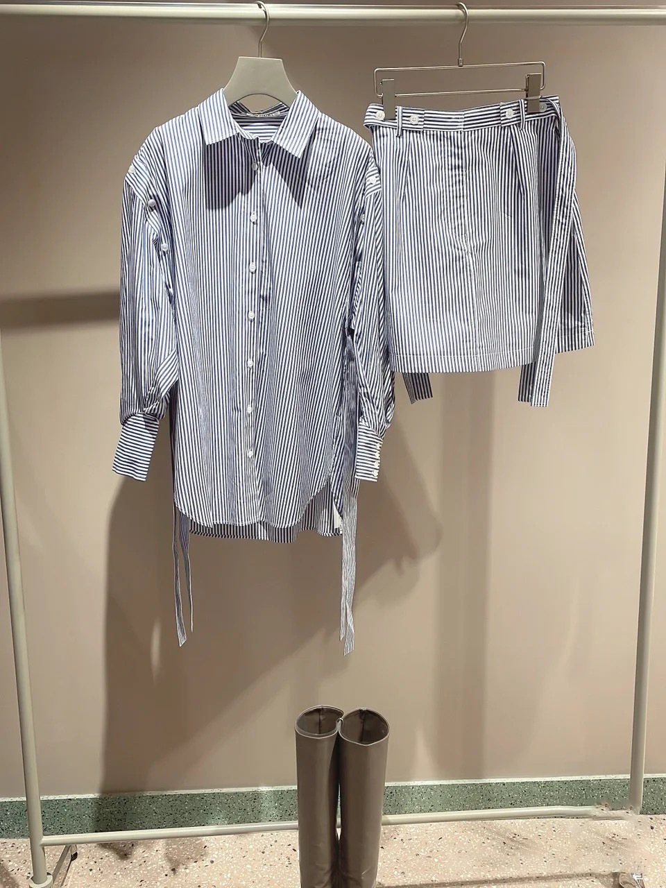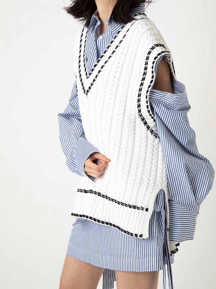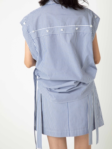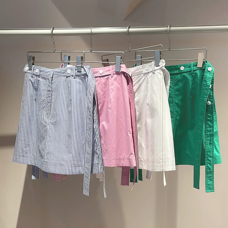 クリーンなムードを漂わせるライトなコットン生地を使用。無地の2色はオーガニックコットンを使用。ホワイトはグレーの細めのランダムストライプ、ブルーはベーシックながらトレンドの青白の細ピッチストライプ、グリーン&ピンクは無地ですがトレンドライクな発色のいい色でご用意しました。