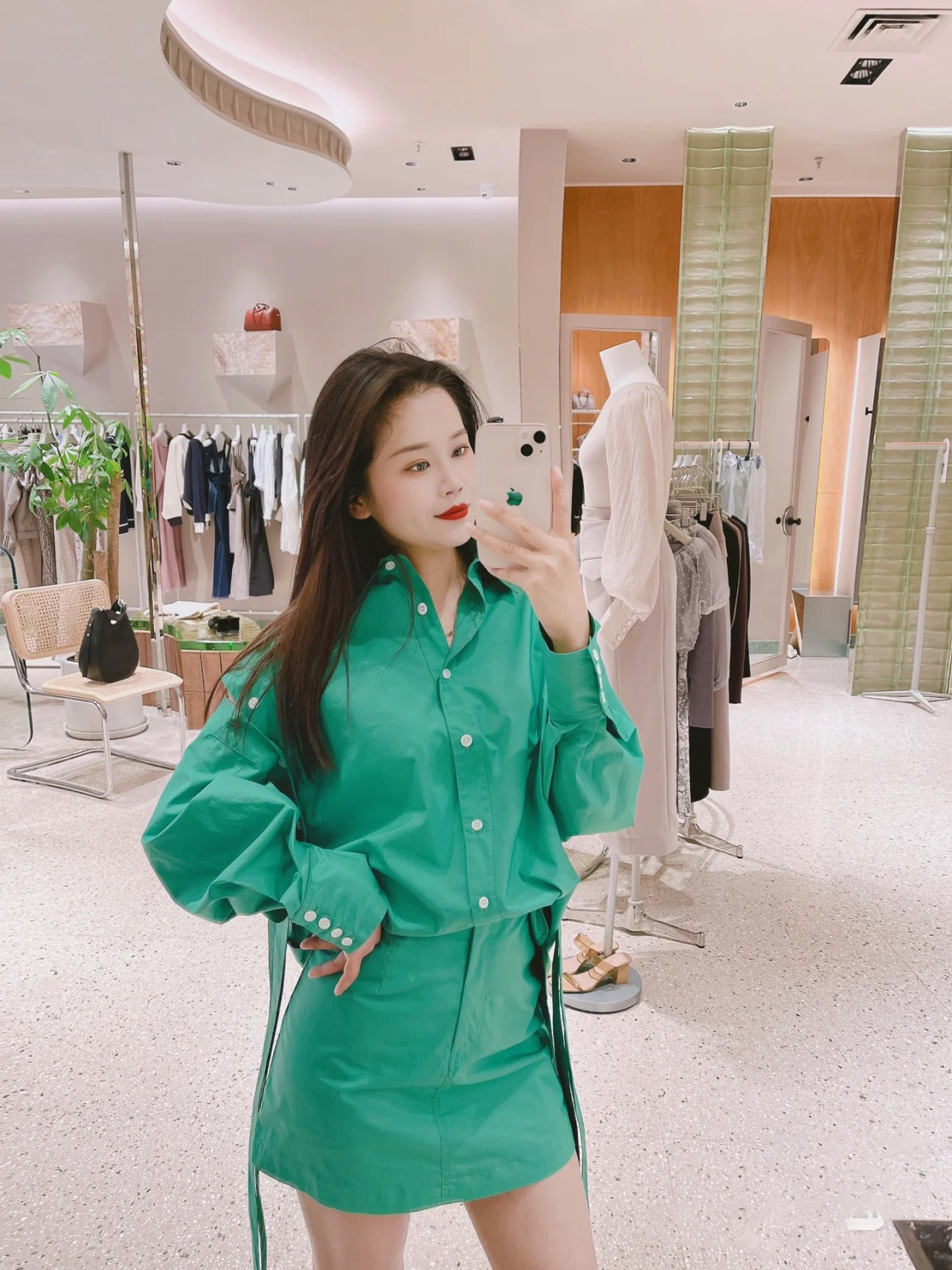 【こだわりのベルトデザインでモードに仕上げたミニスカート】