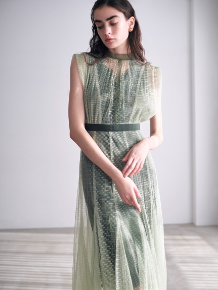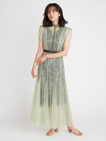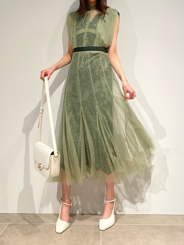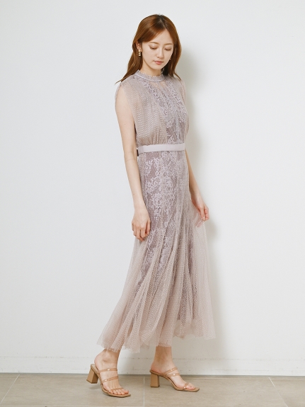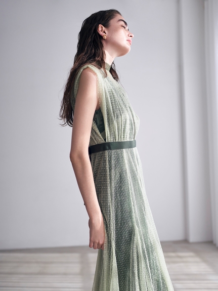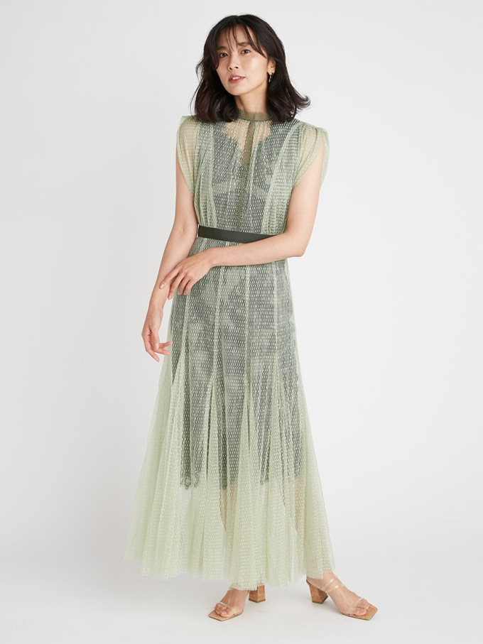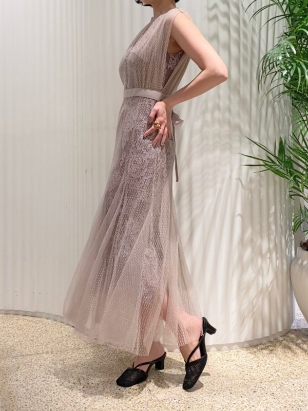 【繊細なマテリアル使いが洗練フェミニンスタイルを叶えるレイヤードドレス】