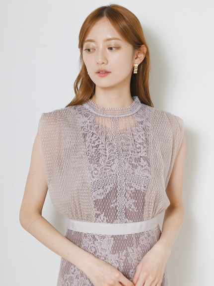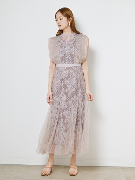 シアーなドットチュールとフラワーレースを重ね合わせた、エレガント&モードなオケージョンドレス。それぞれのマテリアルの色を変えることで、奥行のある美しい表情を演出しています。分量感たっぷりに広がるマーメイドシルエットでトレンド感もしっかりとKEEP。それぞれ別々にして他のアイテムとも組み合わせられるので、これだけでコーディネートの幅は一気に広がります。