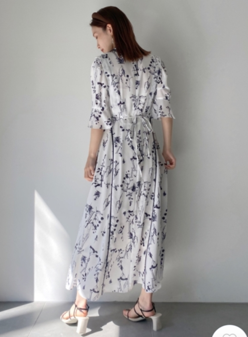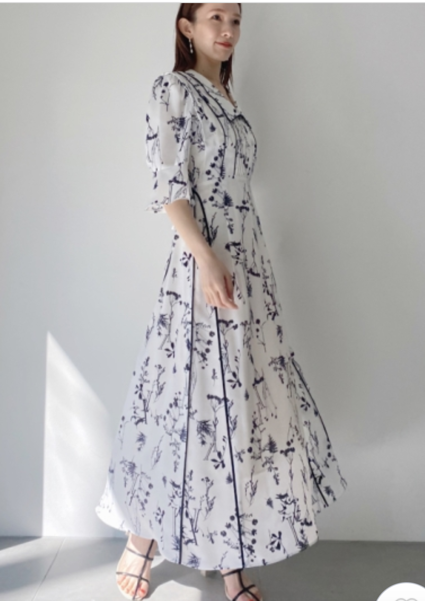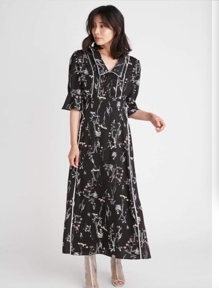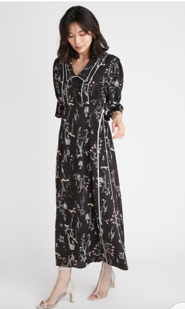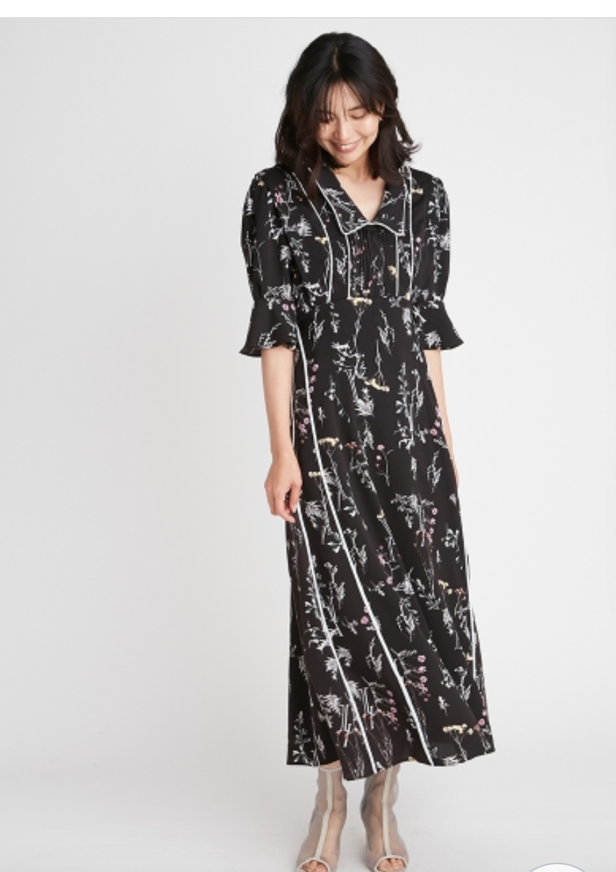 【こだわりのパイピングディテールが光るプリントワンピース】