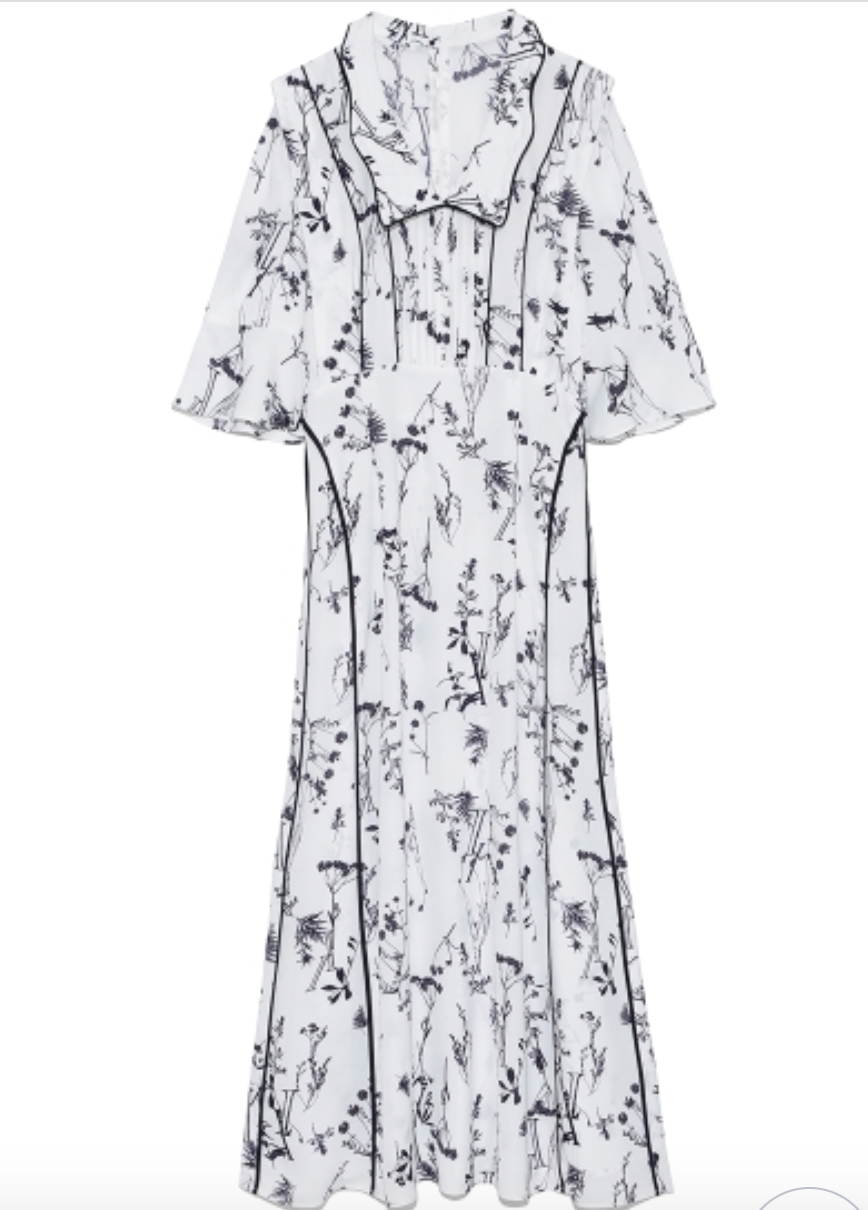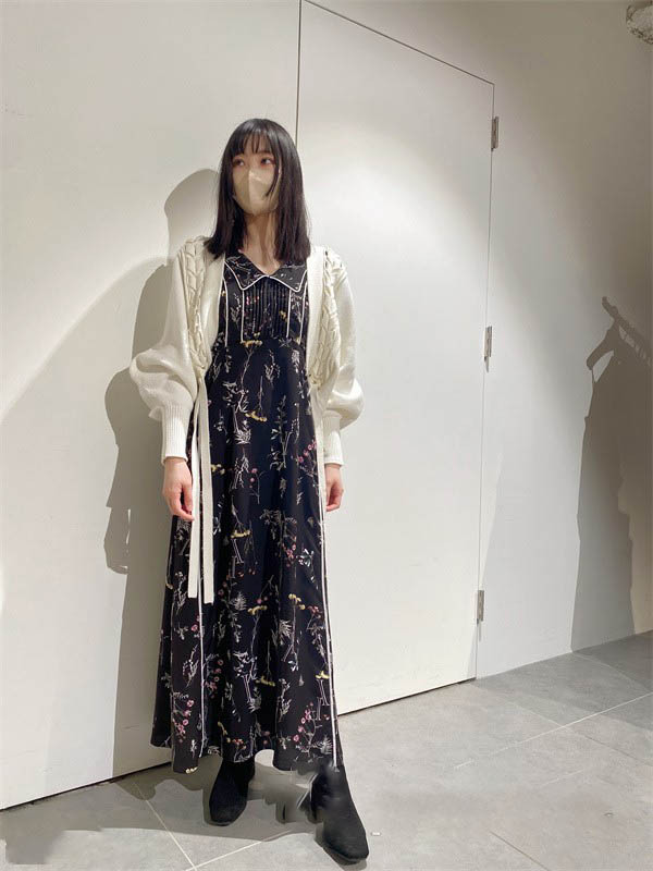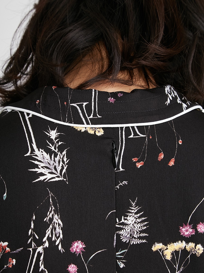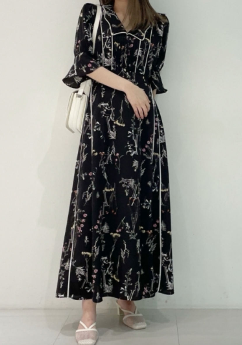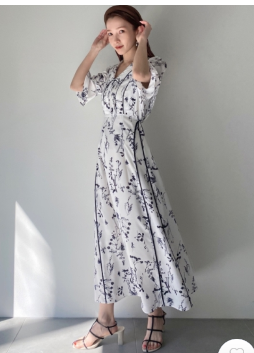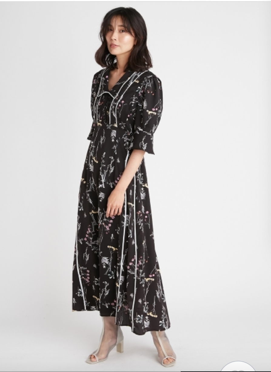 【こだわりのパイピングディテールが光るプリントワンピース】