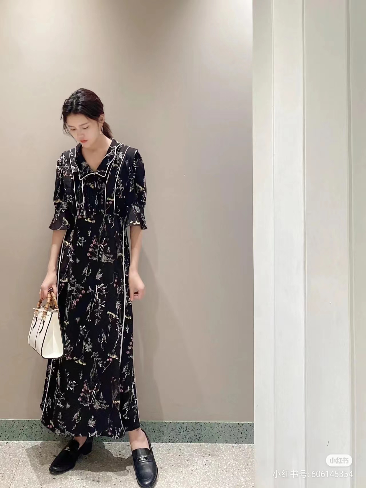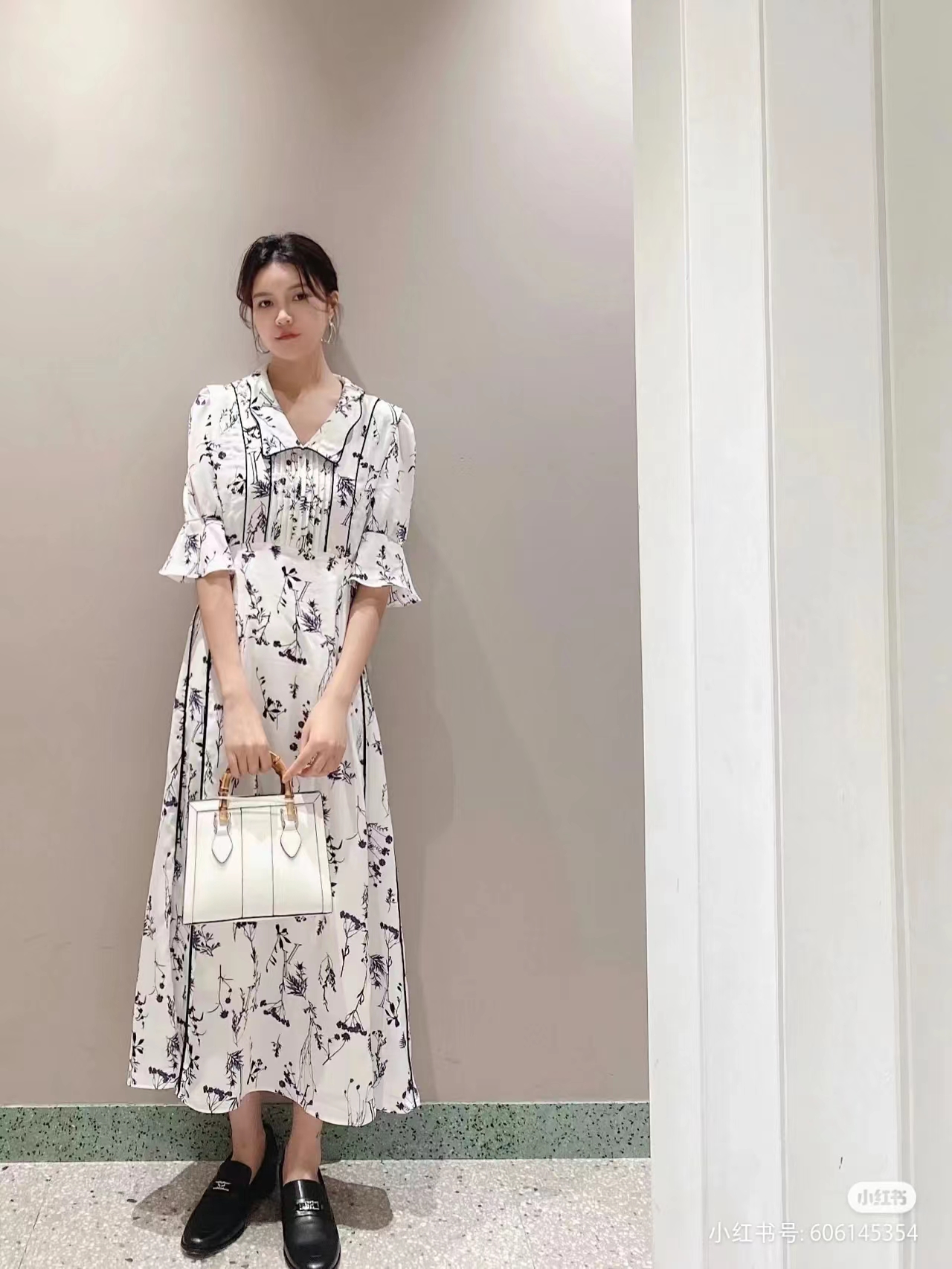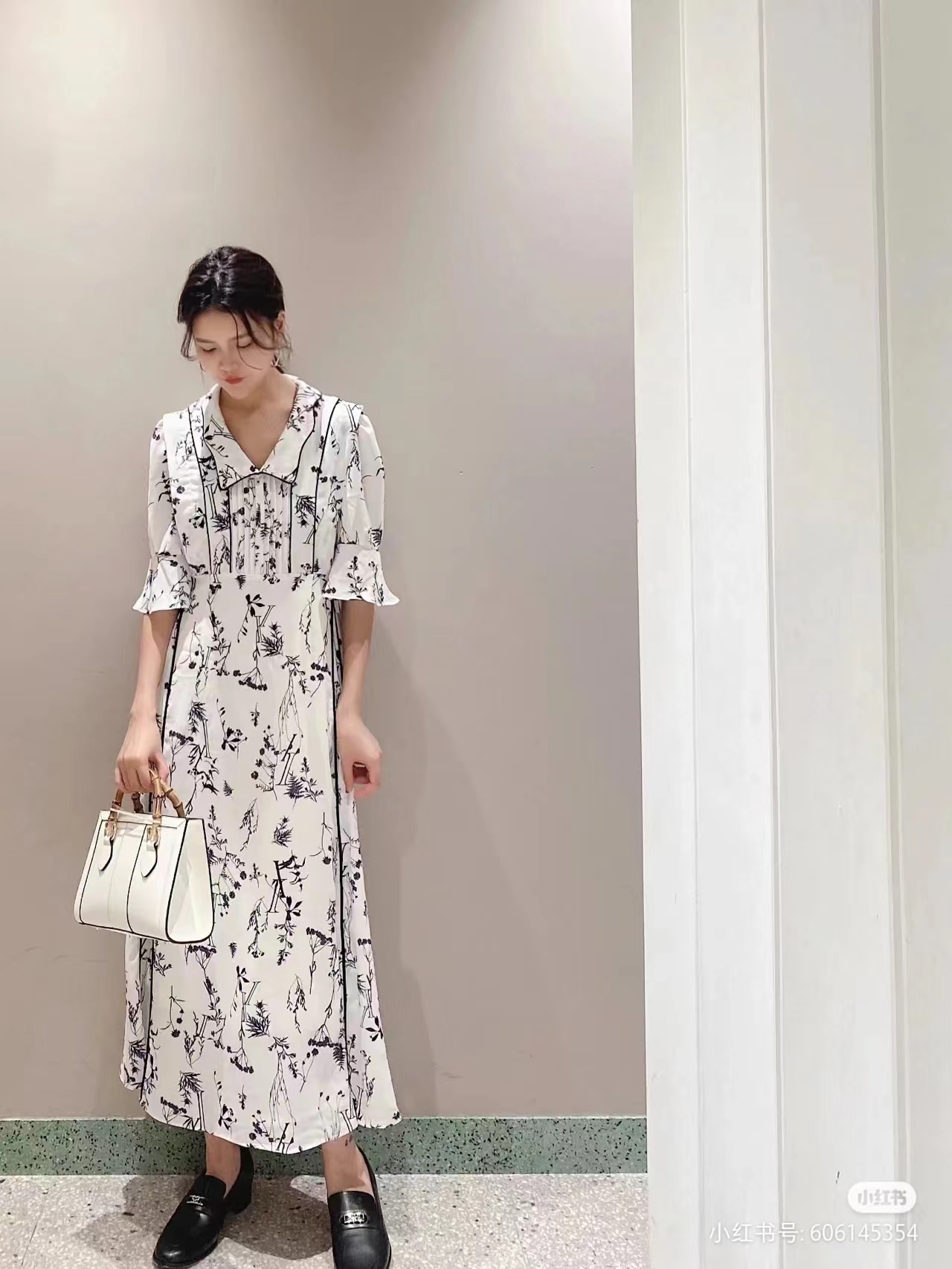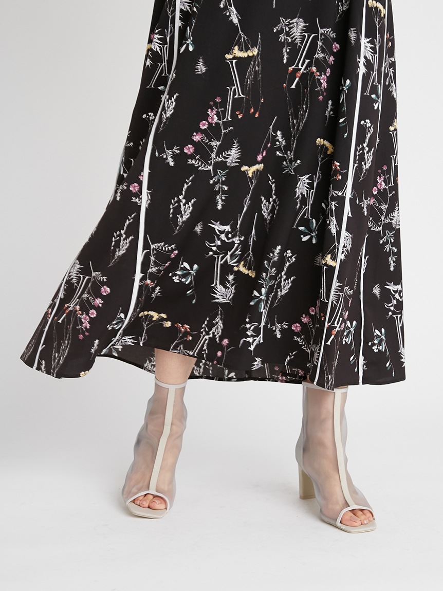 【こだわりのパイピングディテールが光るプリントワンピース】