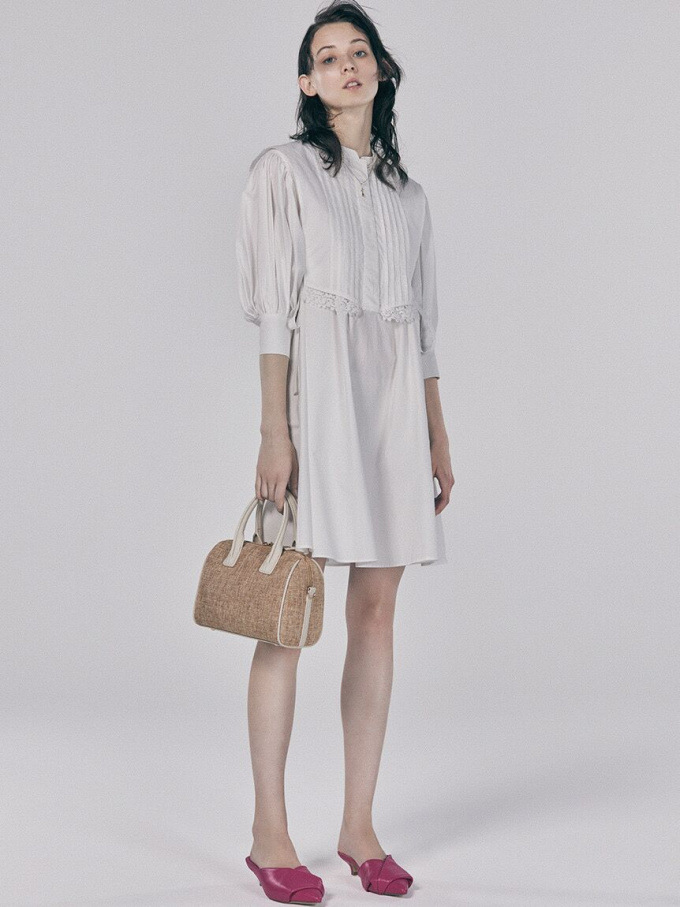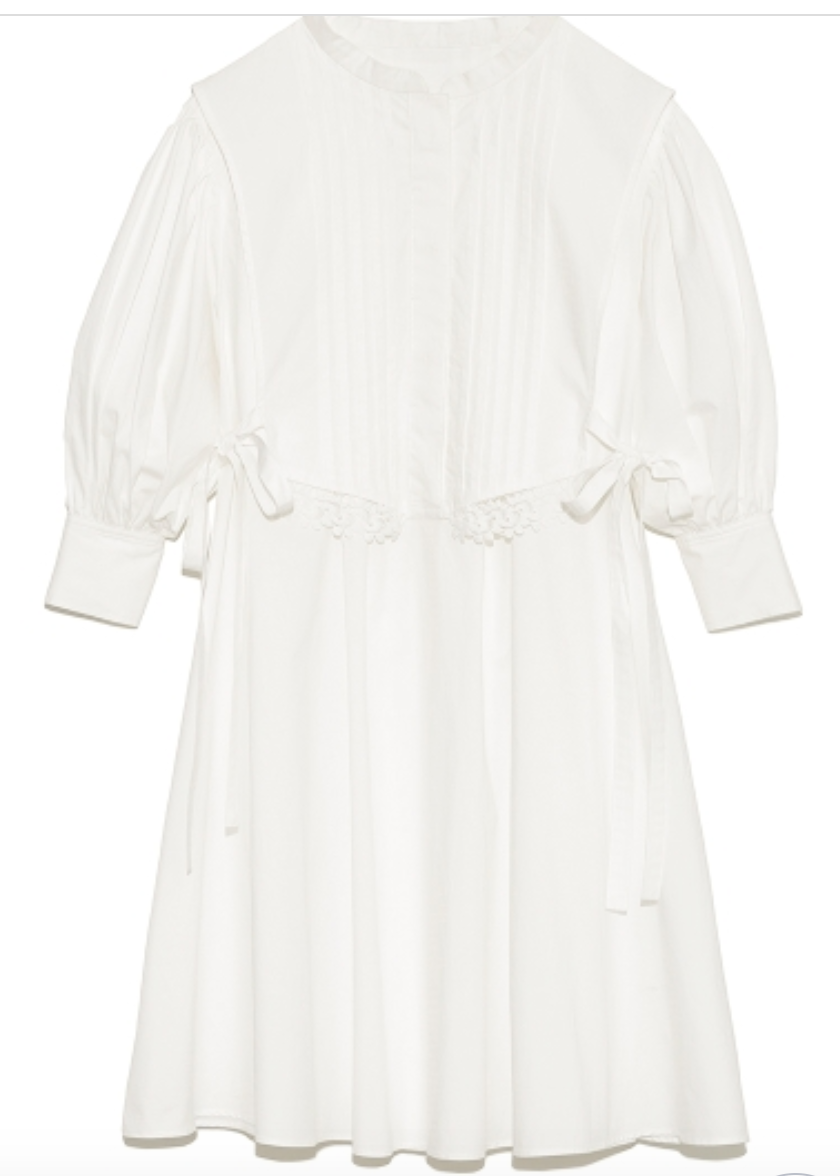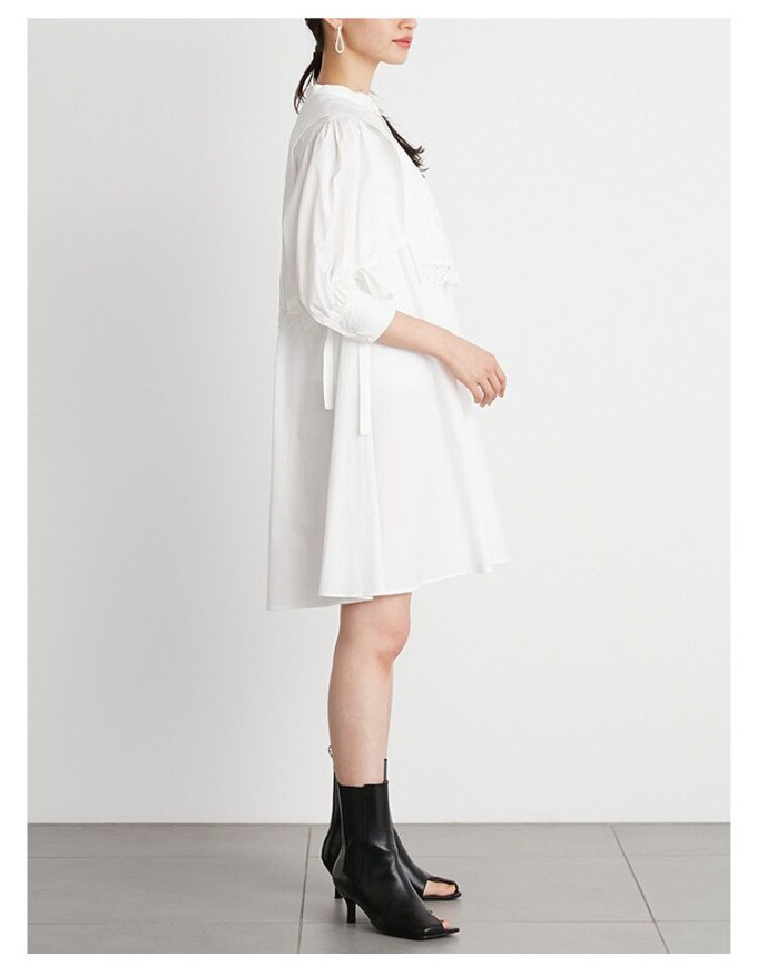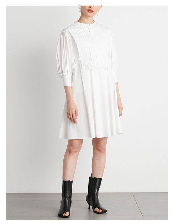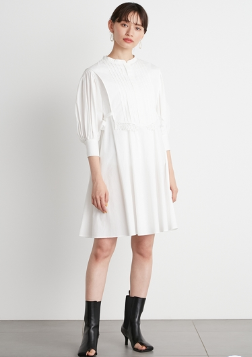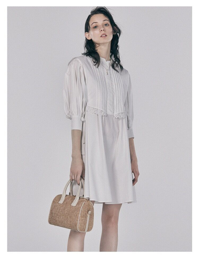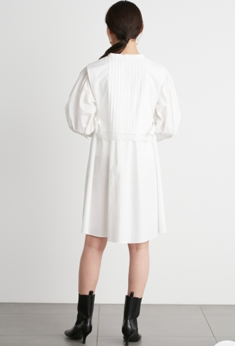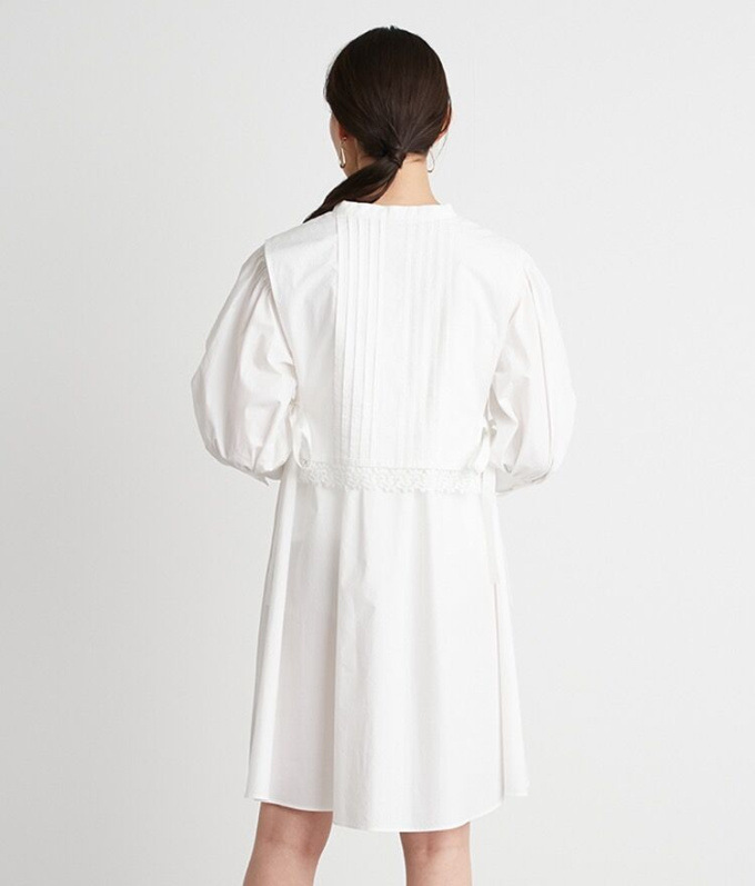 ピンタックできちんと感のある表情を演出したベストをドッキング。王道クラシカルな雰囲気で着こなしの鮮度を高めてくれるミニワンピースが届きました。ふっくらとしたボリュームスリーブや裾に施したレース刺繍、脇のリボンなど、女性らしさを高めるディテールが詰まった1着です。1枚で着るのはもちろん、パンツなどをレイヤードした今年らしいスタイリングもオススメ。