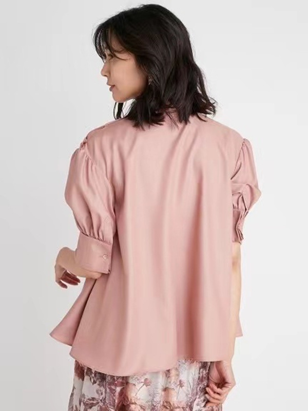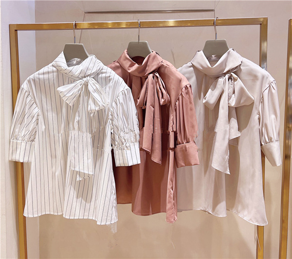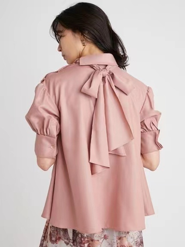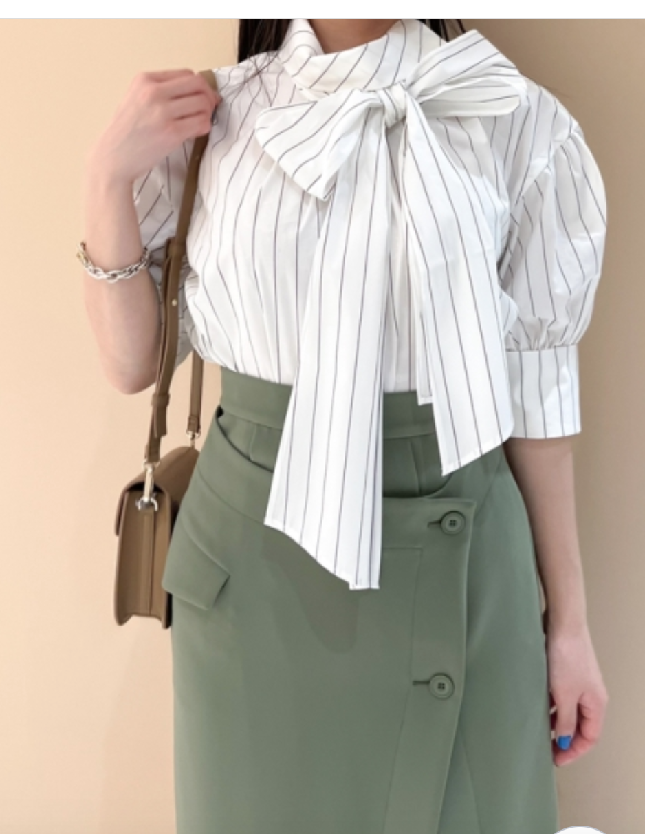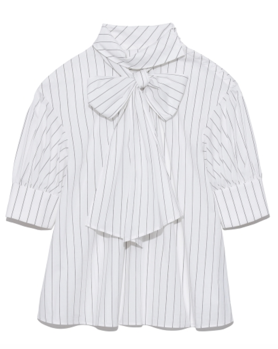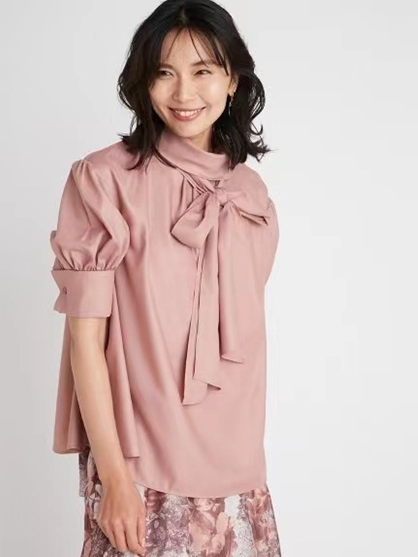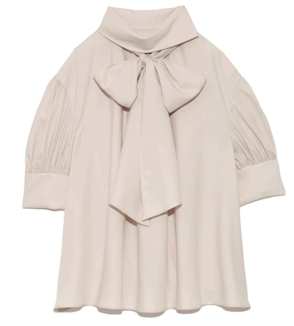 スタンドカラーボウタイブラウス