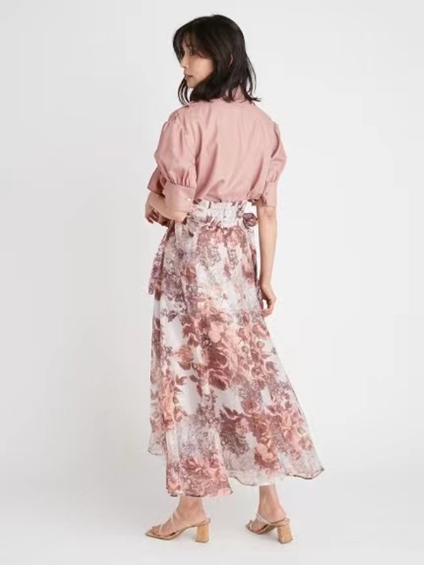 シャツ地風の滑らかで落ち感のあるポリエステル素材を使用しました。優しいニュアンスのライトピンク、春ムード薫るピンク、トレンドライクなストライプの3色展開です。