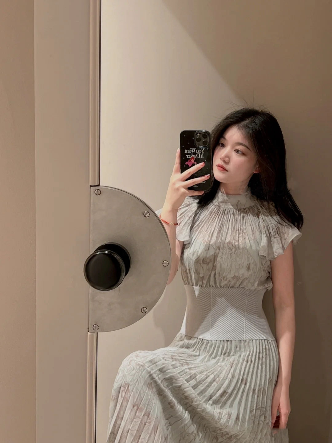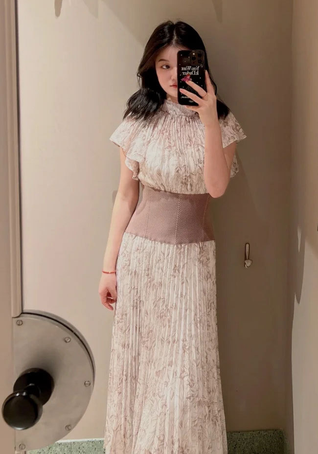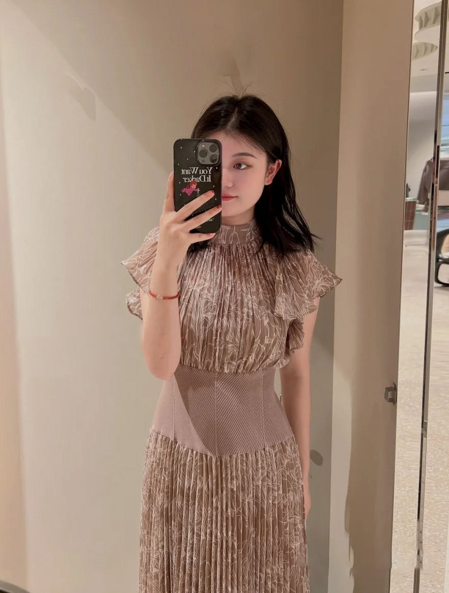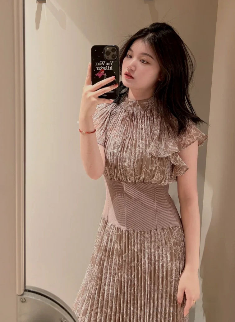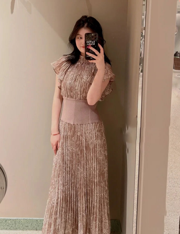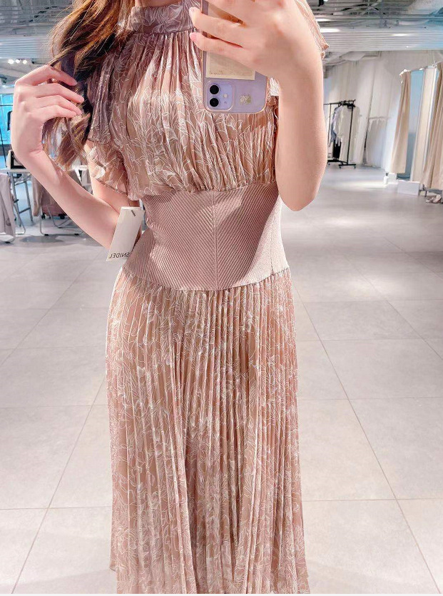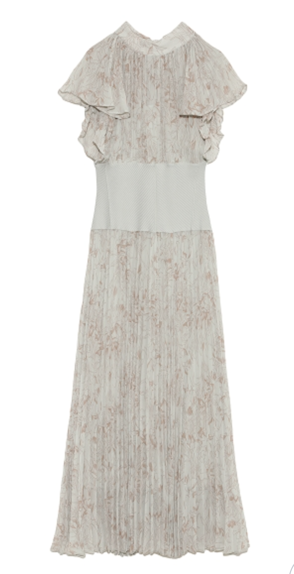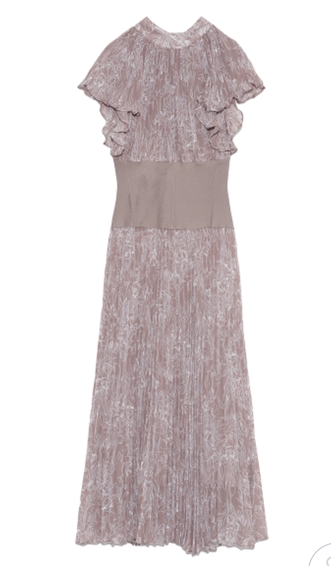 前シーズン人気を集めたワンピースが今季も登場。女性らしい華やかさを演出するシアーなシフォンに線画で表現した花柄を浮かべ大人っぽくまとめました。異素材の絶妙なバランスがモード感を演出するウエストのリブ切り替えは、身体のカーブを強調しスタイルアップ効果は絶大。エレガントに波打つフレアスリーブや品の良いスタンドカラーなど「SNIDEL」らしいディテールは継承し、どこまでも女性らしく仕上げています。