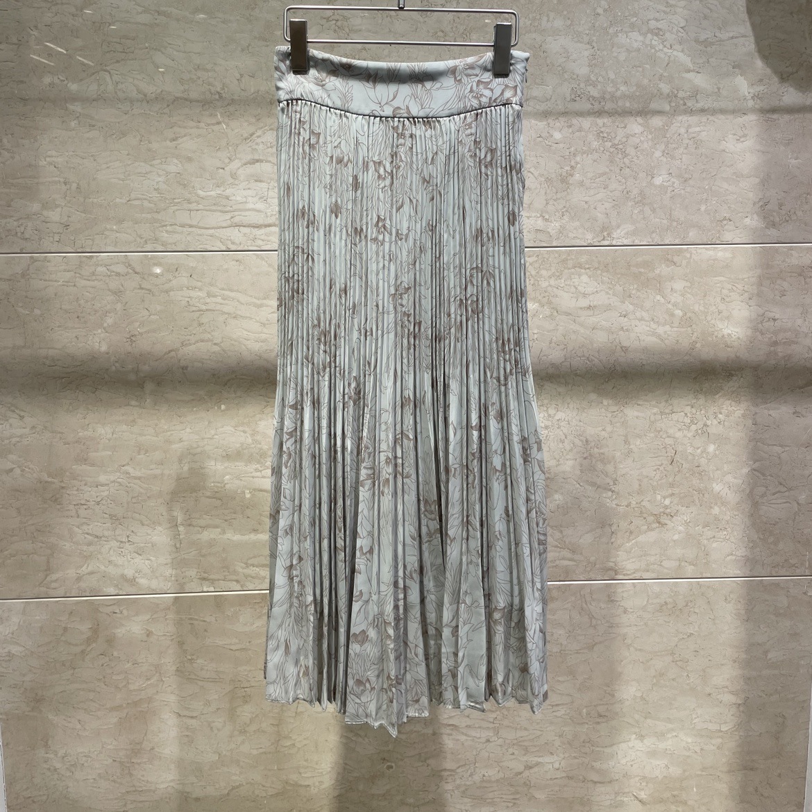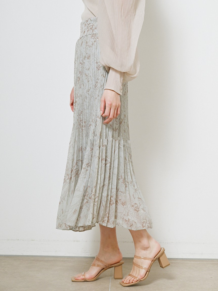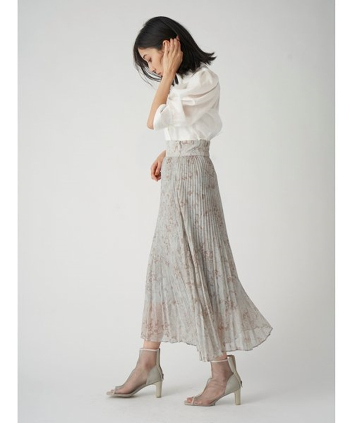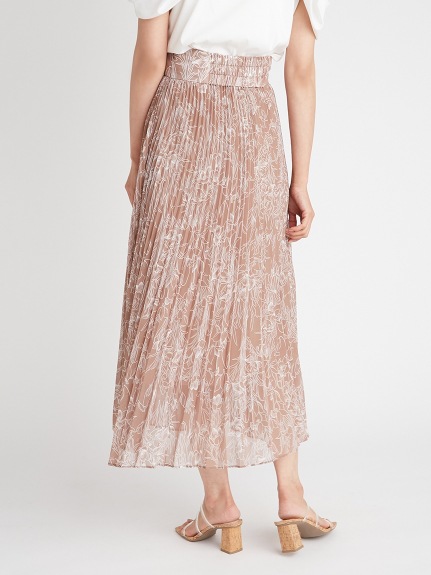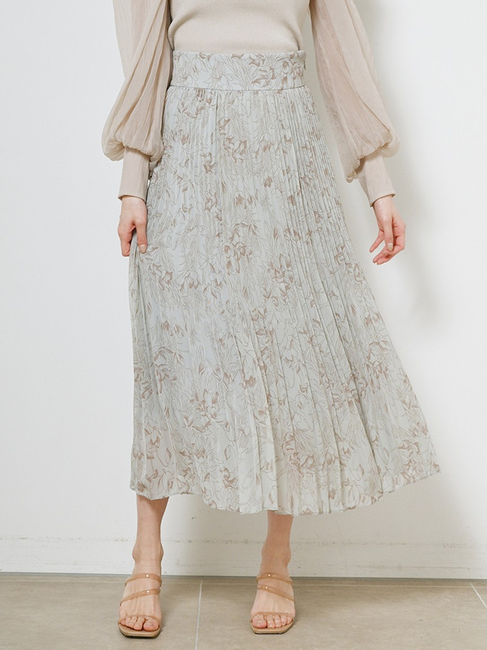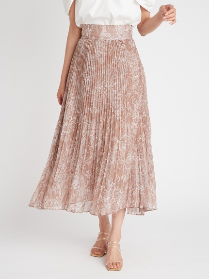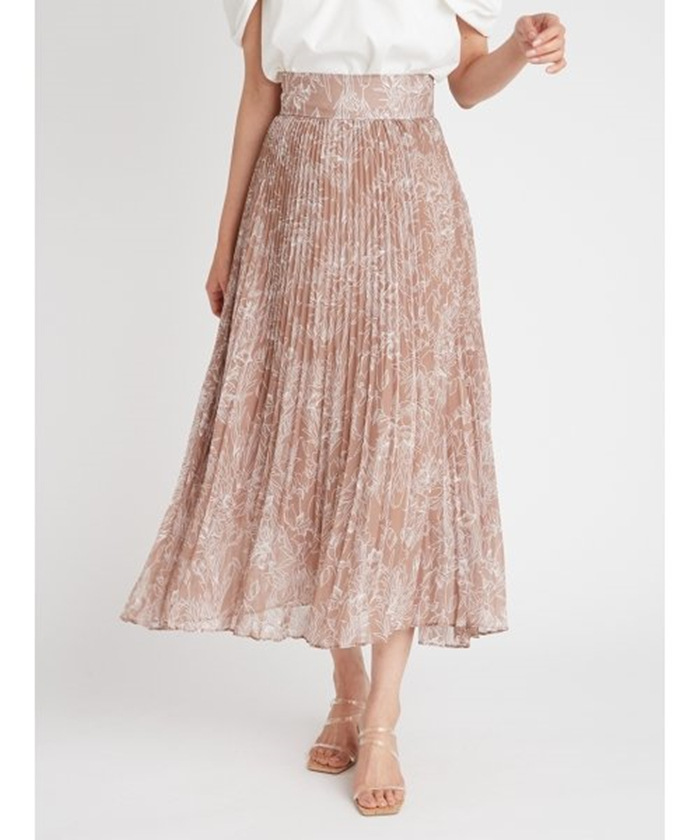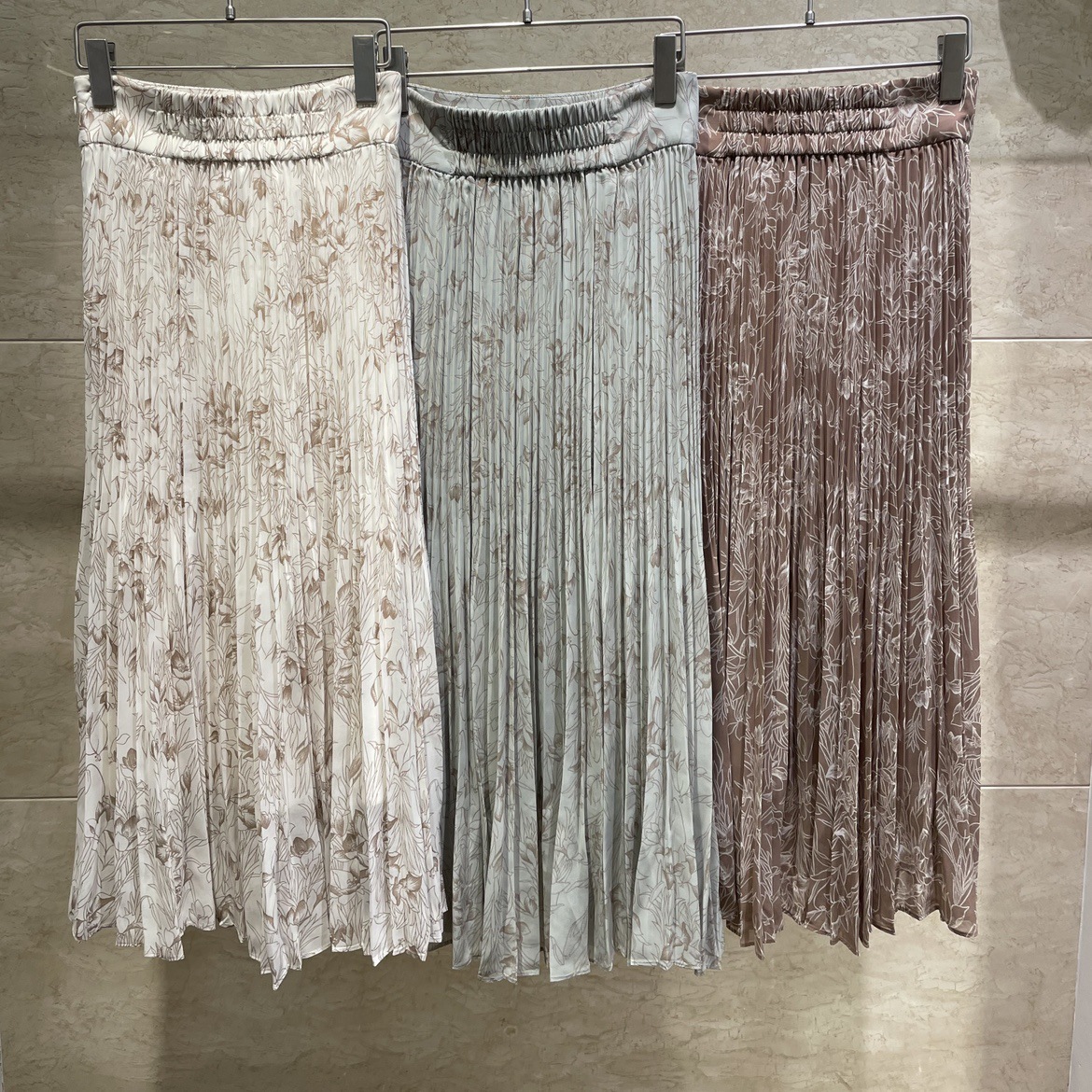 線画タッチに描かれた繊細なフラワー柄が印象的。春ムード溢れるルックスでスタイリングを華やかに彩るスカートが届きました。全体に細やかなプリーツを畳んだエレガントなフレアシルエットで女性らしさは一気に加速。プリーツの幅を絶妙なバランスで切り替え表情豊かに仕上げています。程よい太さのあるベルトでウエストを引き締めスタイルアップ効果は◎。トップスをINした今年らしいスタイリングがオススメです。