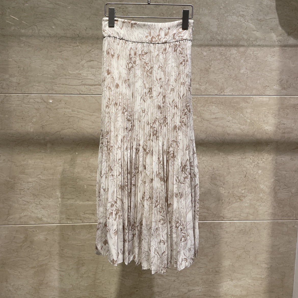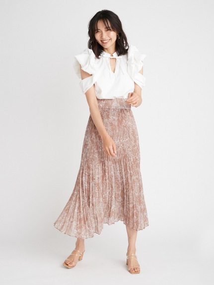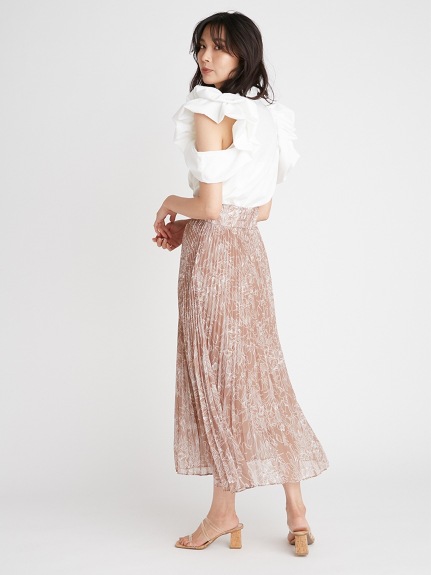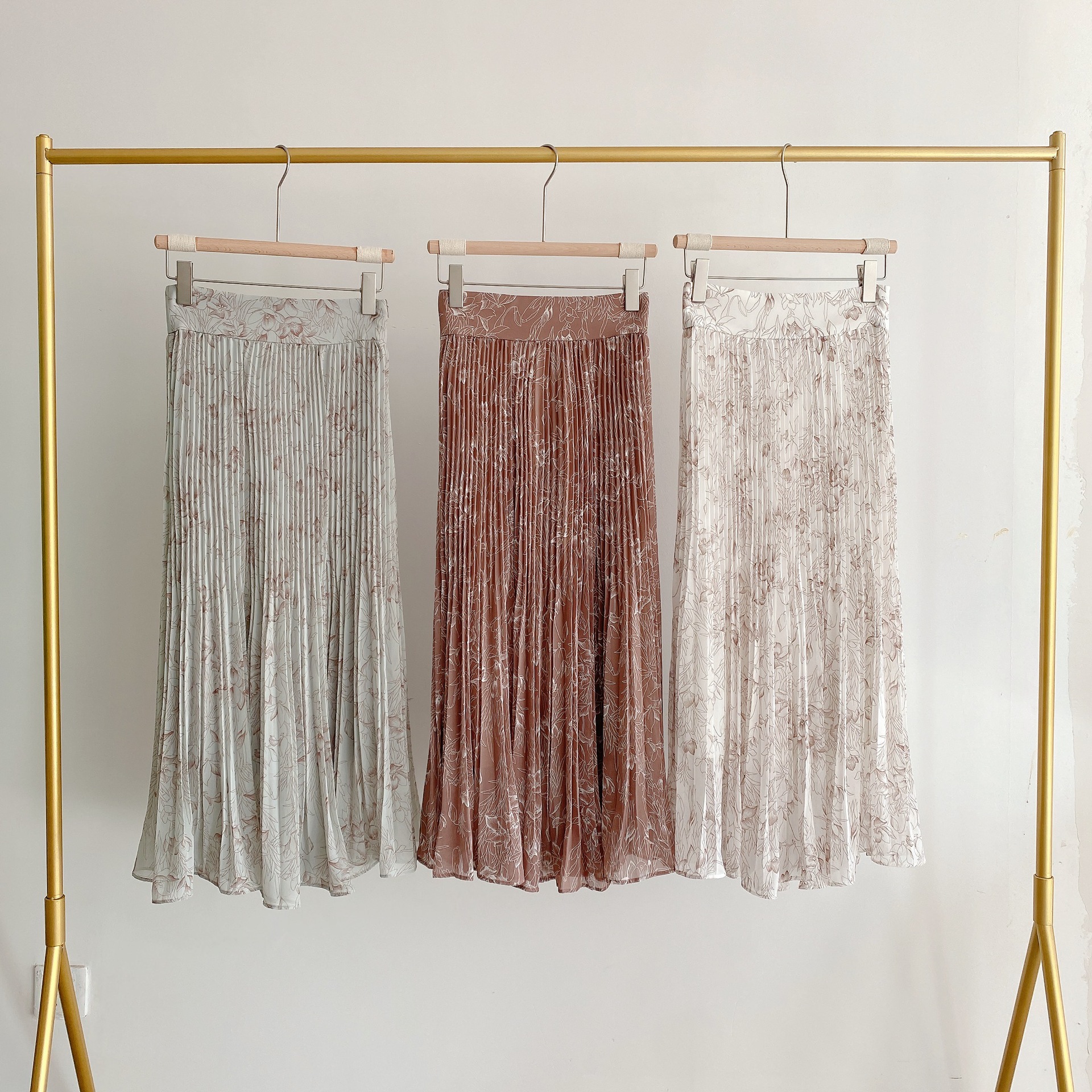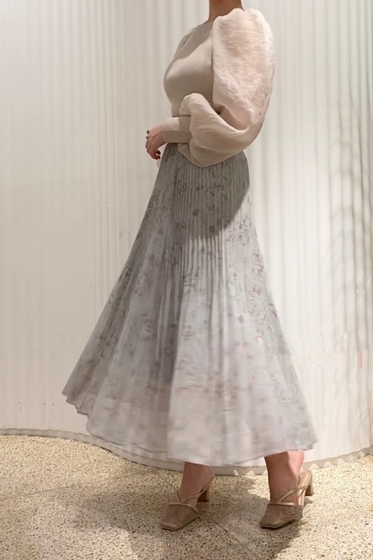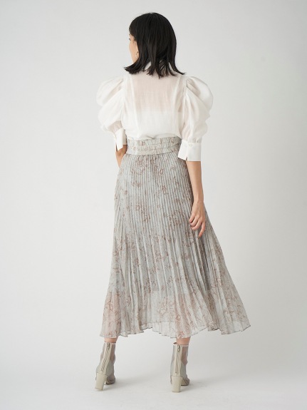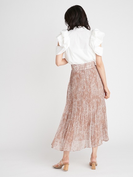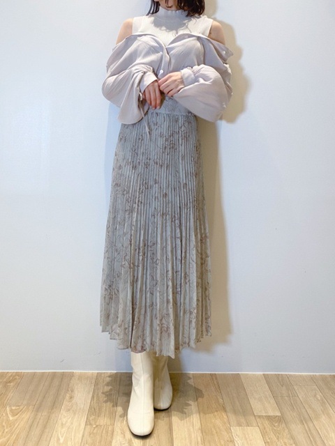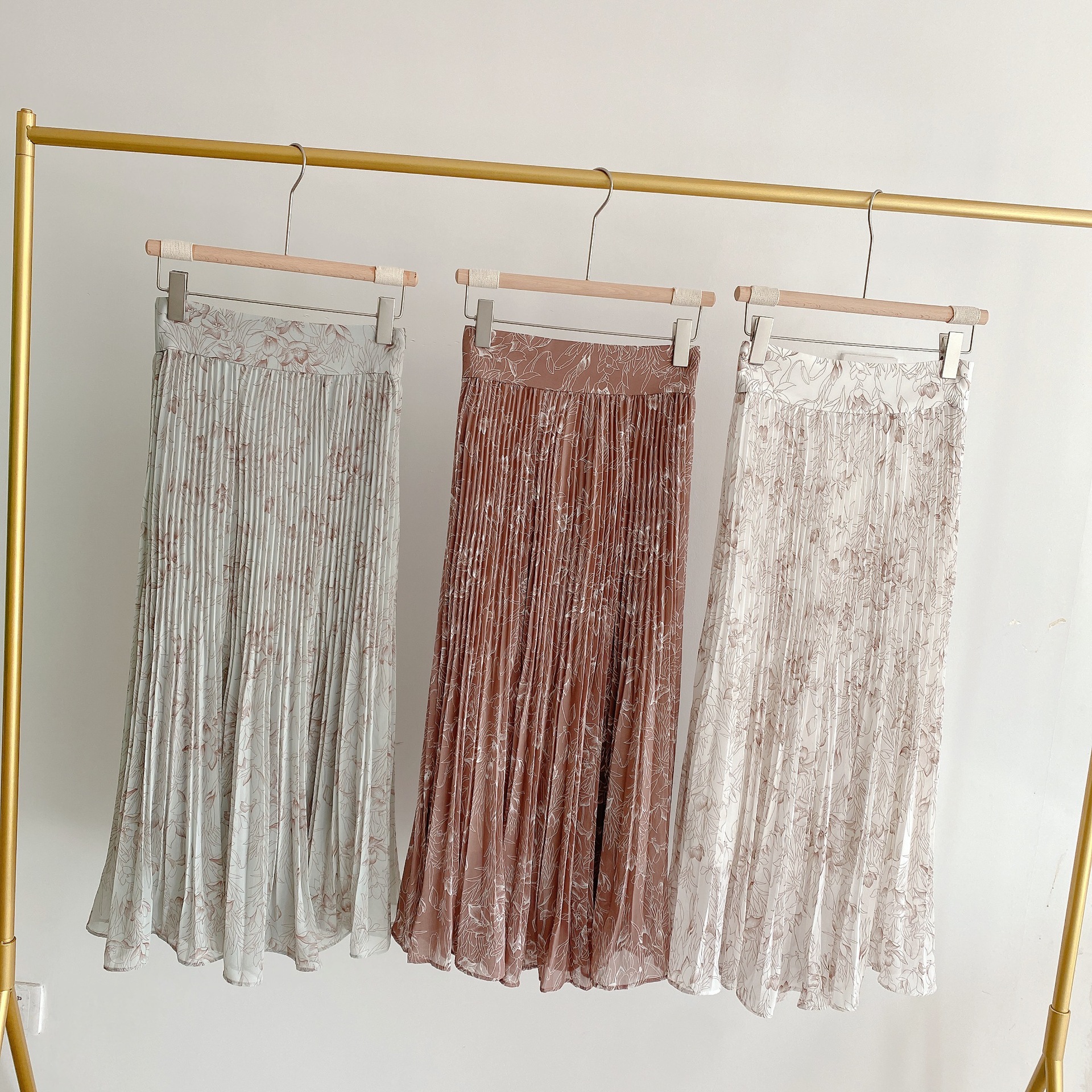 線画タッチに描かれた繊細なフラワー柄が印象的。春ムード溢れるルックスでスタイリングを華やかに彩るスカートが届きました。全体に細やかなプリーツを畳んだエレガントなフレアシルエットで女性らしさは一気に加速。プリーツの幅を絶妙なバランスで切り替え表情豊かに仕上げています。程よい太さのあるベルトでウエストを引き締めスタイルアップ効果は◎。トップスをINした今年らしいスタイリングがオススメです。