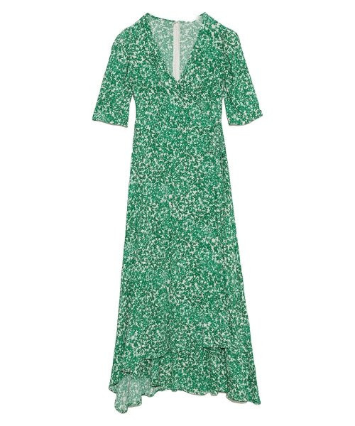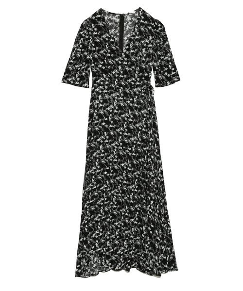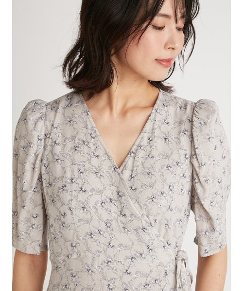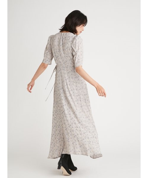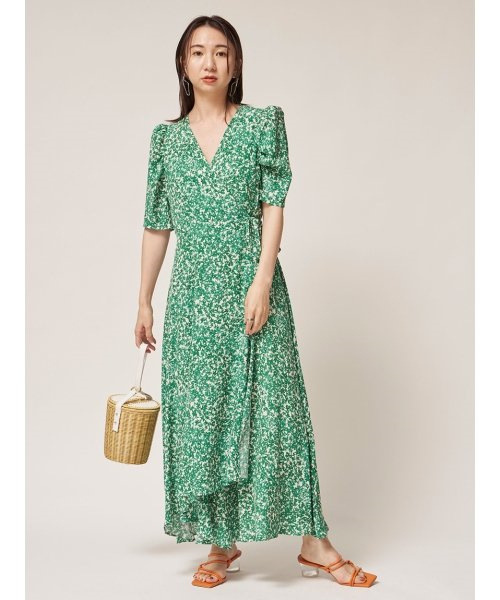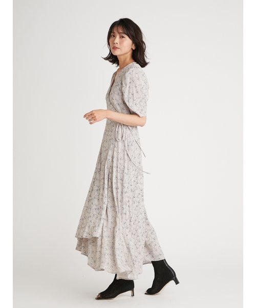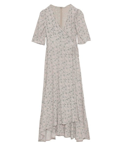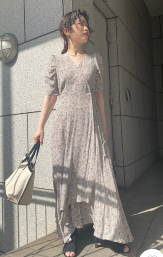 カシュクールデザインとハイウエスト気味なシルエットの組み合わせが大人の女性に似合うほどよい甘さ加減が特徴。