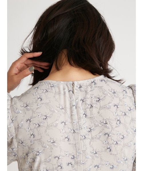 首元のすっきりとしたV開きでシャープさを演出し、肩まわりを華奢に見せるように肩幅を狭めに設定、立体感もでるように表はギャザーと内側には同素材のミニフリルを仕込んでいます。