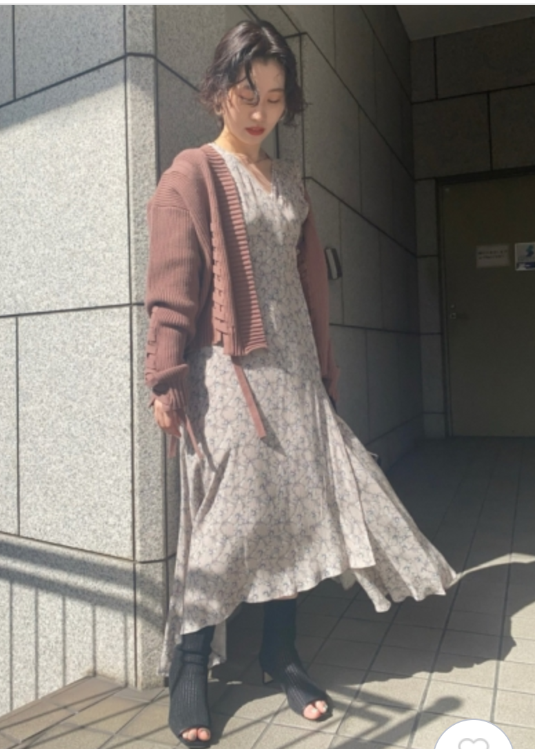 前上がりのヘムラインが歩くたびに揺れる、動きのあるデザインになっています。※バックファスナー開き仕様、インナーキャミワンピース付きです。