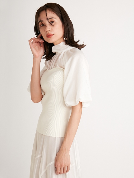 程よい透け感のあるしなやかなファブリックとソフトなリブニットを組み合わせました。女性らしい柔らかな雰囲気のオフホワイト、落ち着いた印象を与えるグレーベージュ、今季のキーカラーで春らしいピンクの3色でお届けします。