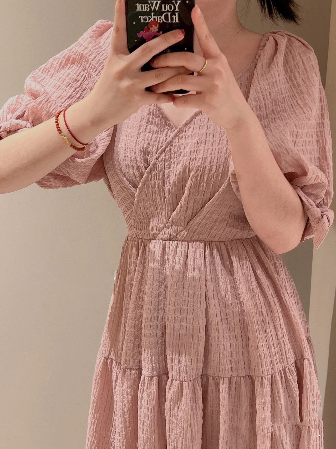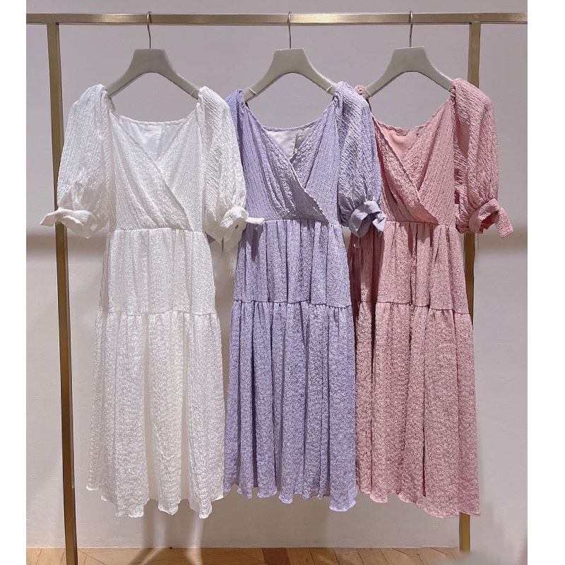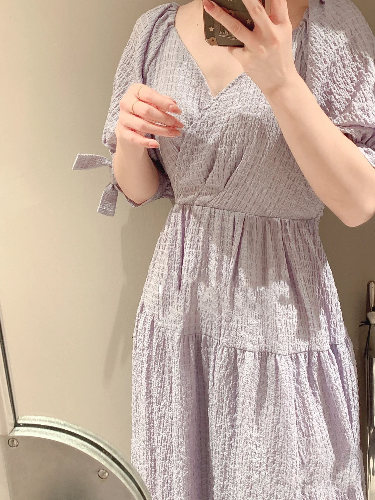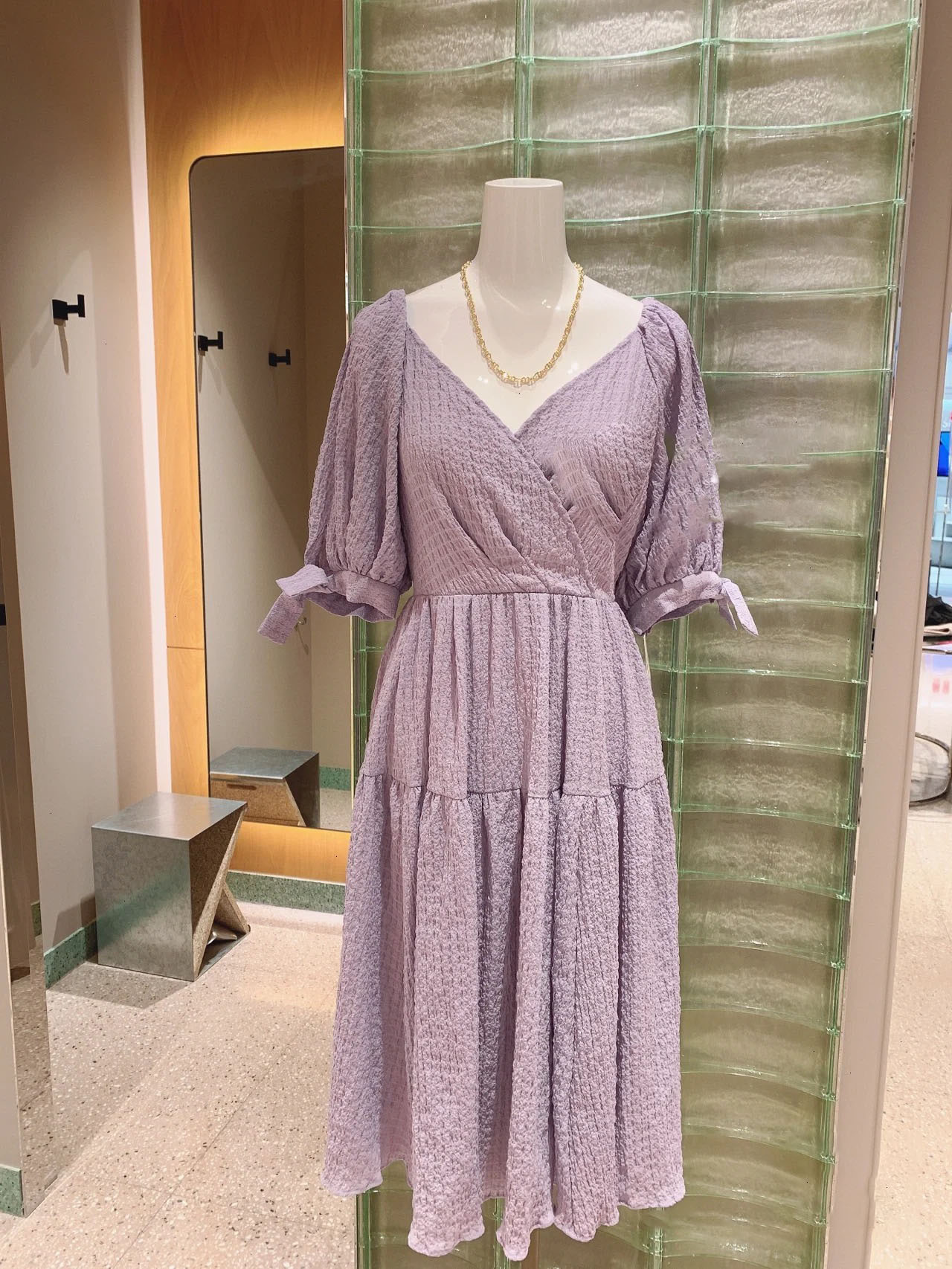 布帛のような綺麗見えするポンチ素材を使用したワンピース。