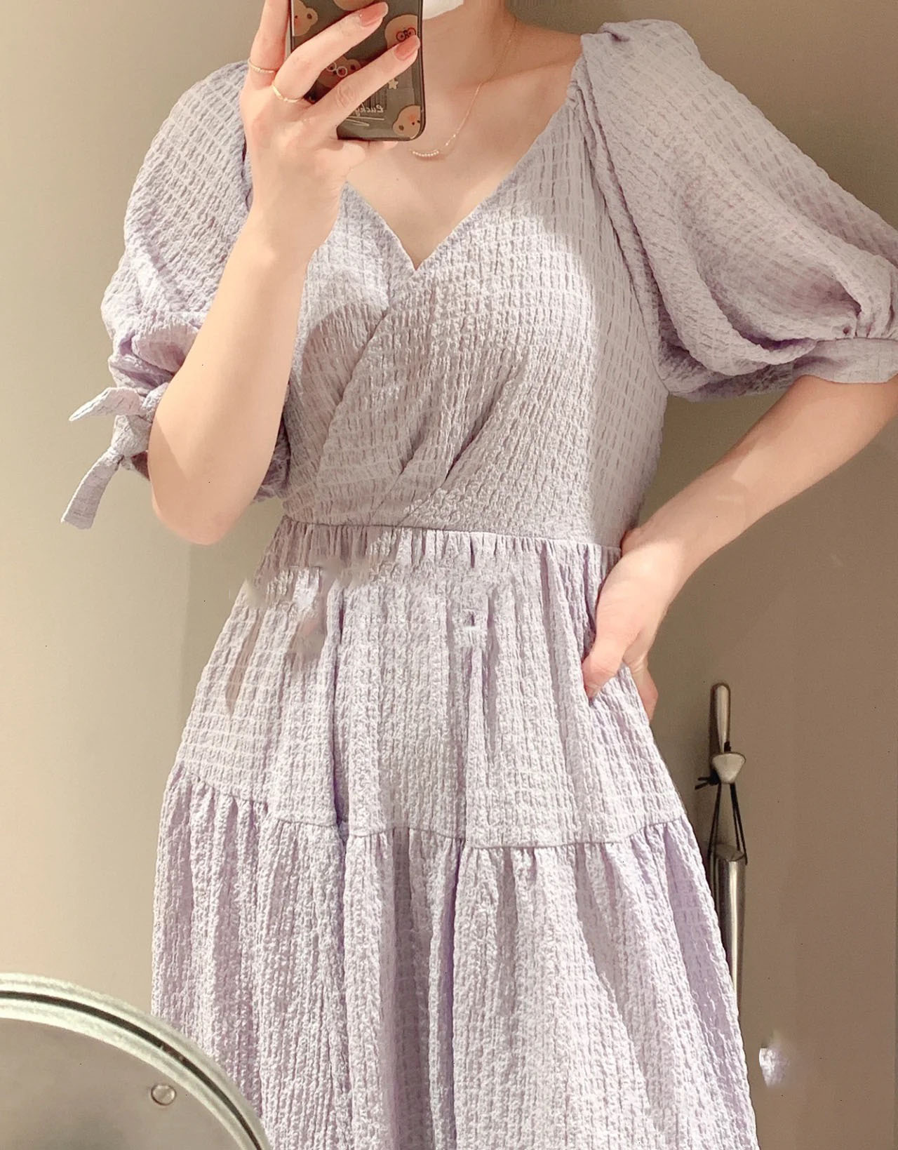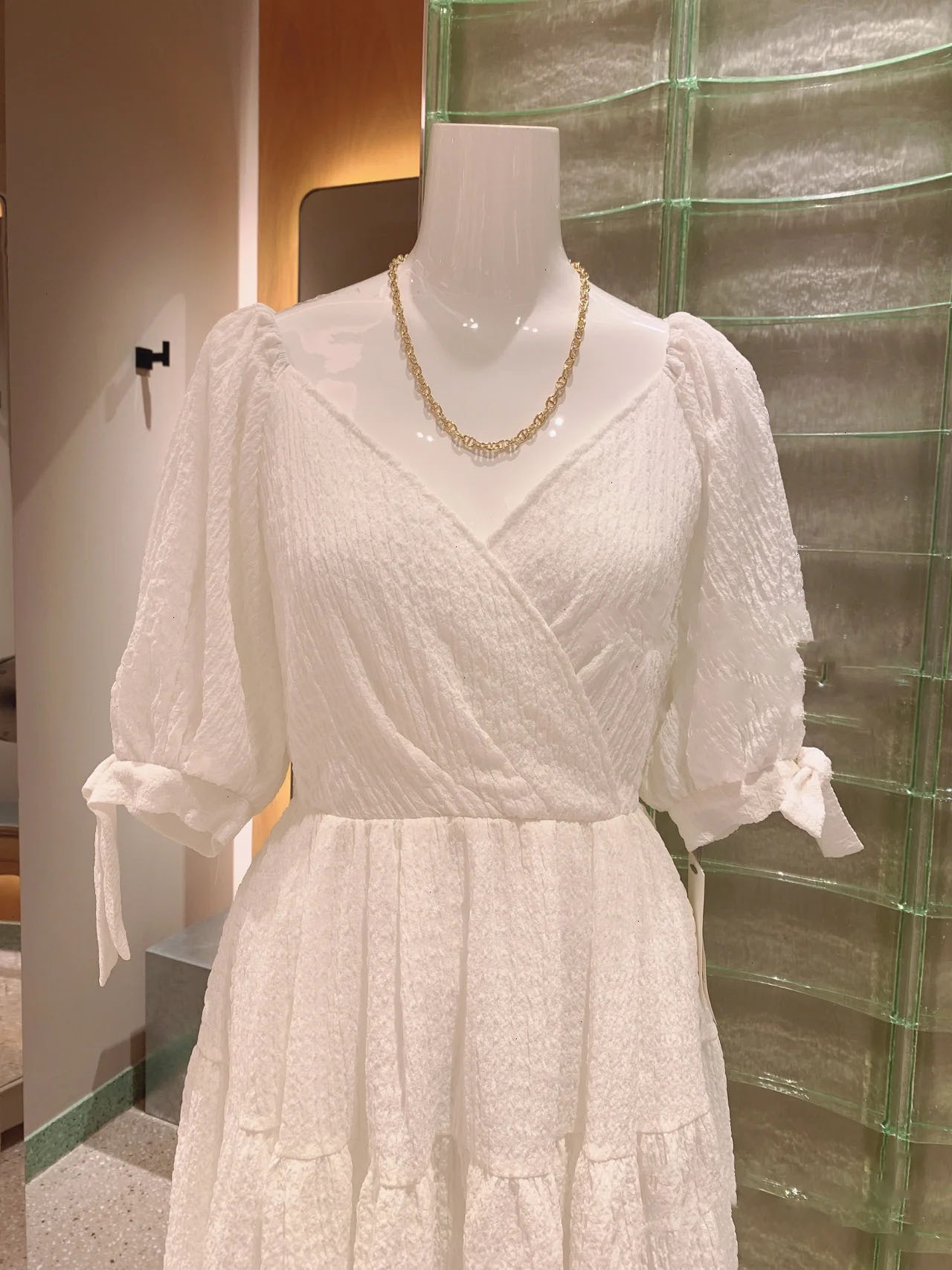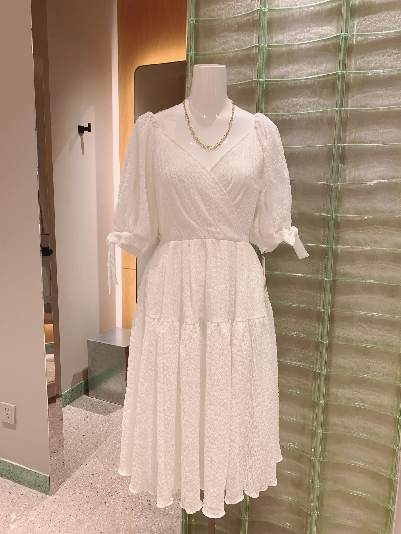 布帛のような綺麗見えするポンチ素材を使用したワンピース。