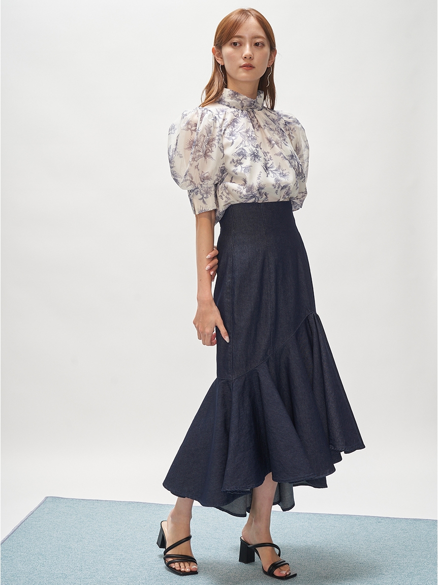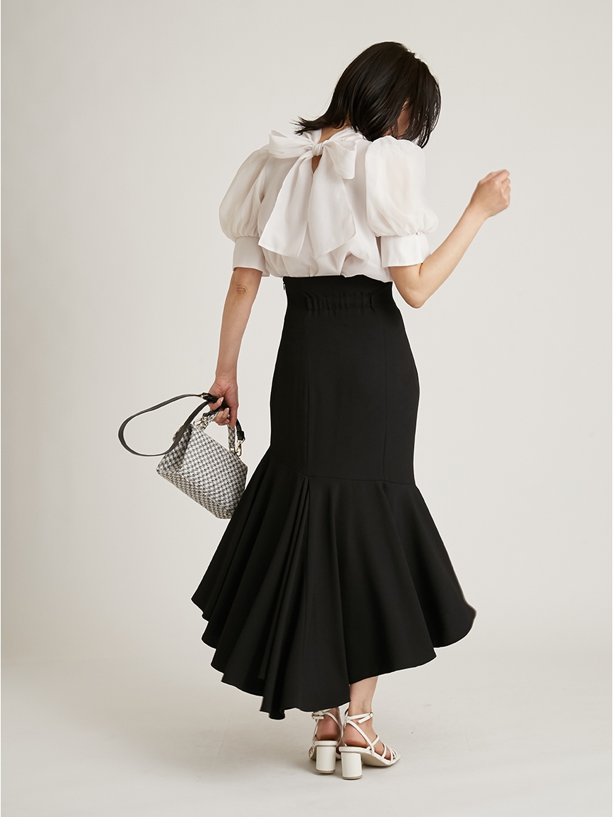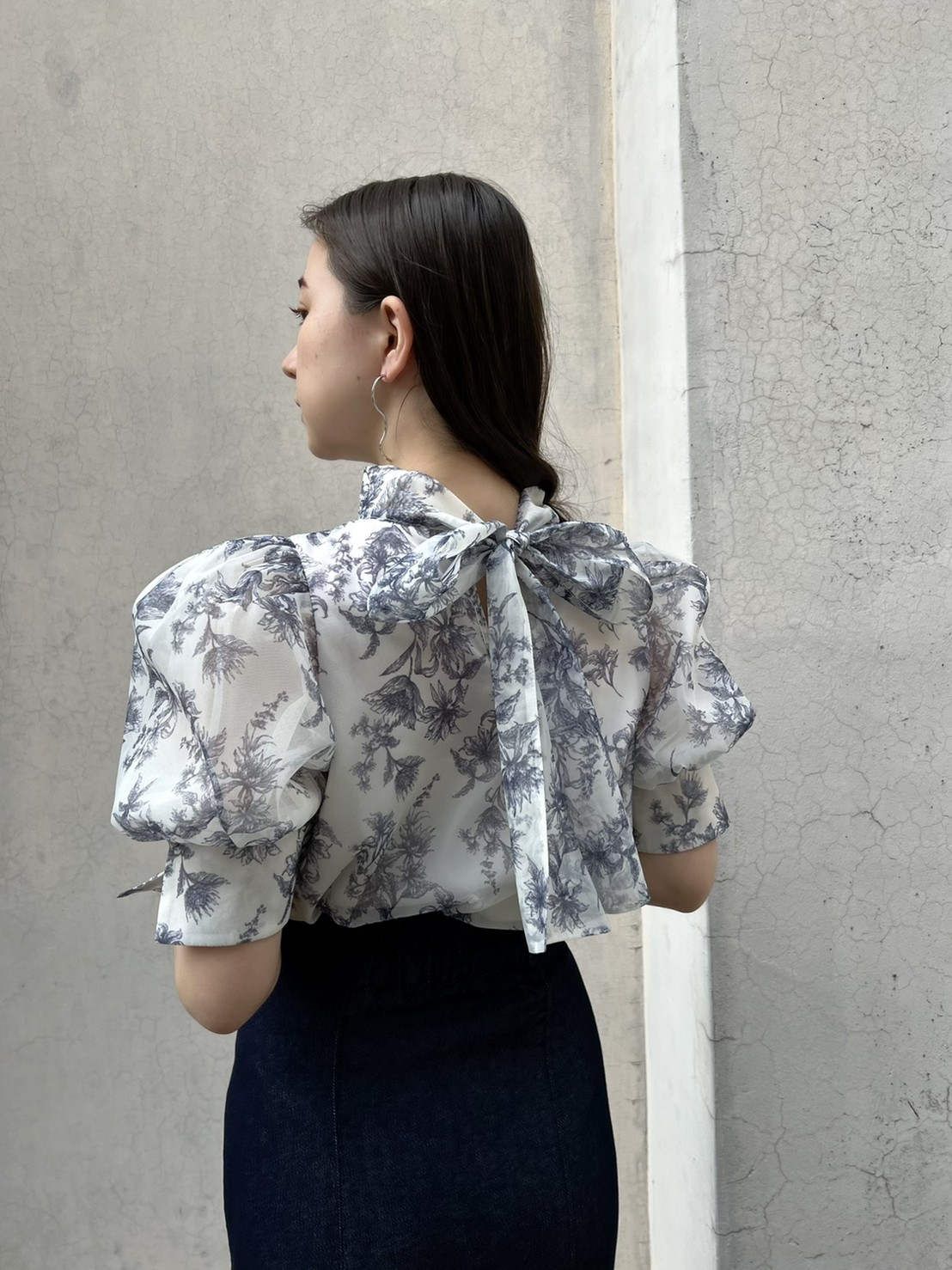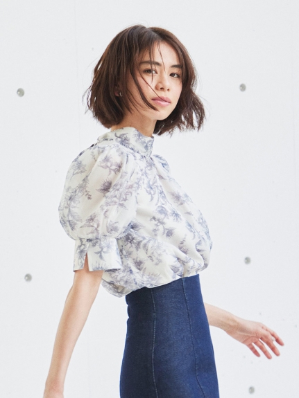 「SNIDEL」定番のオーガンジーシースルーブラウスが今季も登場。前後どちらでも結べる大きなリボンと、Aラインに広がるフレアシルエットで柔らかな印象に仕上げました。一際目を惹くボリュームスリーブは、内側にチュールを施すことで、シアー感と立体感のどちらも実現。パンツに合わせてアウトでも今年らしいハイウエストボトムにインしてもバランス良く決まり、幅広いコーディネートに活躍してくれます。