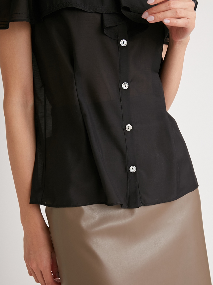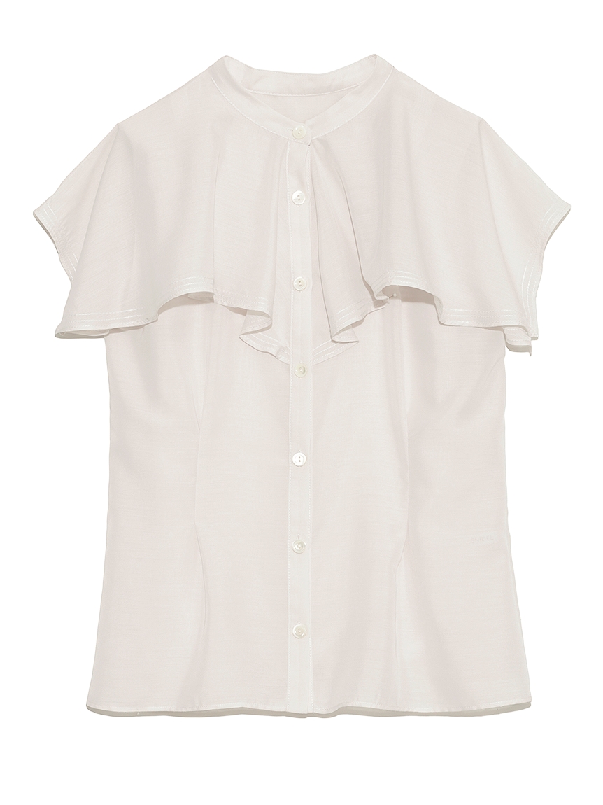 ひらりとエレガントに揺れるスクエアカラーが印象的なブラウス。生地の軽やかさも相まって、プラスワンで春ムードが一気に高まる1枚です。フロントにダーツを入れたコンパクトなシルエットが女性らしさを感じさせる秘訣。ボトムにインしてもアウトでもバランス良く決まり、様々なアイテムと好相性です。