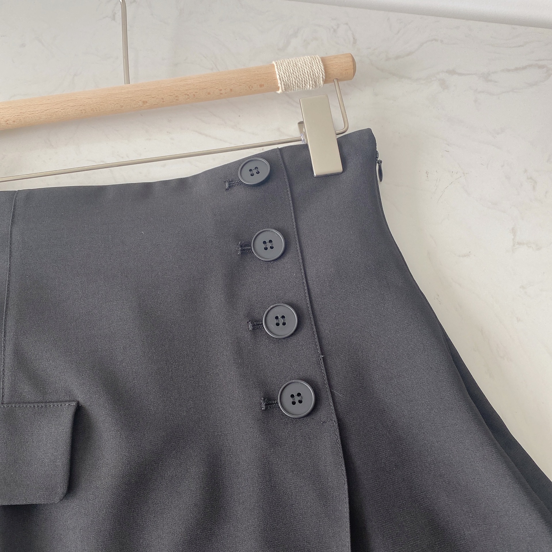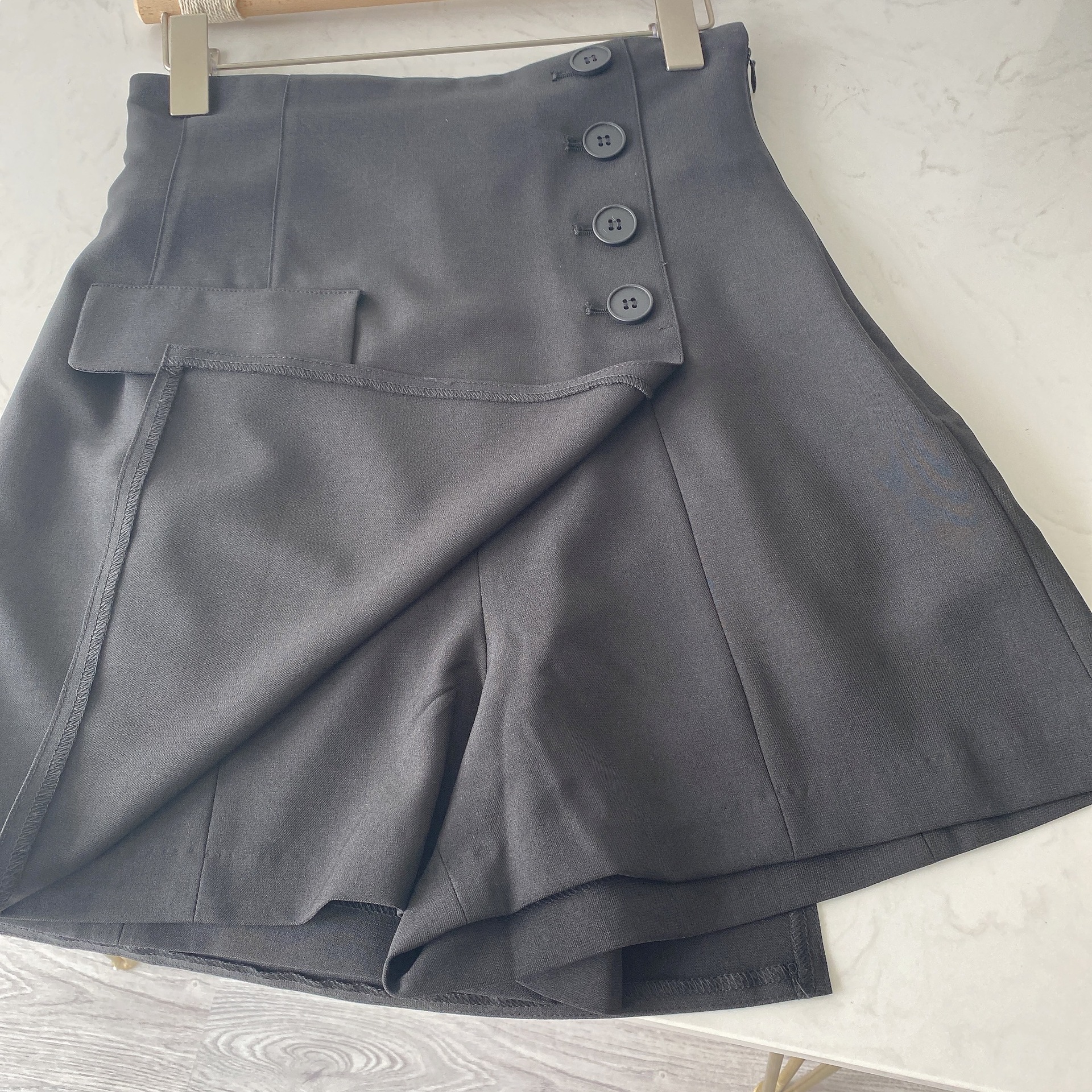 一見ラップスカートのようなレディムード溢れるデザインが特徴的。安心感のある穿き心地とデザイン性を兼ね備えた、万能なキュロットショートパンツが届きました。「SNIDEL」らしいハイウエストのコンパクトなシルエットでスタイルアップ効果は絶大。サイドにあしらわれたボタンやフェイクのフラップポケットなど、こなれ感をプラスするこだわりのディテールにも注目です。