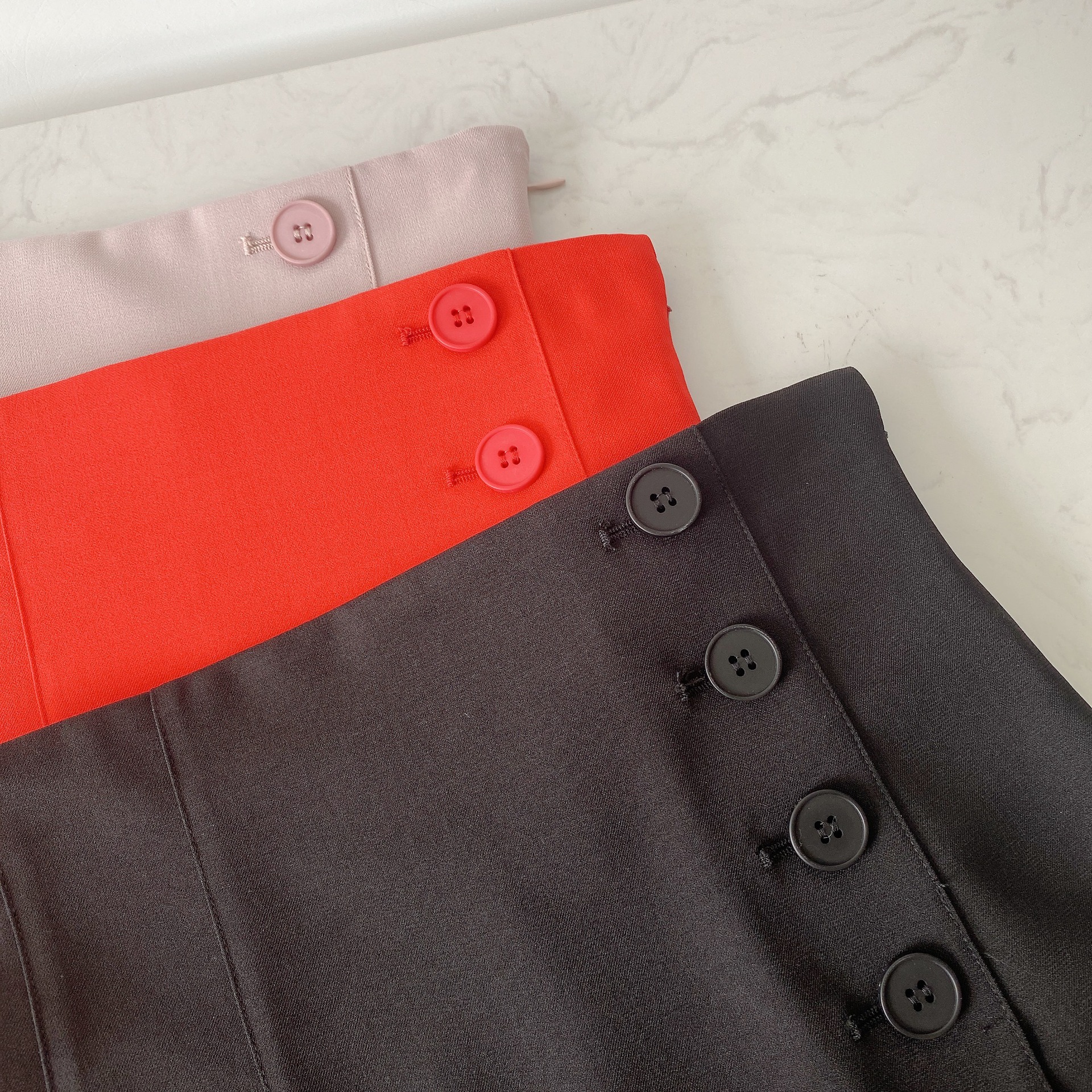 定番のブラック、優しい雰囲気を与えるピンクベージュ、発色の良いレッドは、ほんのり光沢のあるサステナブルな素材を使用しました。夏コーデにぴったりなインディゴも含め、4色展開でお届けします。
