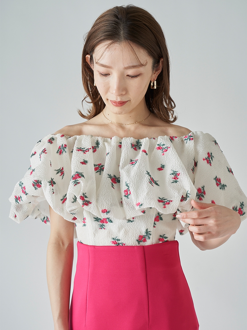 ジャカードオフショルブラウス