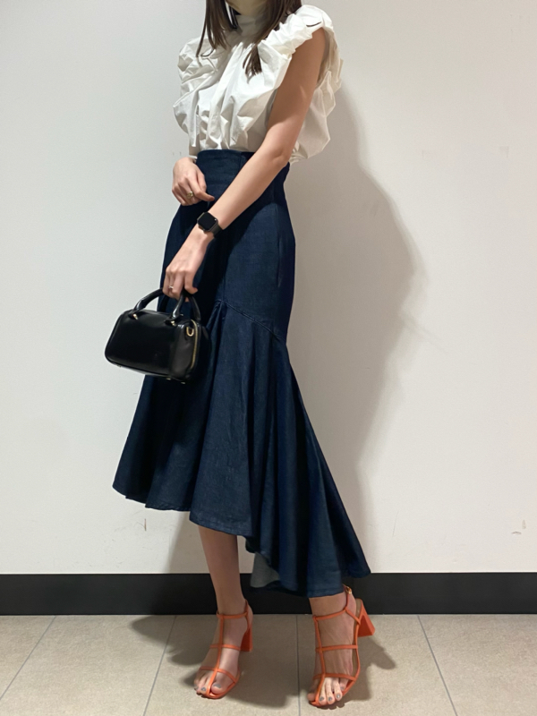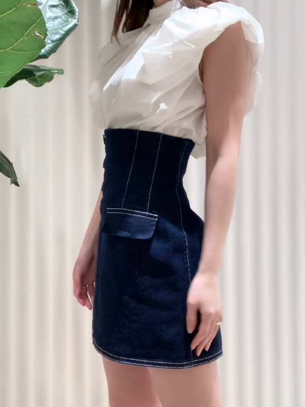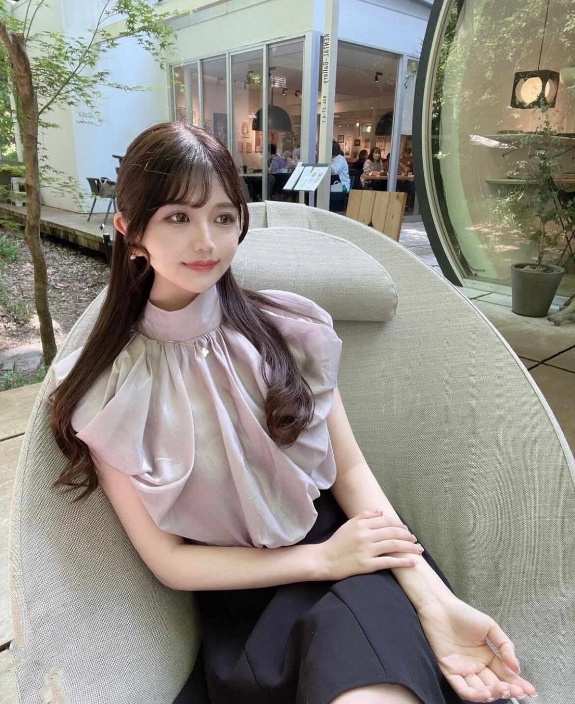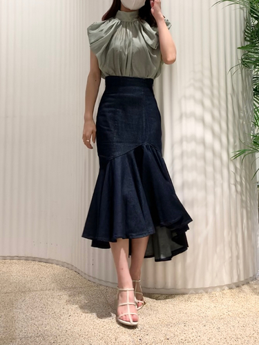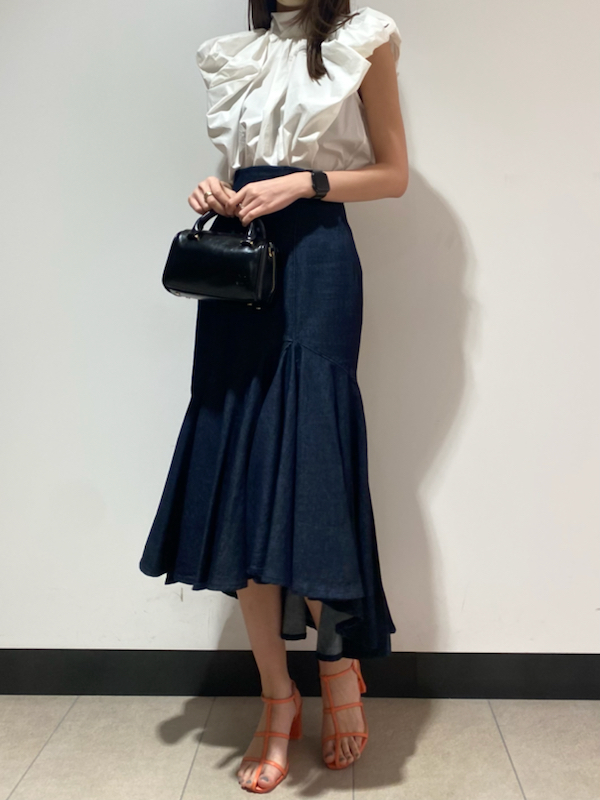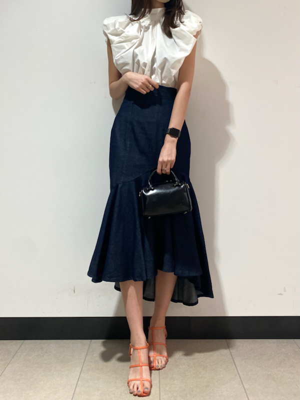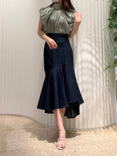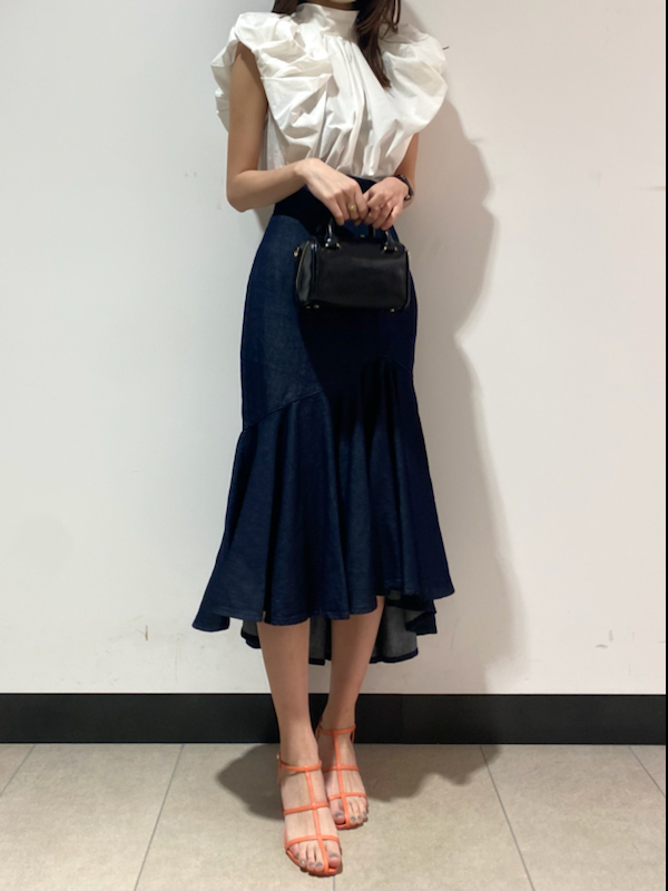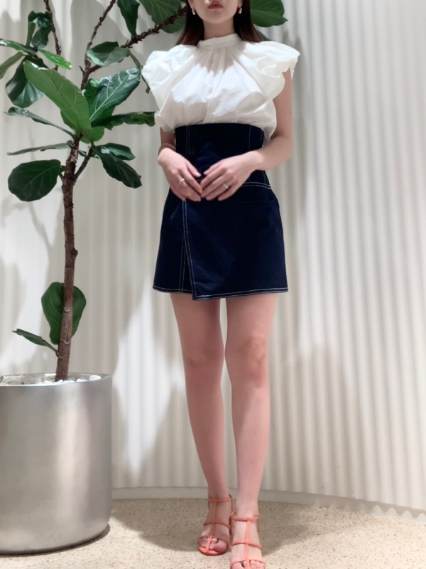 バルーンで表現した立体的なフリルスリーブが特徴。ふんわりとしたボリュームフォルムで今年らしいフェミニンスタイルに似合うブラウス。バックネックでキュッと結んだリボンが後ろ姿まで愛らしく演出。ハイウエストボトムにINしてスマートにまとめるのがトレンドライクに決まる秘訣です。