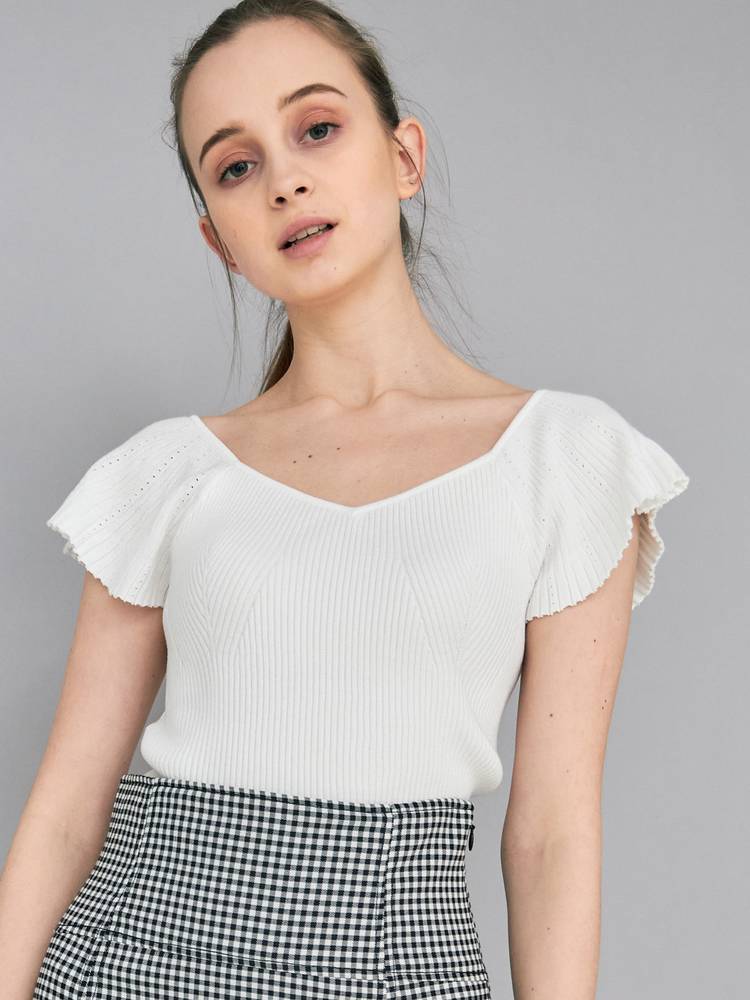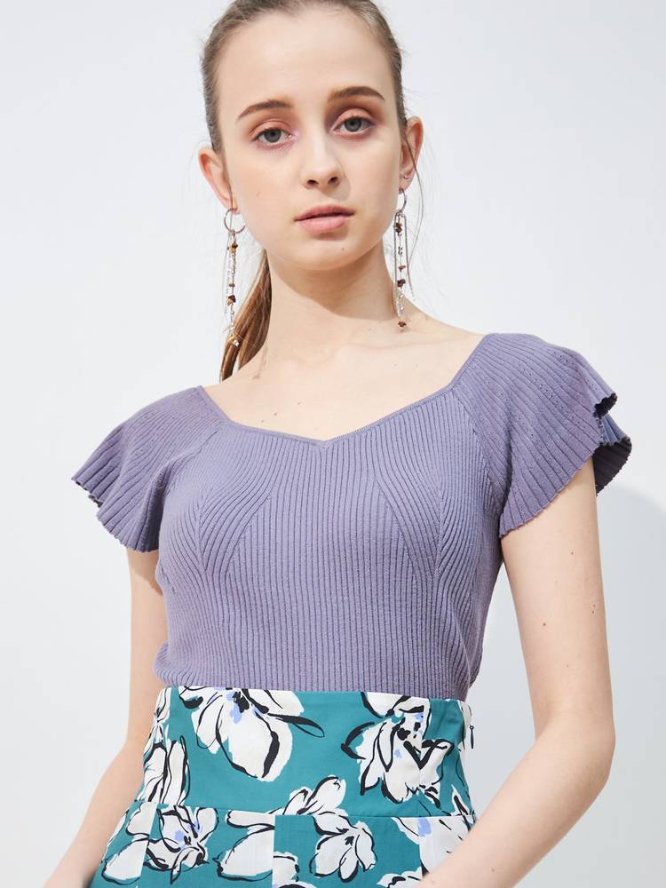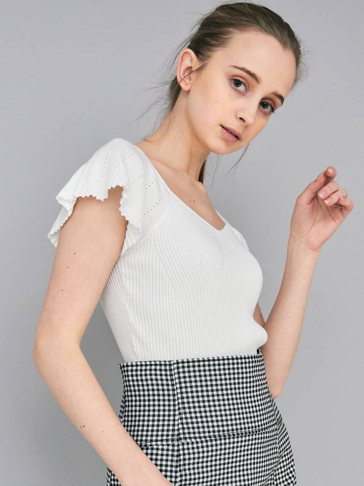 前後で着用できるコンパクトニットは、一枚持っておきたい着回し抜群の必須アイテム。