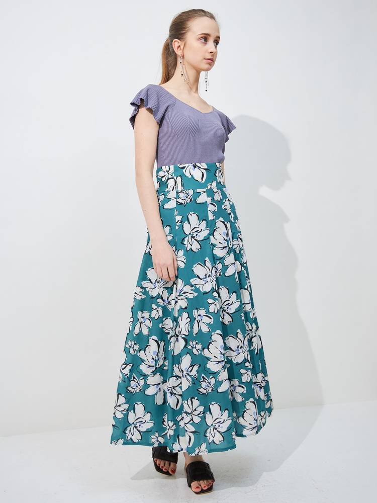 レーススカートやプリントのスカートなどフェミニンなアイテムにはもちろん、デニムやパンツスタイルと甘辛ミックススタイルも楽しめます。
