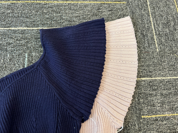袖に編み柄を入れて程よいフレアスリーブにすることで、気になる二の腕のラインもカバーします。