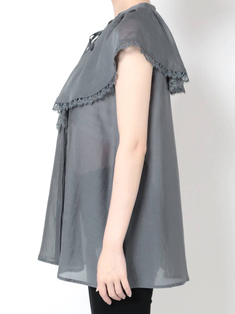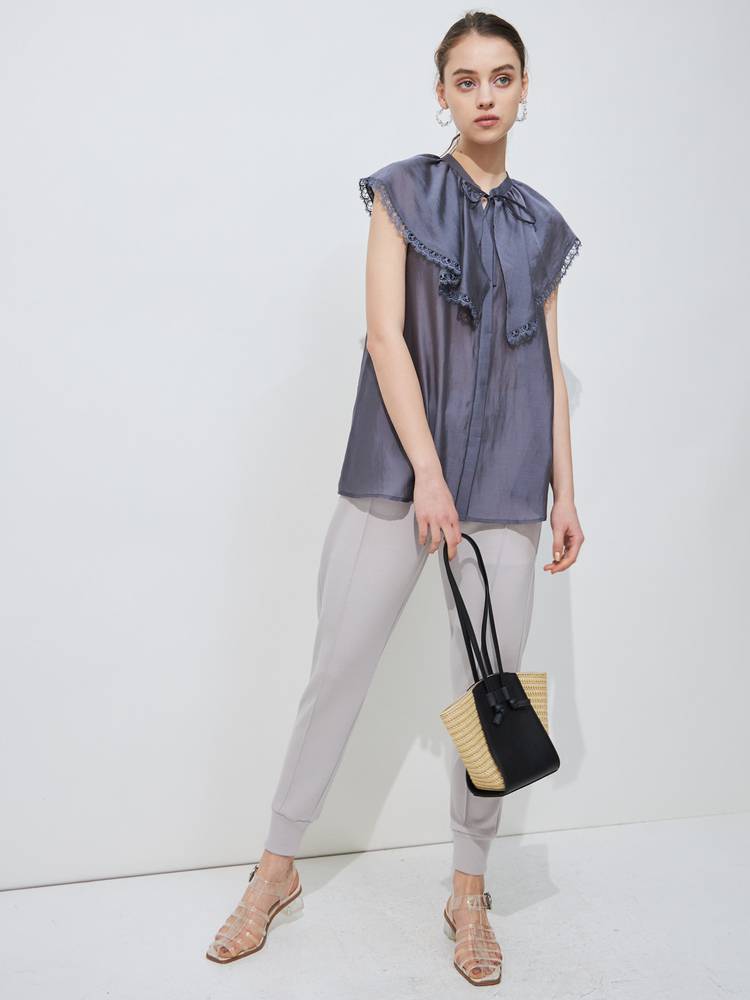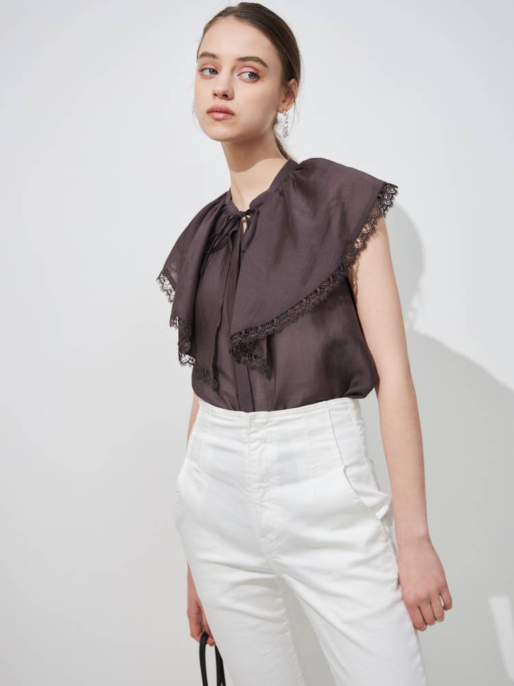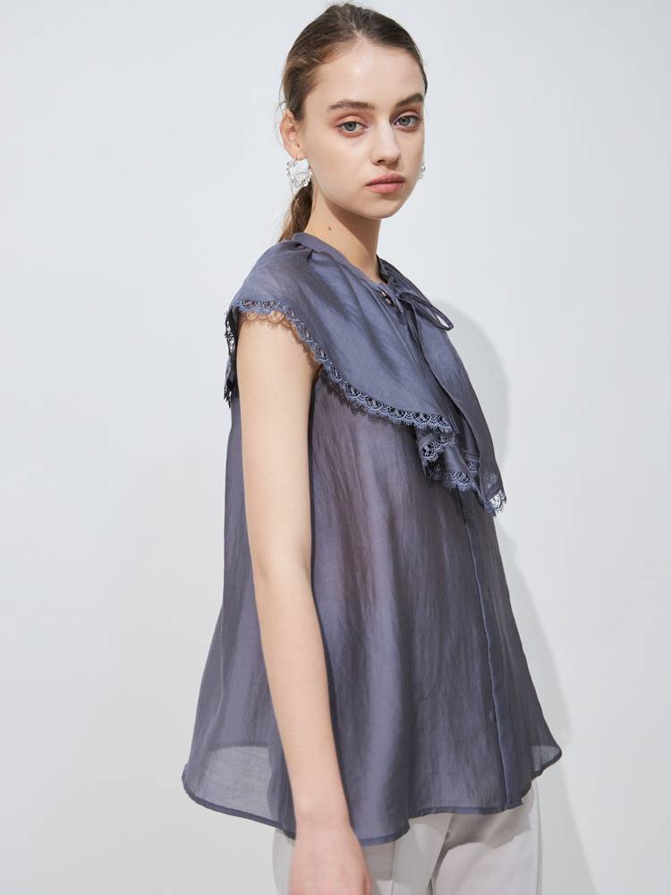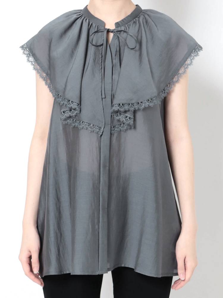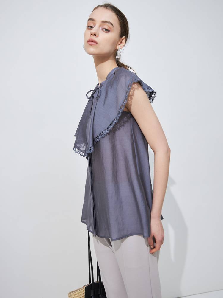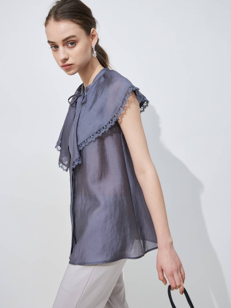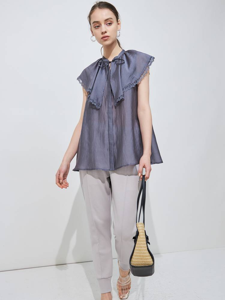 上品な光沢感と程よいシアー感のある生地を使用したブラウス。