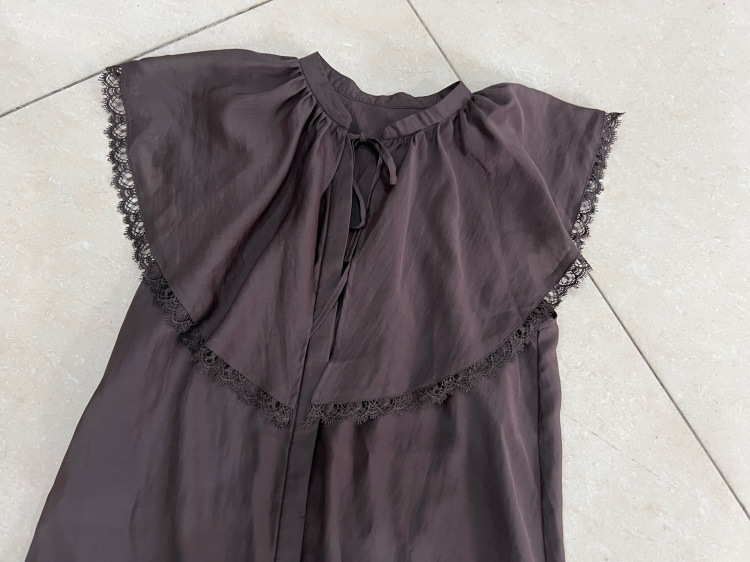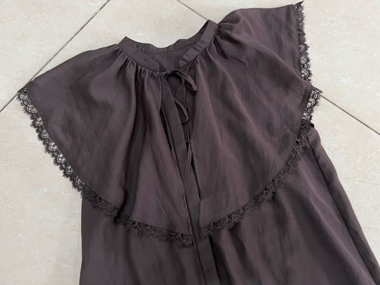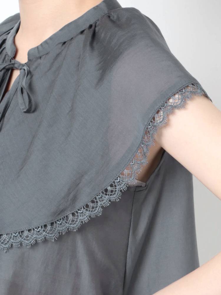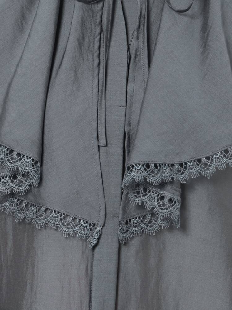 襟端には繊細なケミカルレースをあしらって付加価値をプラスしています。