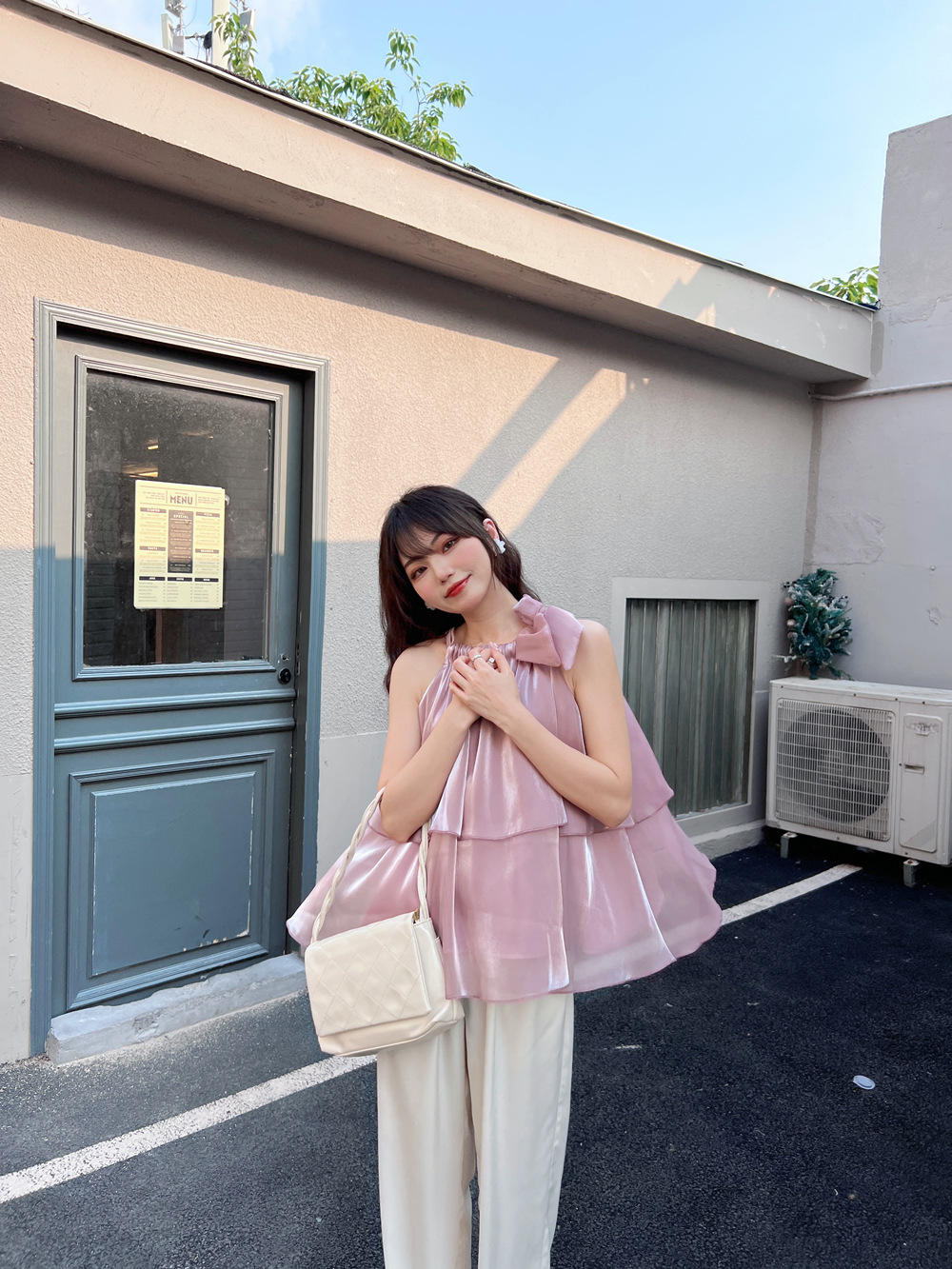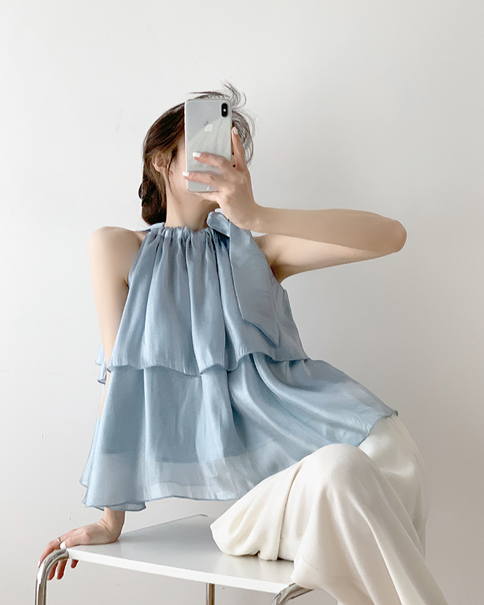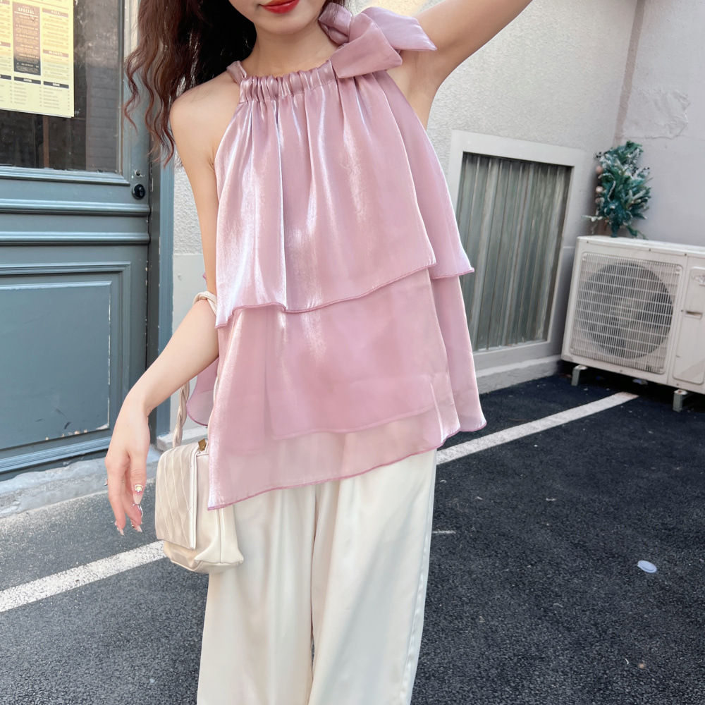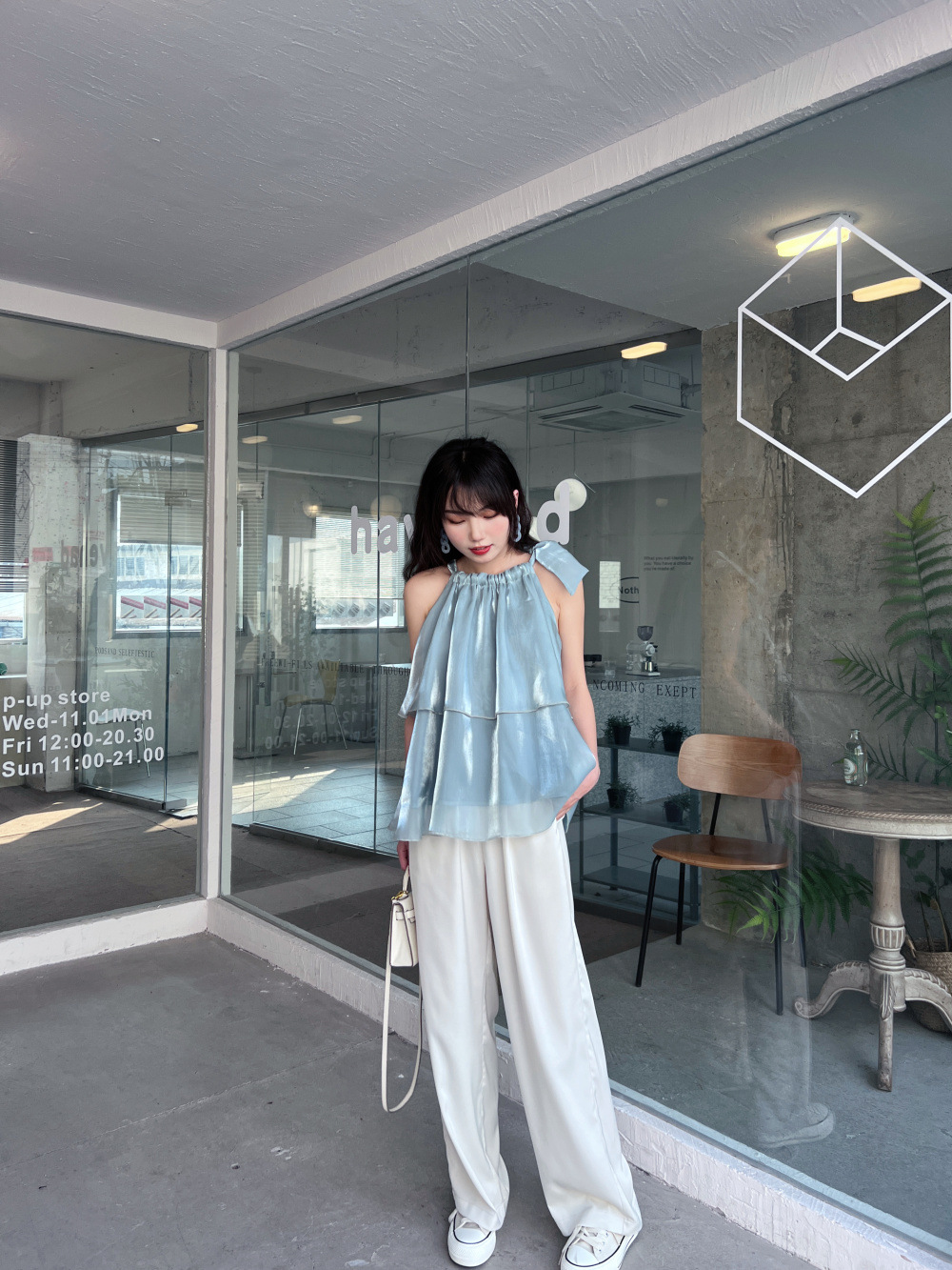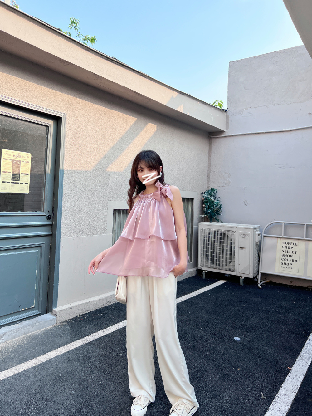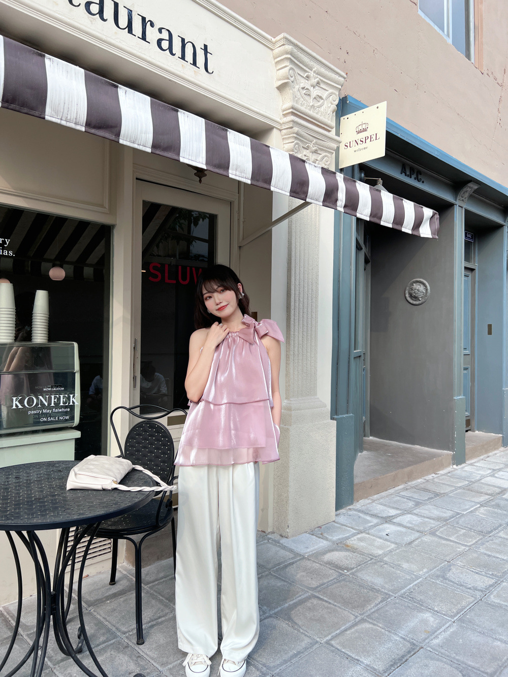 軽量でパール調のシルク生地が全体の印象を引き締める ケーキスカート風のトップスがガーリーな雰囲気を醸し出し、ゆったりとした着心地は涼しげで、夏のお出かけにぴったりです。 サイズ 着丈 バスト S 54cm 130cm M 55cm 132cm L 56cm 134cm