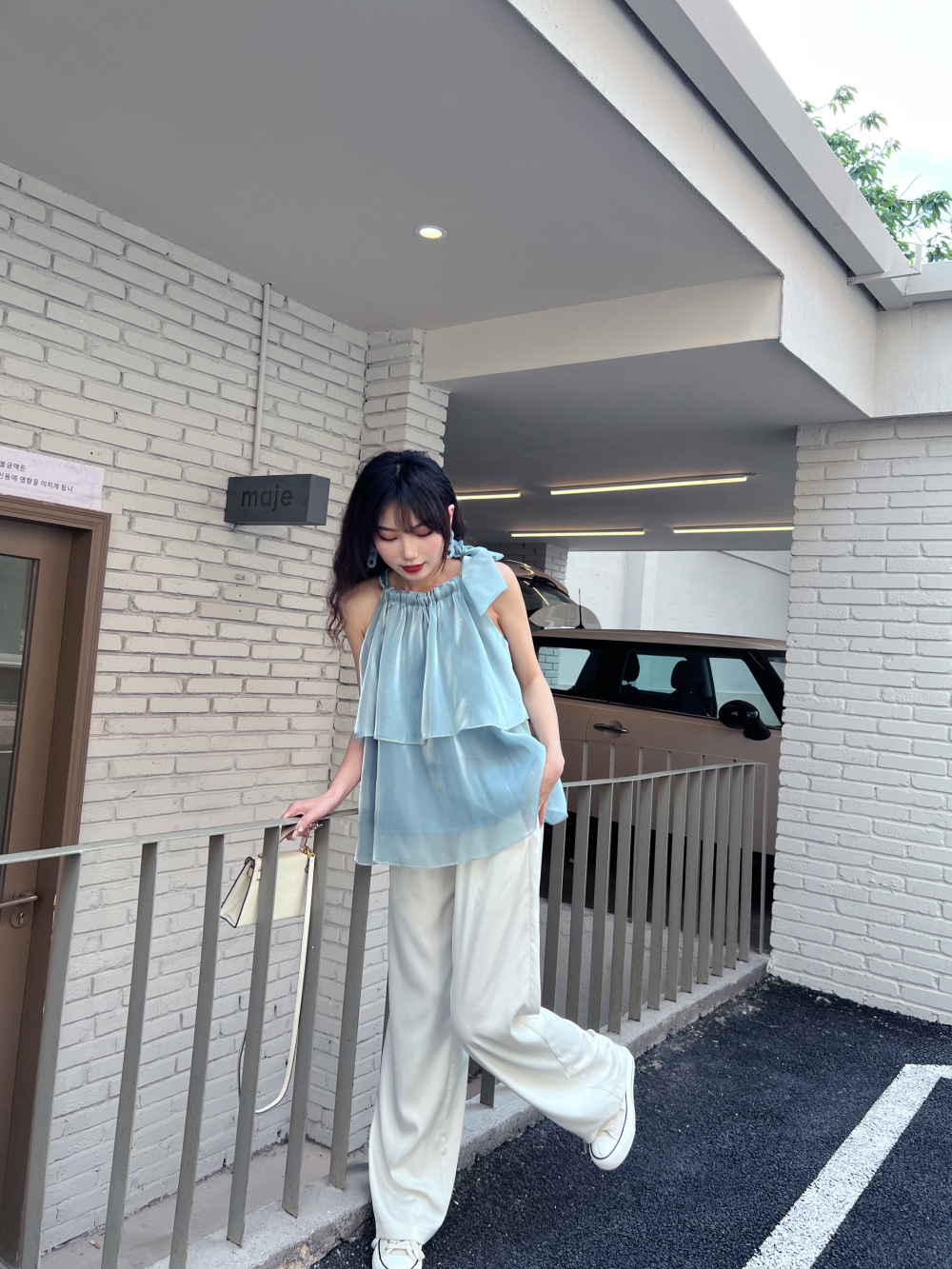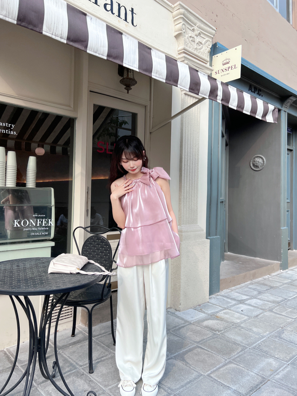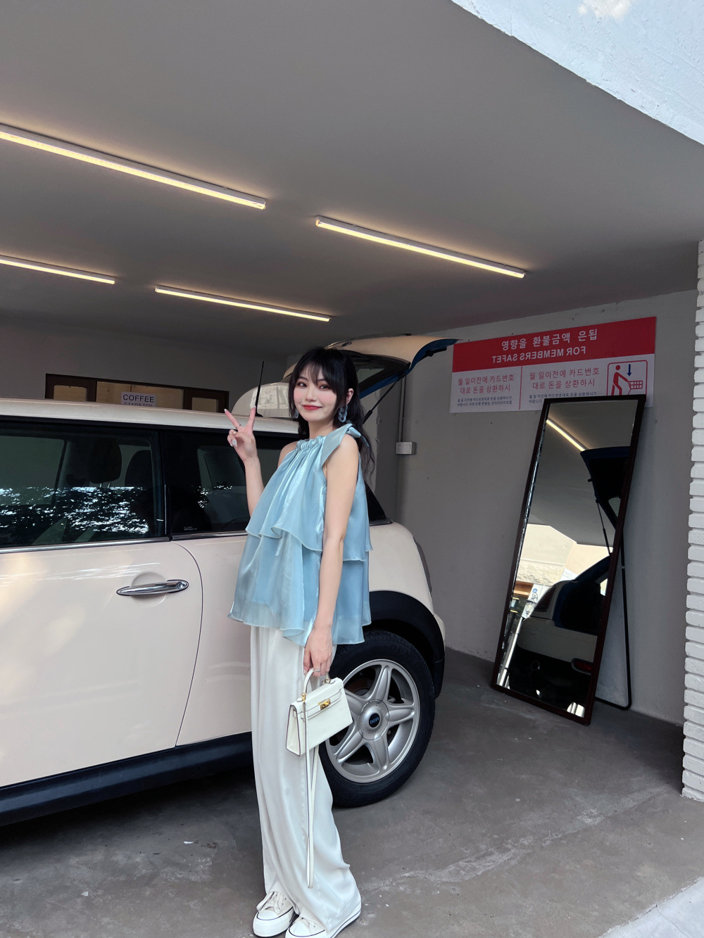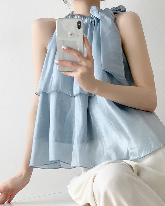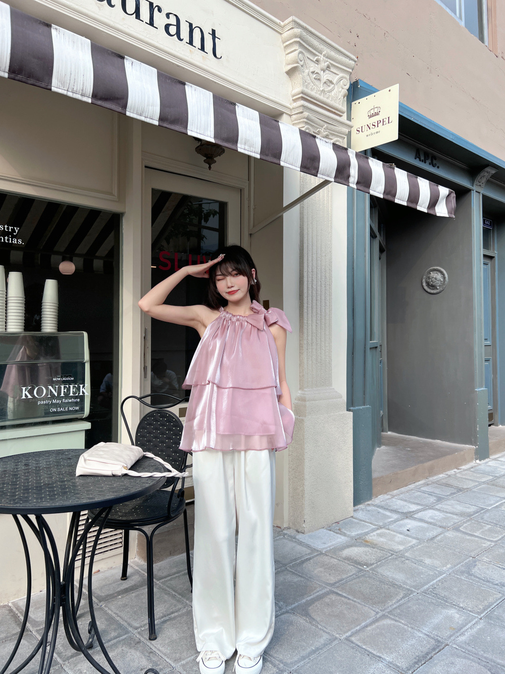 軽量でパール調のシルク生地が全体の印象を引き締める ケーキスカート風のトップスがガーリーな雰囲気を醸し出し、ゆったりとした着心地は涼しげで、夏のお出かけにぴったりです。 サイズ 着丈 バスト S 54cm 130cm M 55cm 132cm L 56cm 134cm