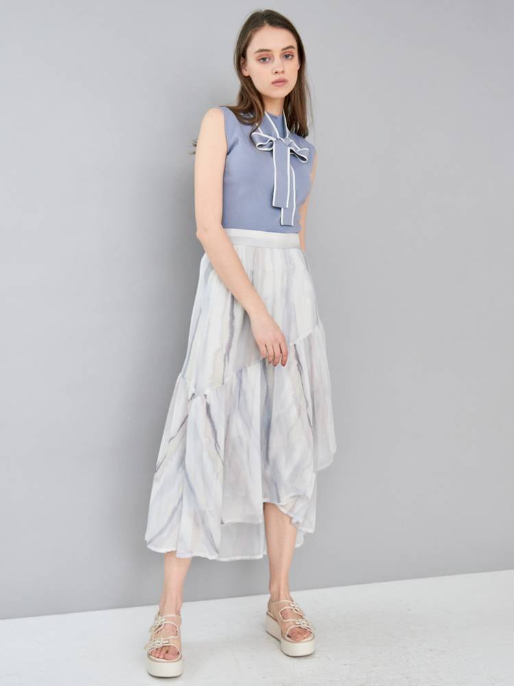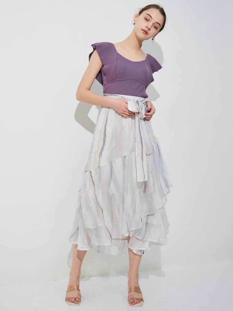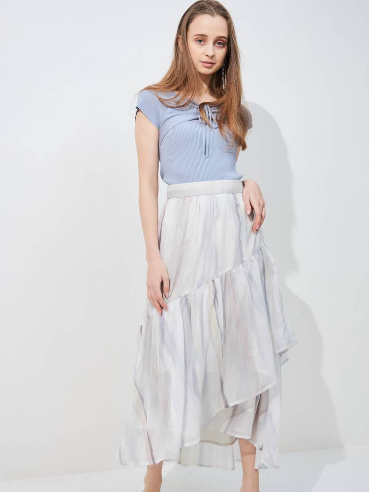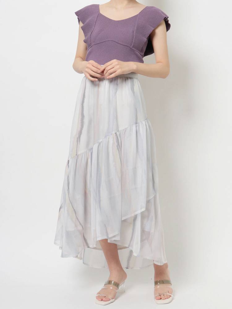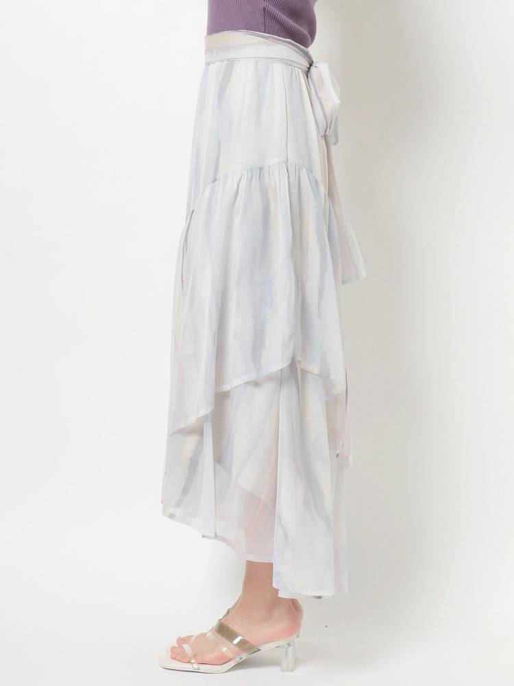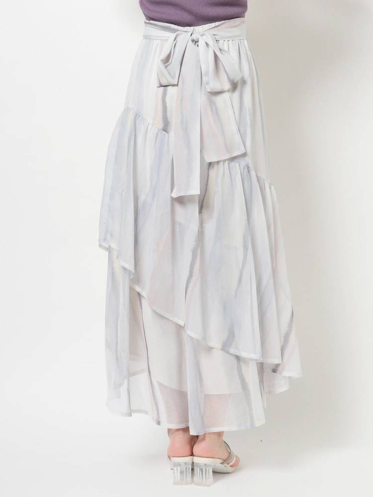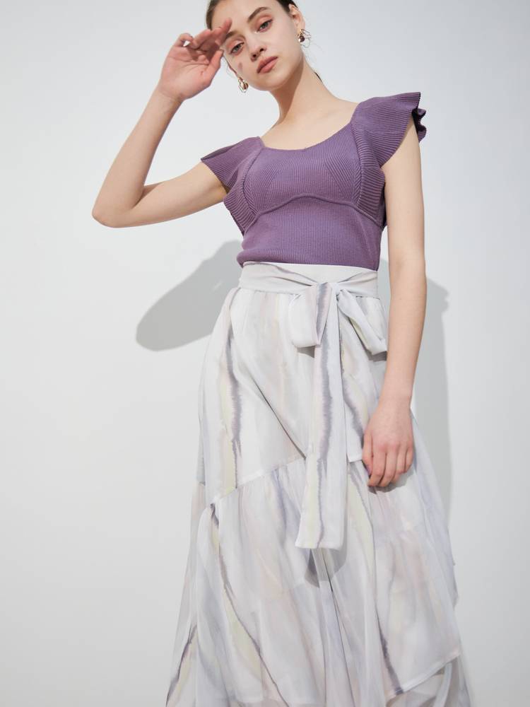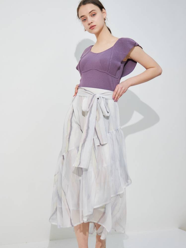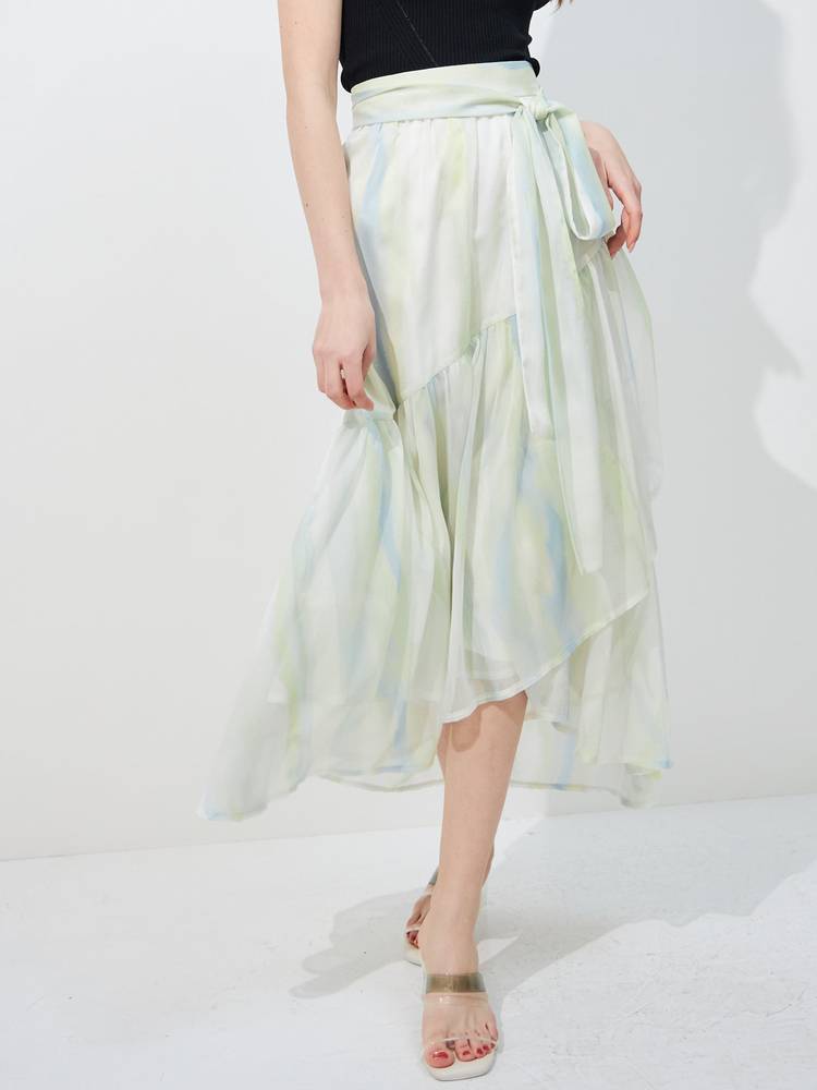 ストライプ見えの繊細で軽やかな楊柳シフォンに、オリジナルのグラデーションペイントを施した特別感のあるスカート。