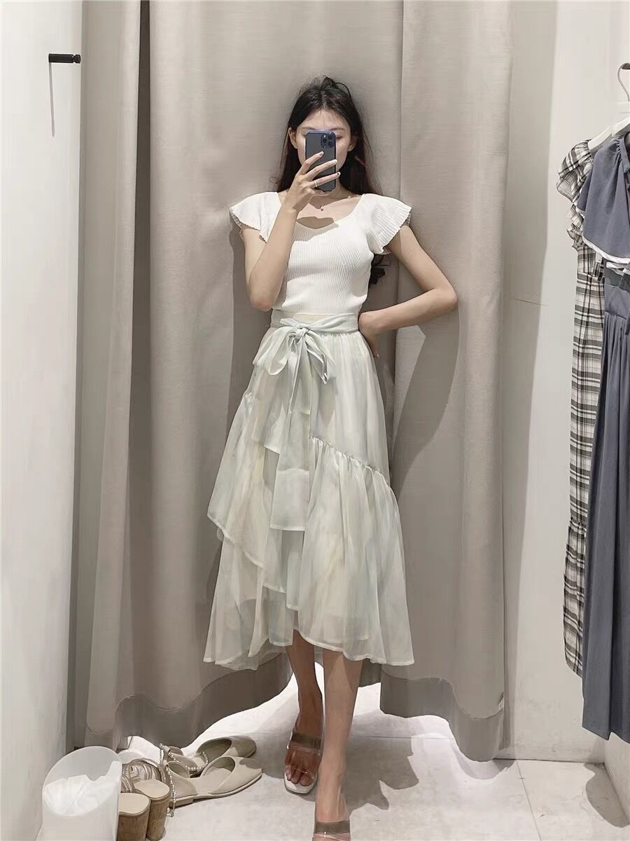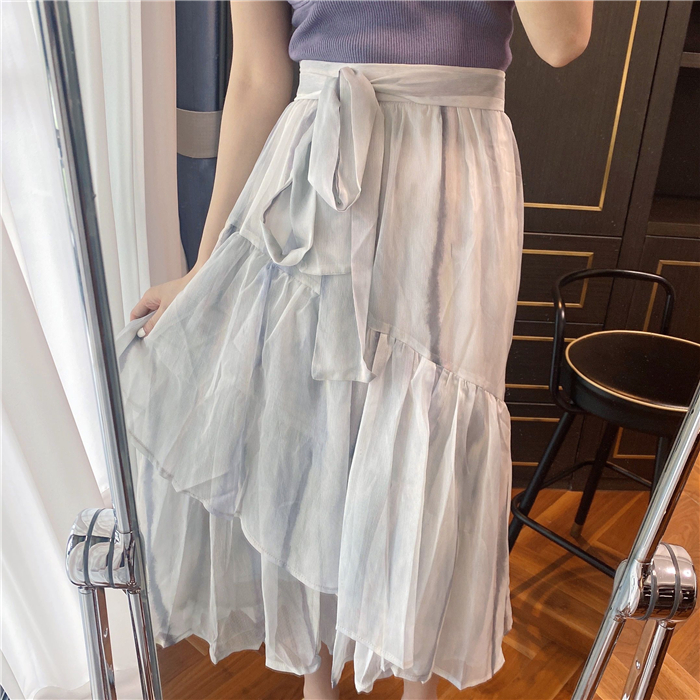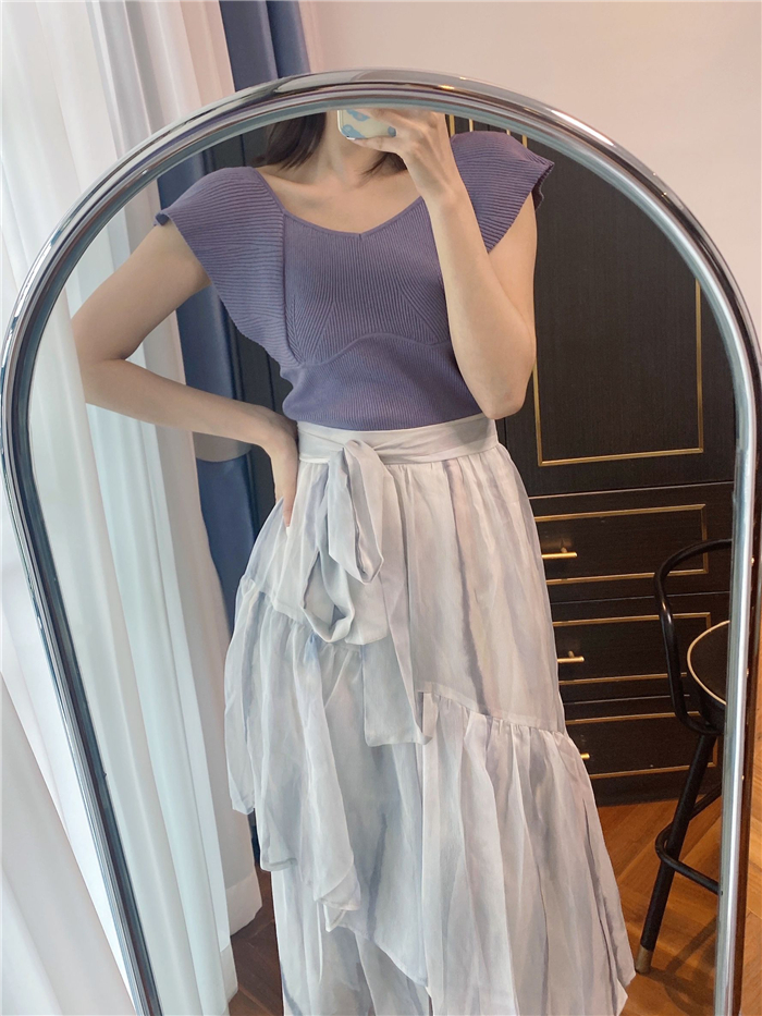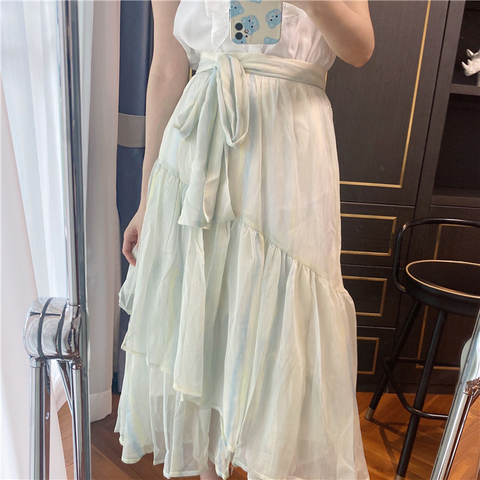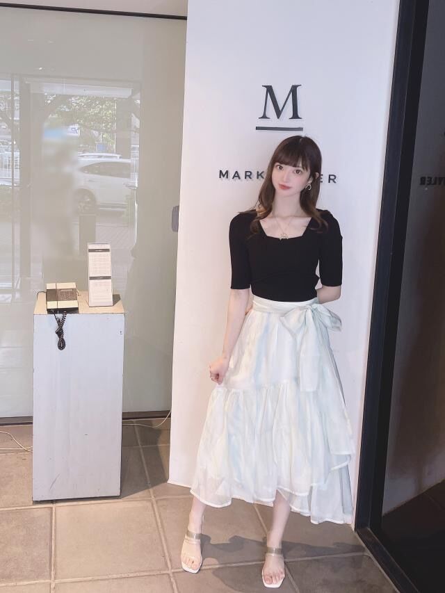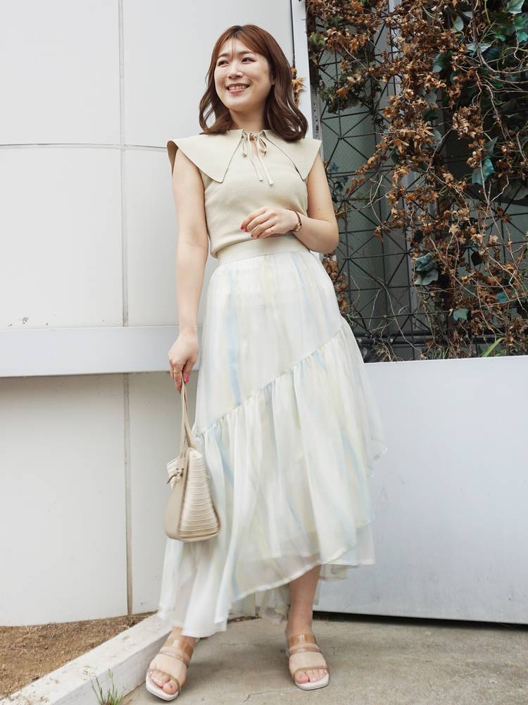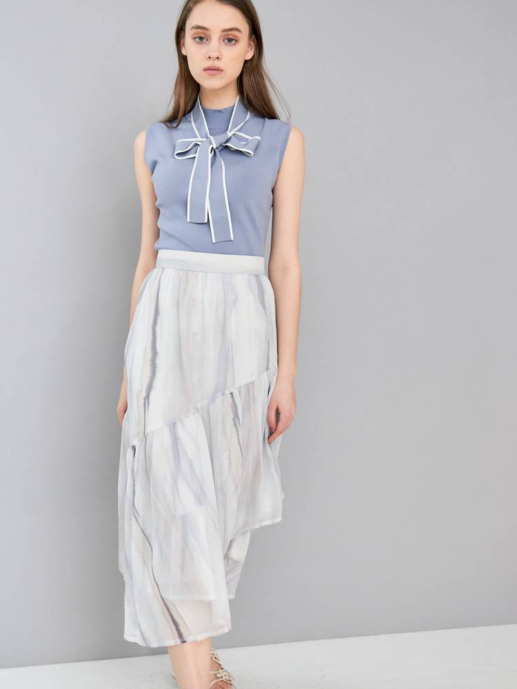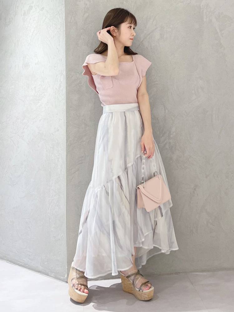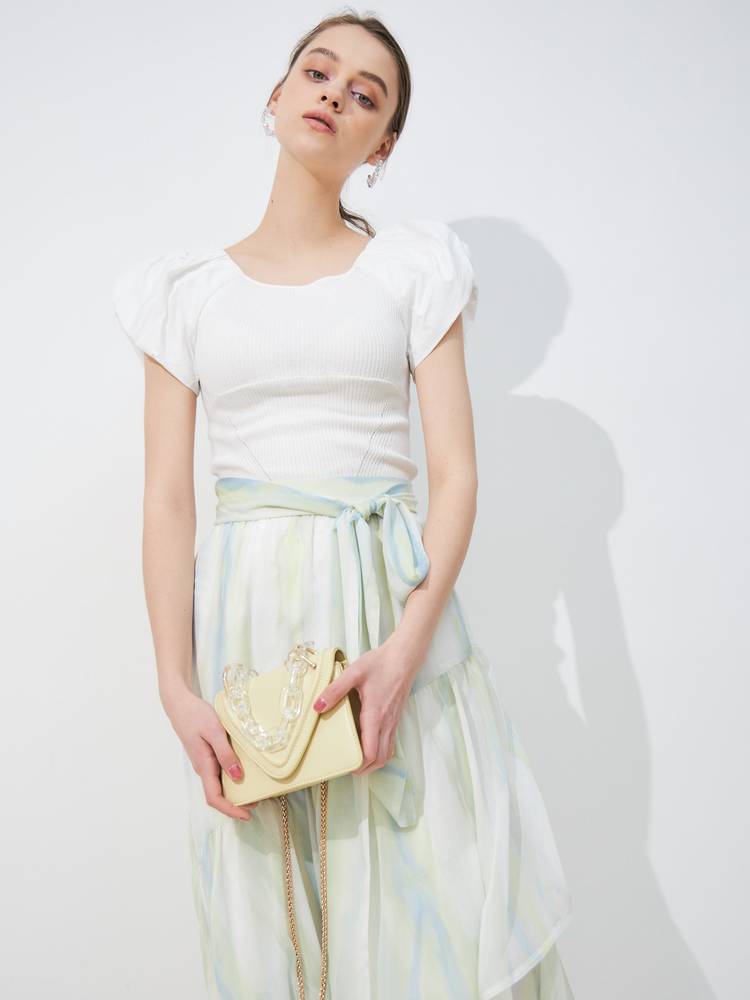 ストライプ見えの繊細で軽やかな楊柳シフォンに、オリジナルのグラデーションペイントを施した特別感のあるスカート。