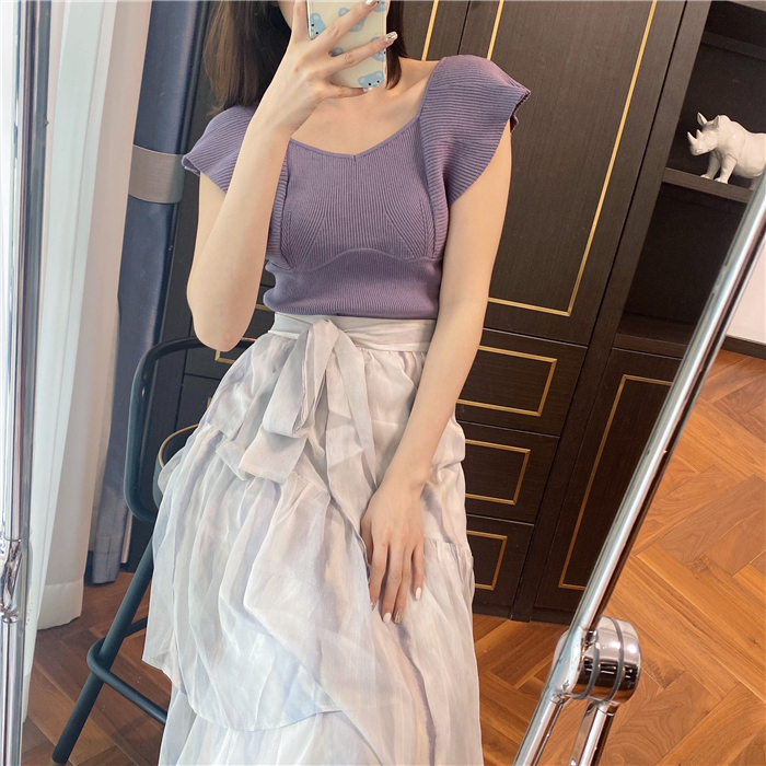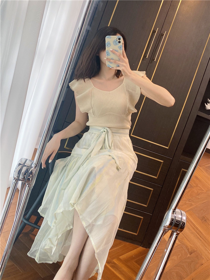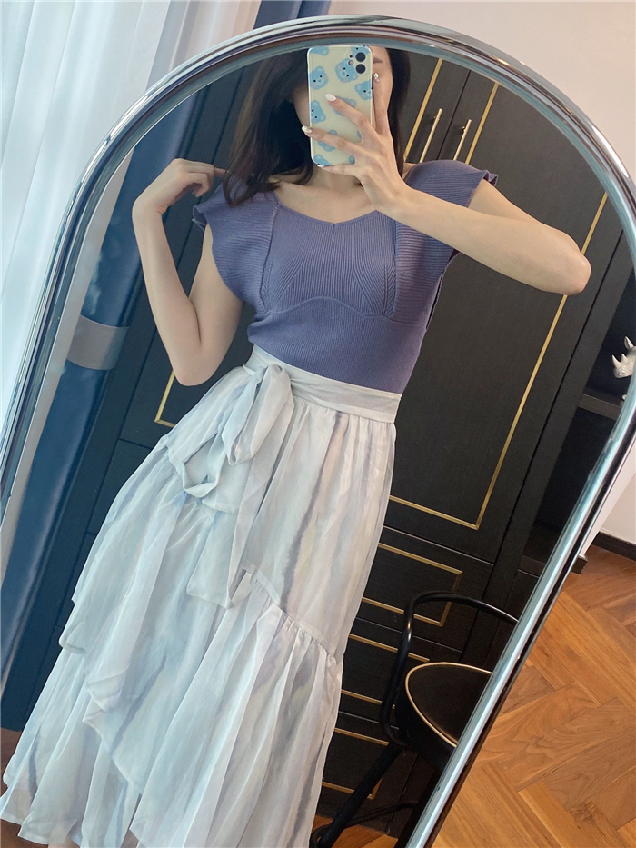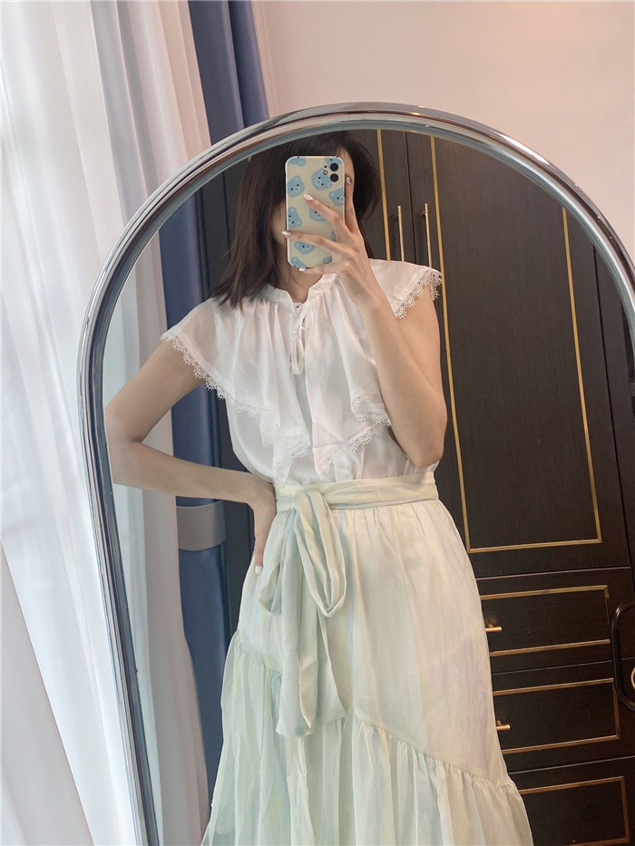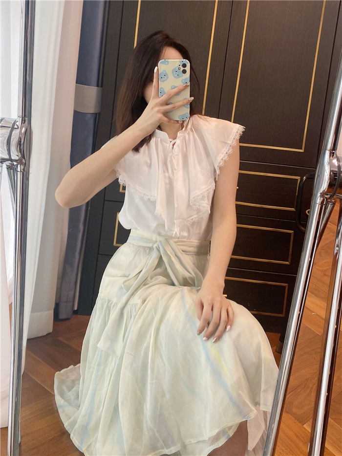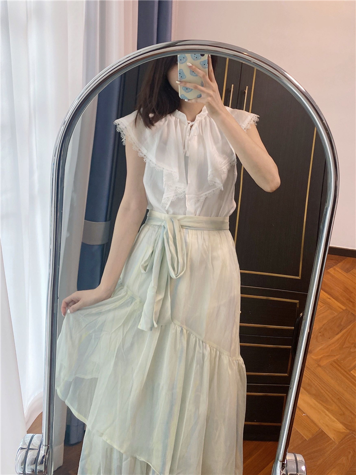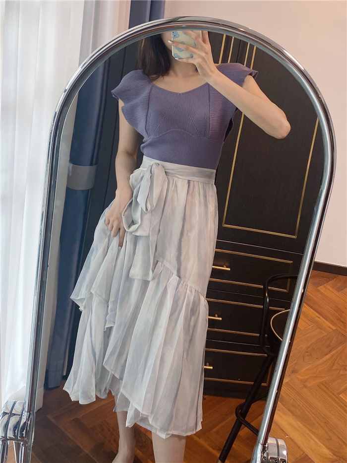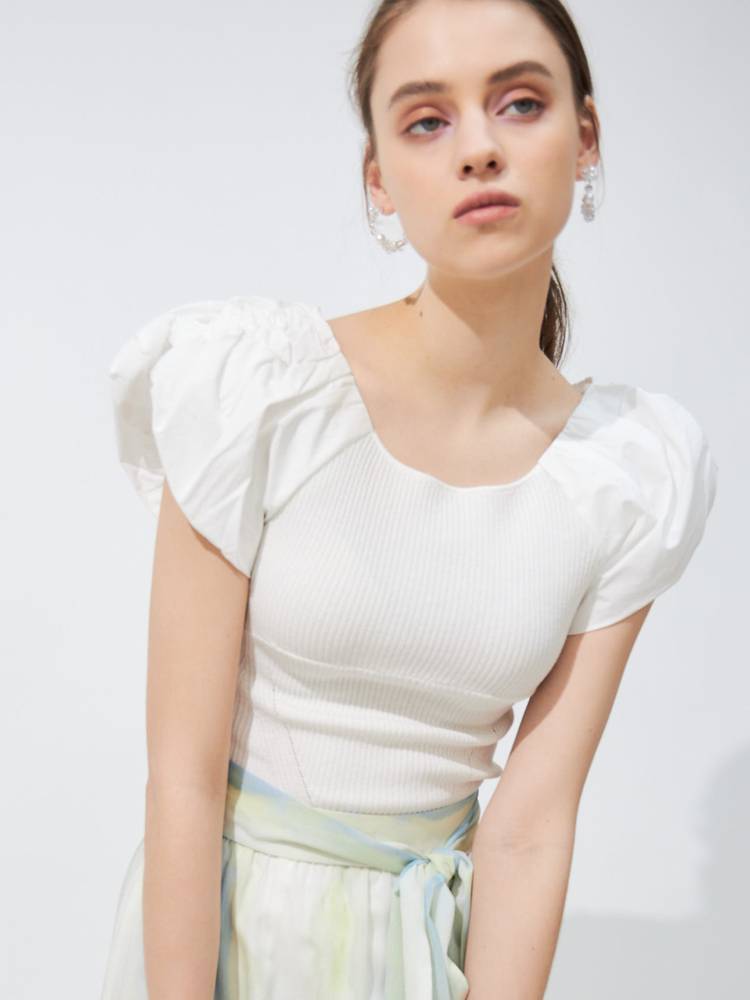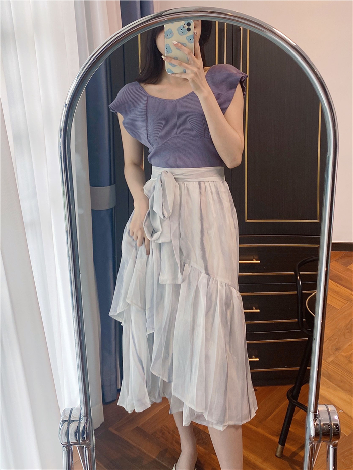 ストライプ見えの繊細で軽やかな楊柳シフォンに、オリジナルのグラデーションペイントを施した特別感のあるスカート。