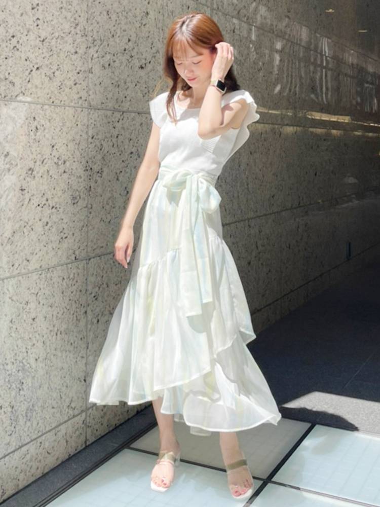 太めのウエストリボンは、後ろで結んでバックスタイルにアクセントをもたせるのもおすすめです。