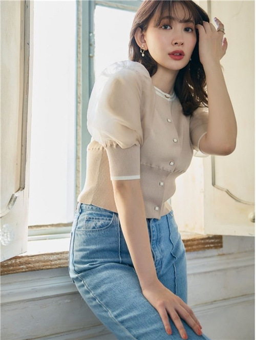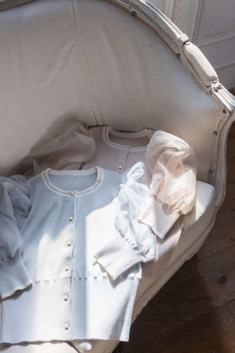 ホリデーシーズンのOrgandy Fairy Knit Topが可愛かったので半袖バージョンを作ってみました!今回は優しいニュアンスカラーのmilky saxとbeigeの2色展開です。