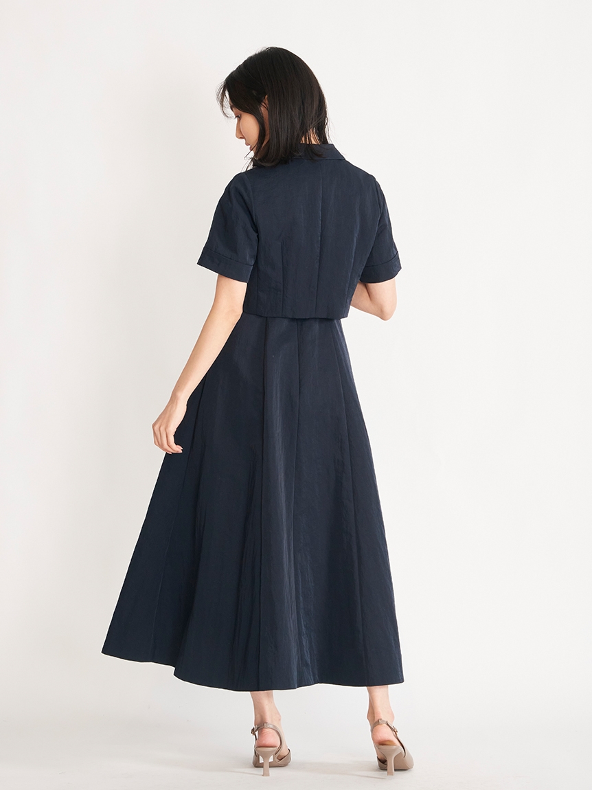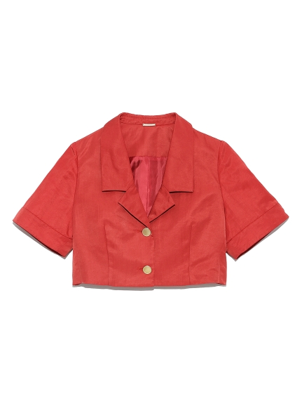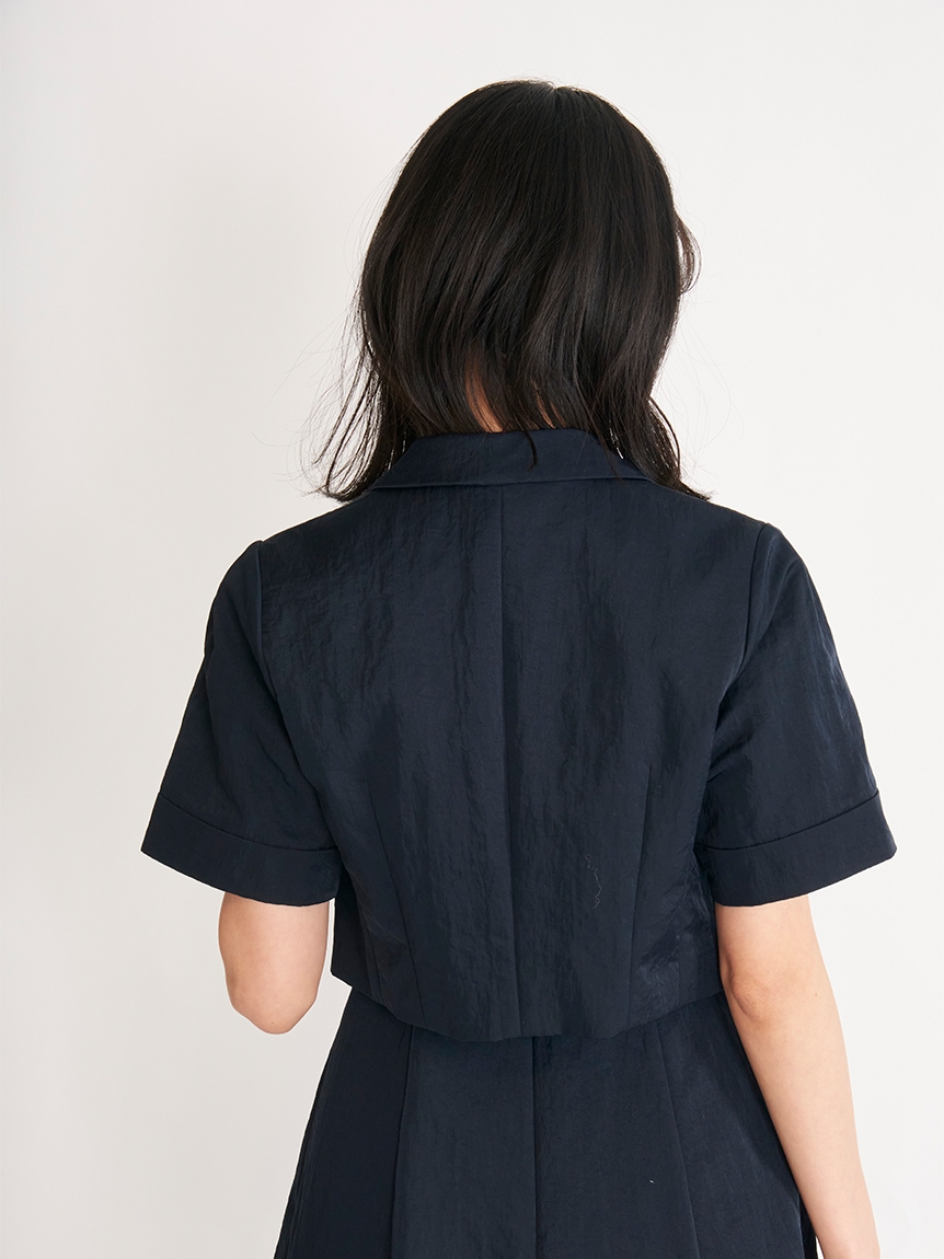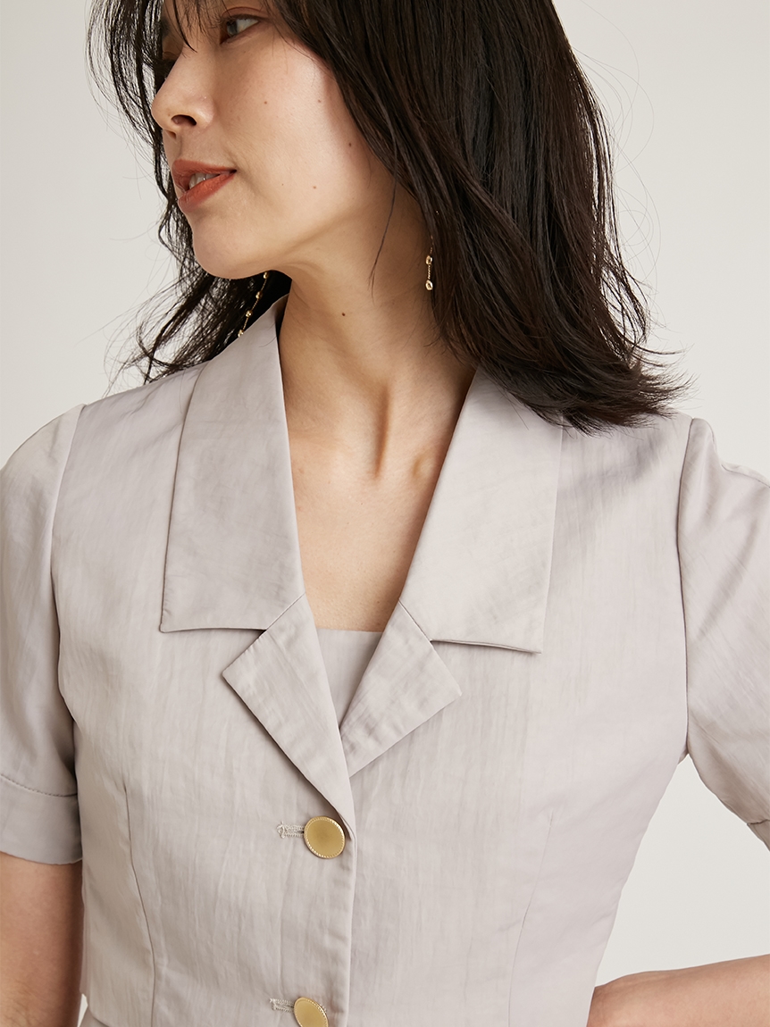 ショート丈のコンパクトなシルエットでトレンドライクに仕上げたハーフスリーブジャケット。小さめの襟や金ボタンを採用したきちんと感のあるルックスが、大人の洗練ムードを高めてくれます。同素材を用いたワンピース(SWFO222047)とのセットアップスタイルがオススメ。品の良さを感じさせるコーディネートで、オケージョンシーンやフォーマルな場でも活躍してくれます。