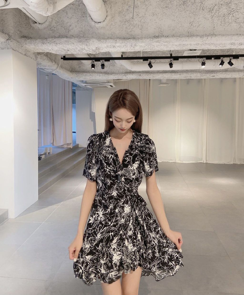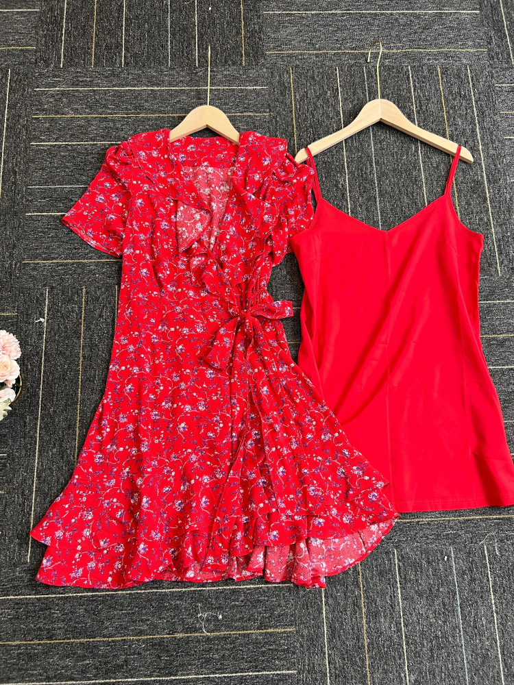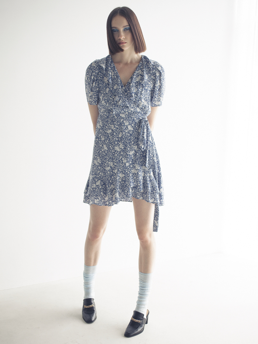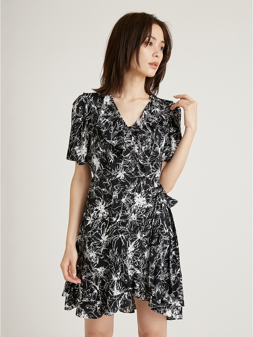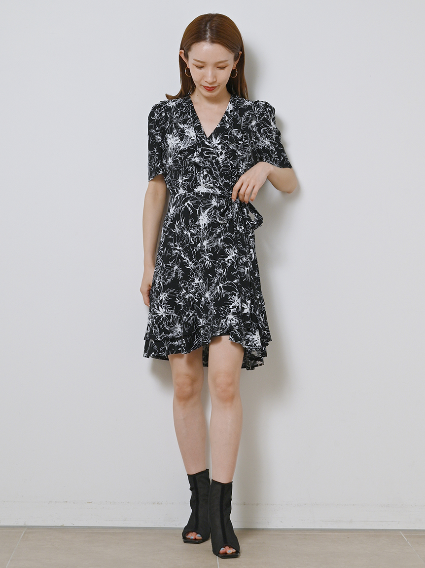 カシュクールプリントミニワンピース