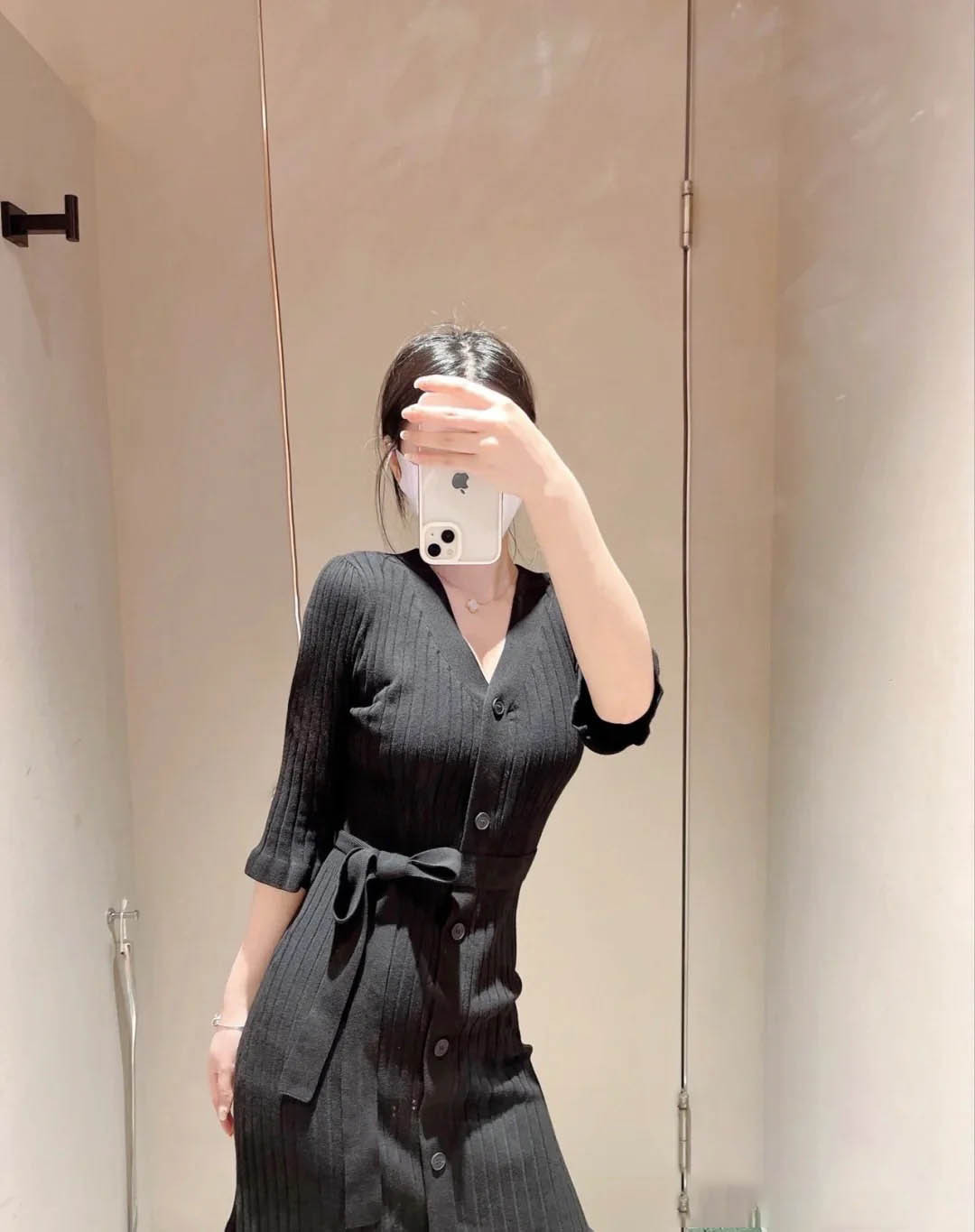 伸縮性のあるソフトなニット素材を使用。オーガニックコットン混のサステナブルな素材です。シックな印象のブラック、肌馴染みの良いモカ、華やかで発色の良いピンクの3色展開です。