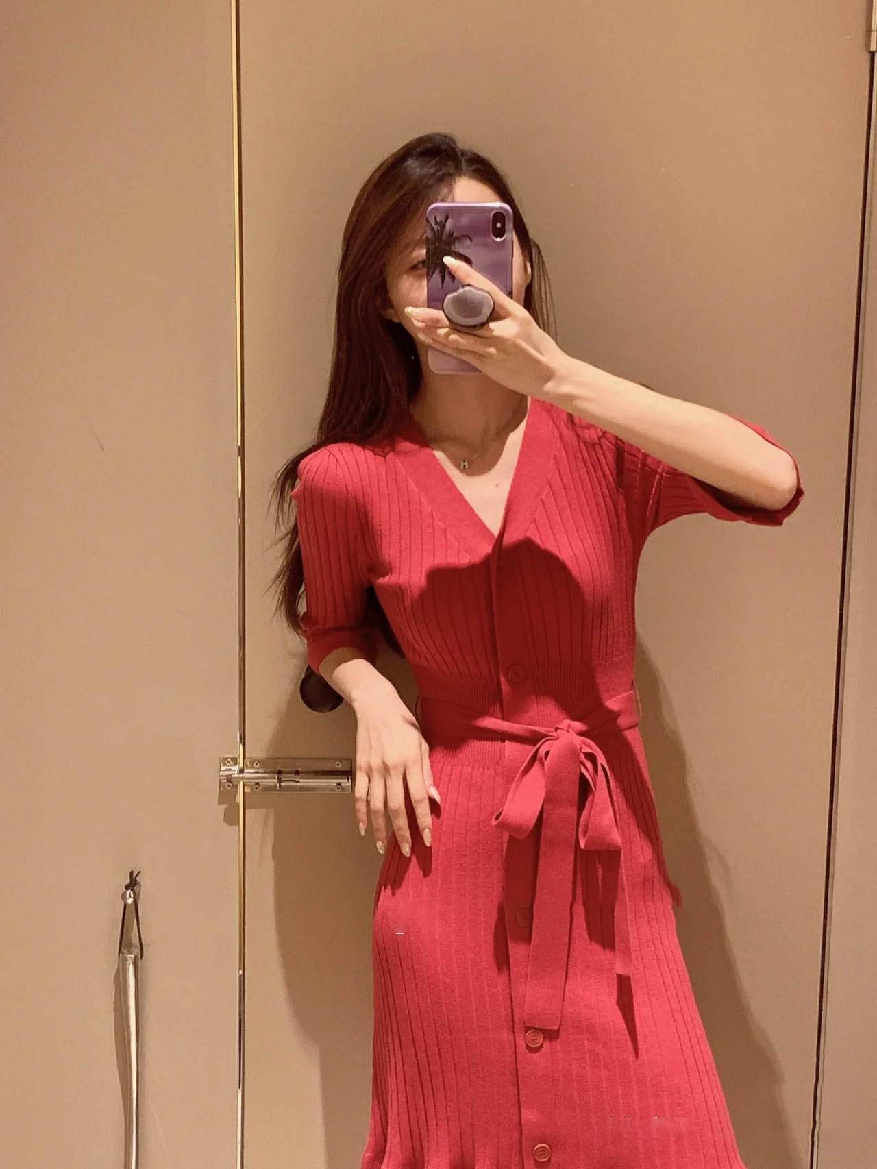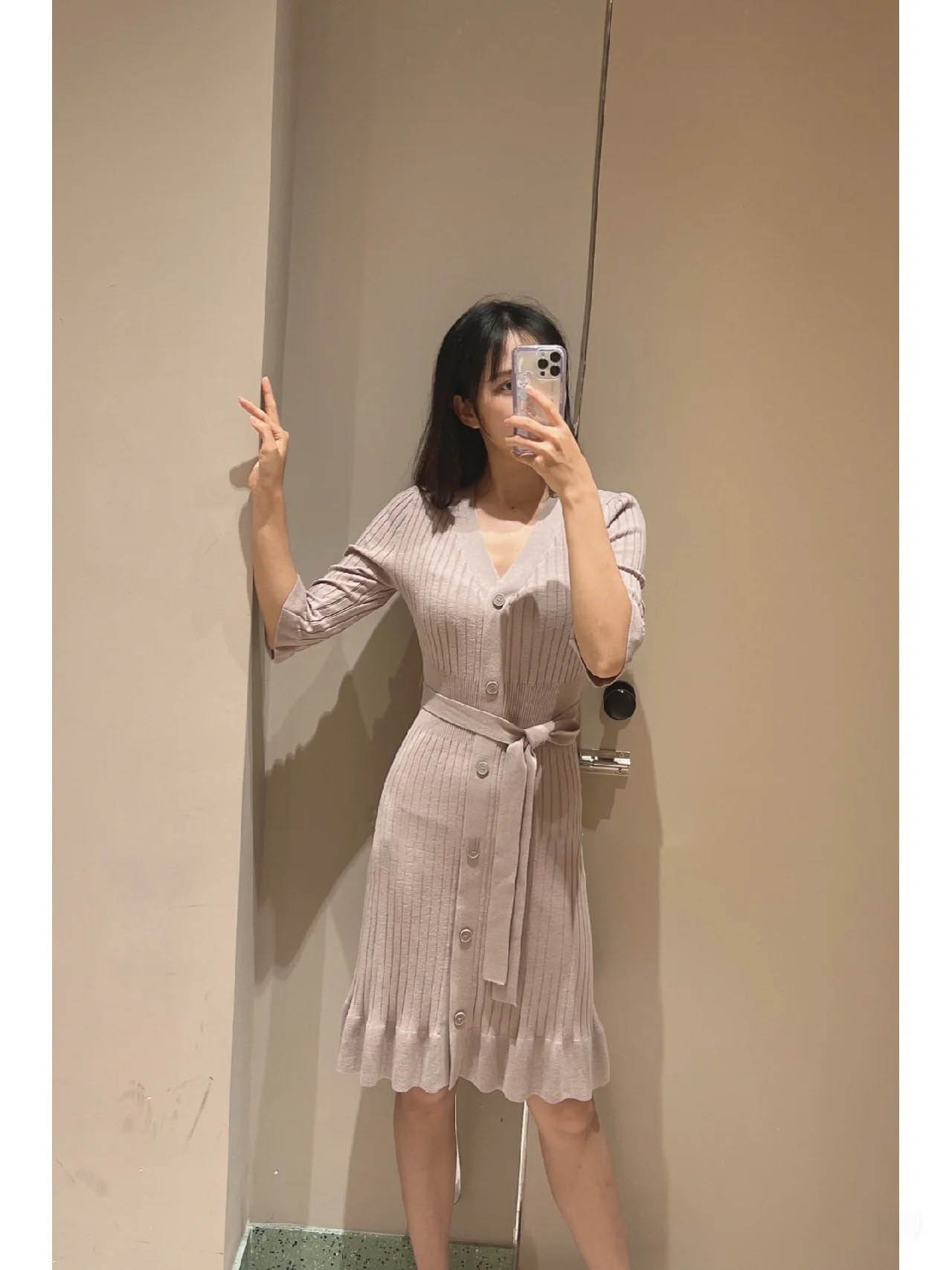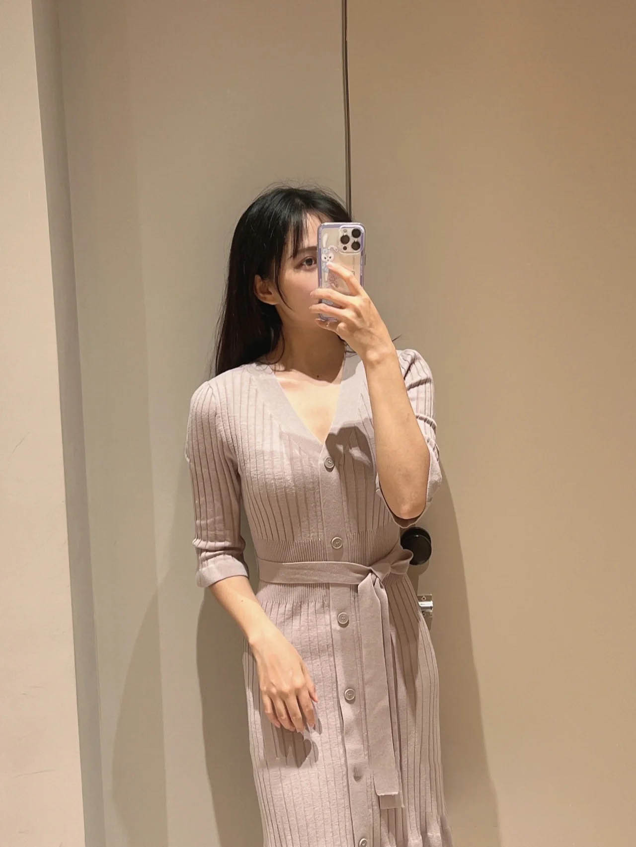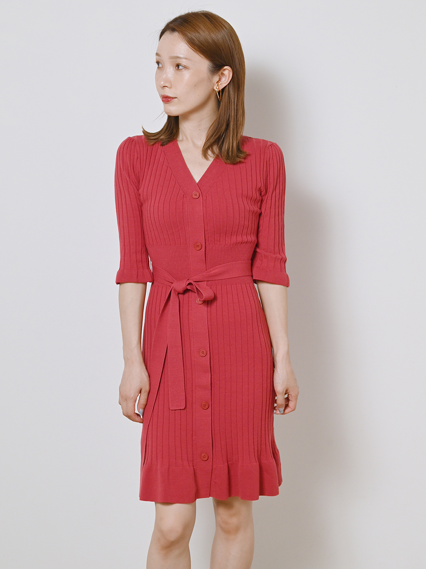 「SNIDEL」で定番の人気を誇るフロントボタンニットワンピースを膝丈ミニにリデザイン。トレンドライクなルックスでスタイリングの鮮度を高める1着が届きました。上品さをキープしながら、女性らしい身体のラインを演出してくれるフィット&フレアの美シルエット。編地を切り替えたウエストには付属のベルトをプラスしアクセントをプラスしています。