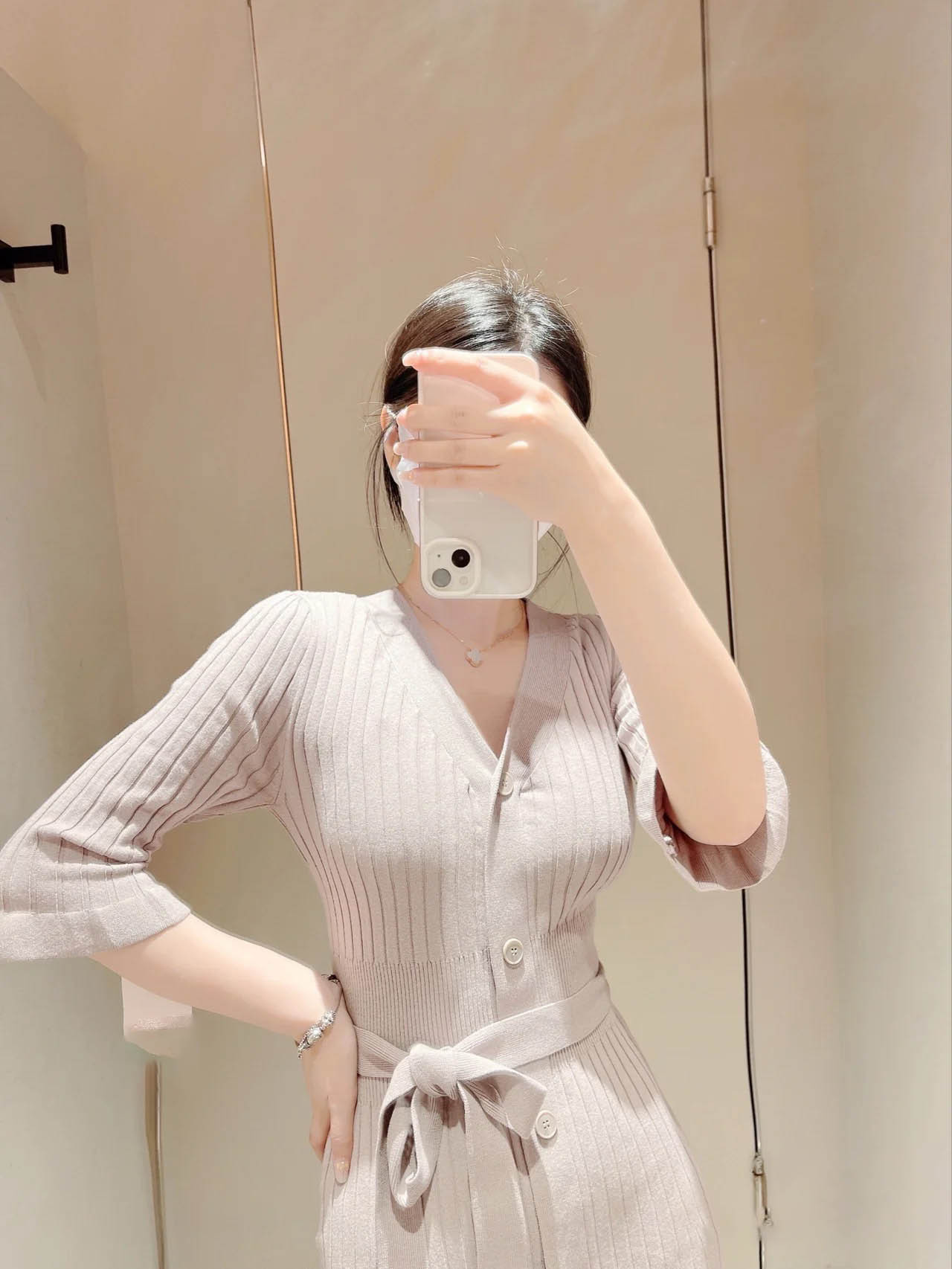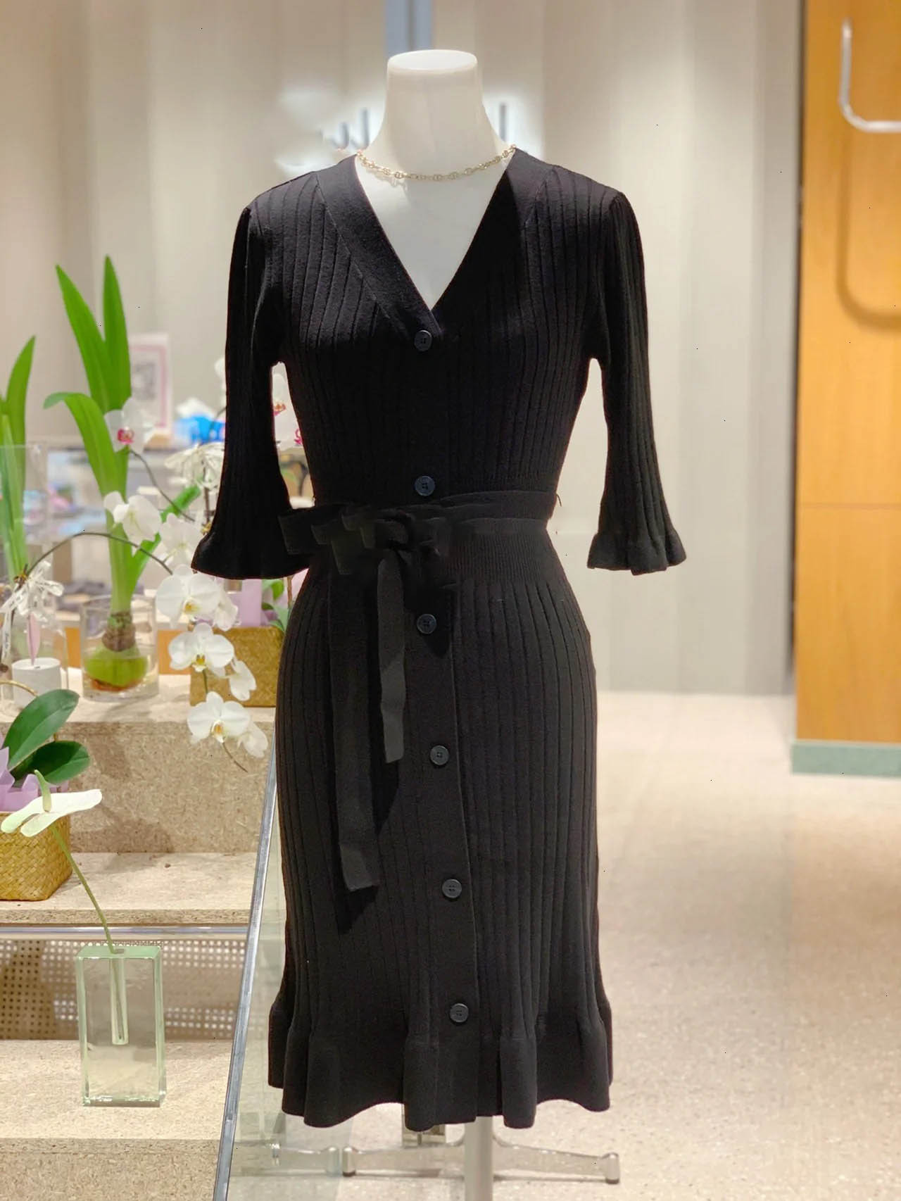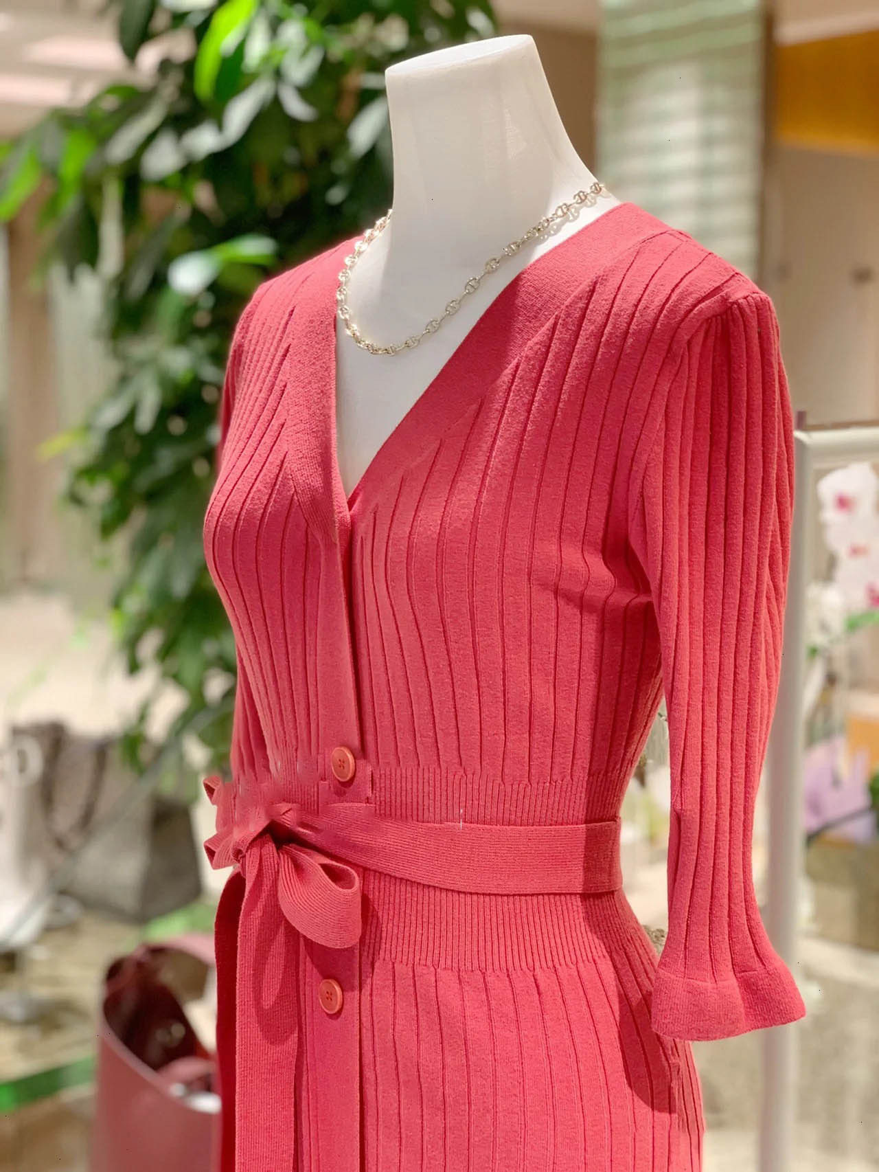 「SNIDEL」で定番の人気を誇るフロントボタンニットワンピースを膝丈ミニにリデザイン。トレンドライクなルックスでスタイリングの鮮度を高める1着が届きました。上品さをキープしながら、女性らしい身体のラインを演出してくれるフィット&フレアの美シルエット。編地を切り替えたウエストには付属のベルトをプラスしアクセントをプラスしています。