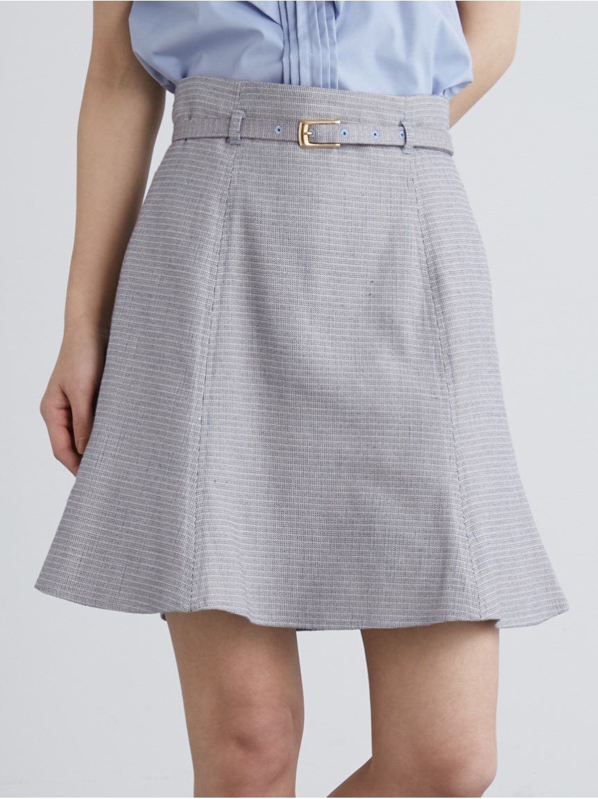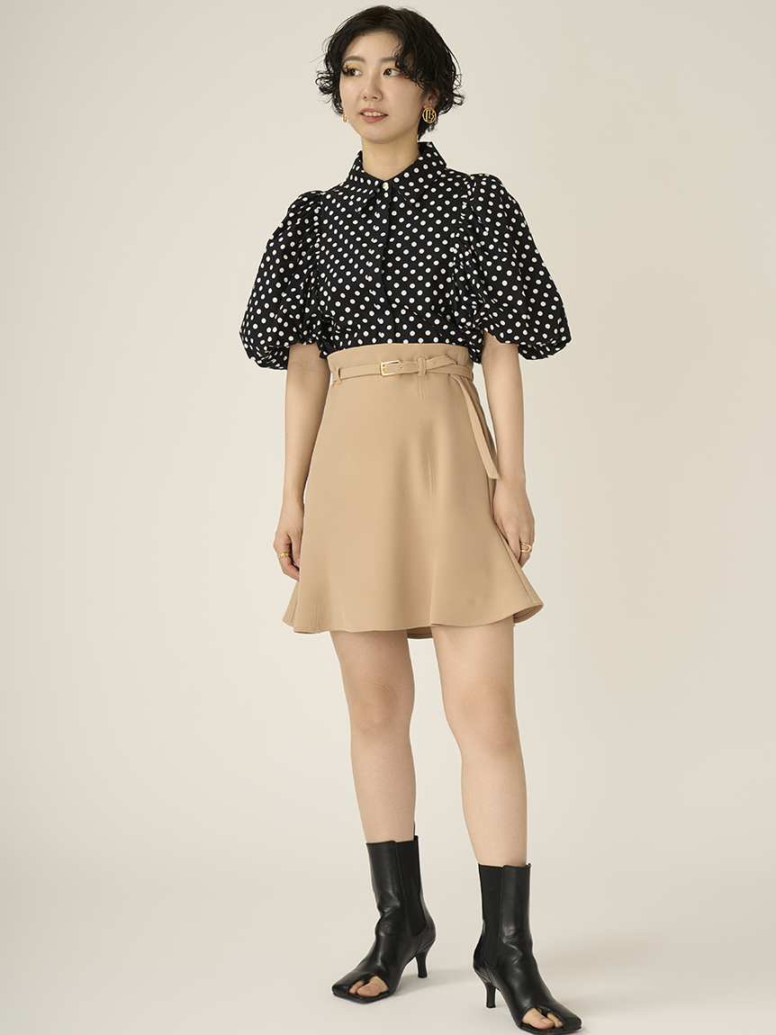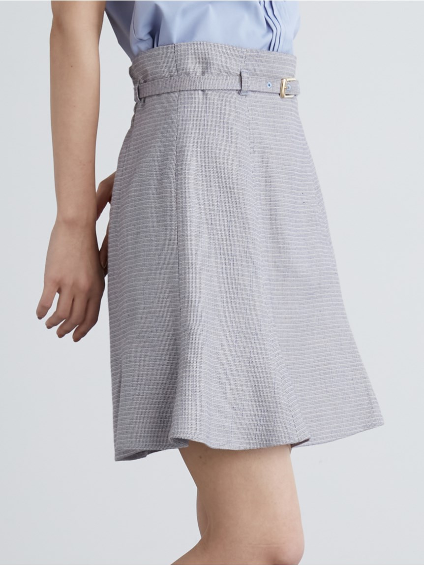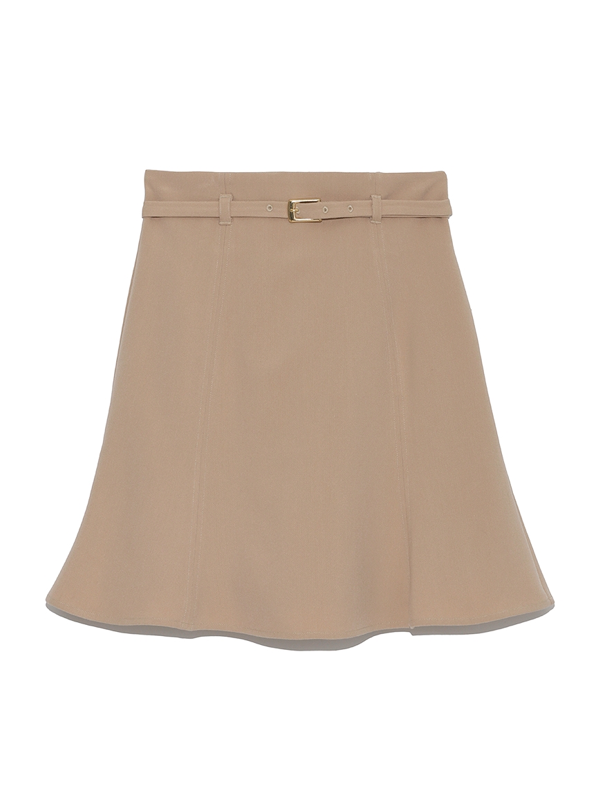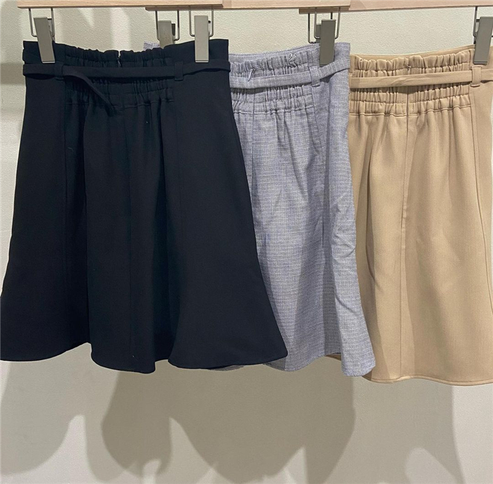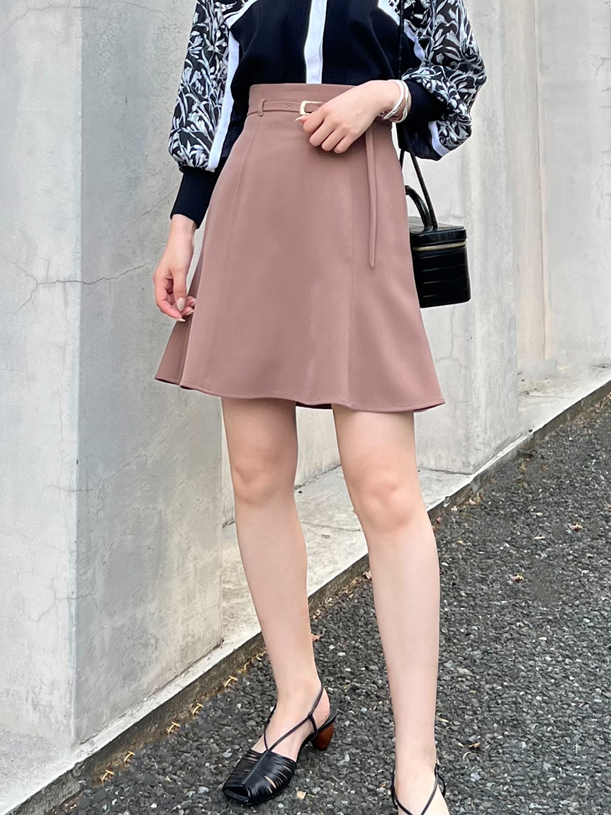裾に向かってフレアに広がる愛らしいシルエットが印象的な、大人っぽく女性らしいスタイルにぴったりなスカートショートパンツ。内側がパンツ仕様なので安心感があり、実用性を兼ね備えた技ありの1着です。ゴールドバックルのベルトを備えたハイウエストデザインは、スタイルアップ効果◎。今年らしいボリュームトップスを合わせたメリハリのあるスタイリングがおススメです。