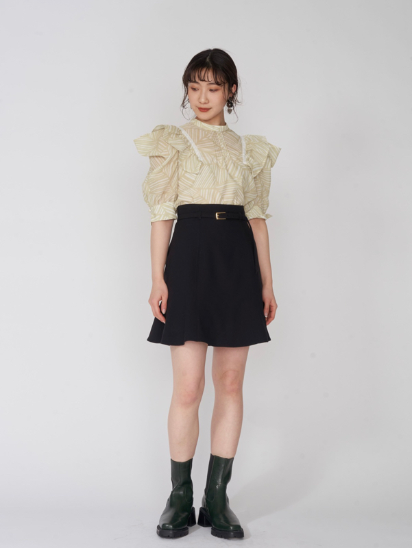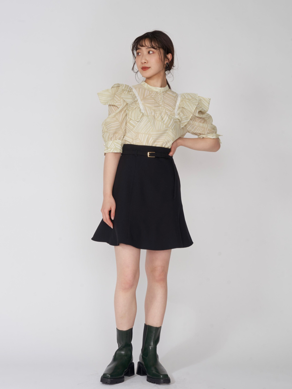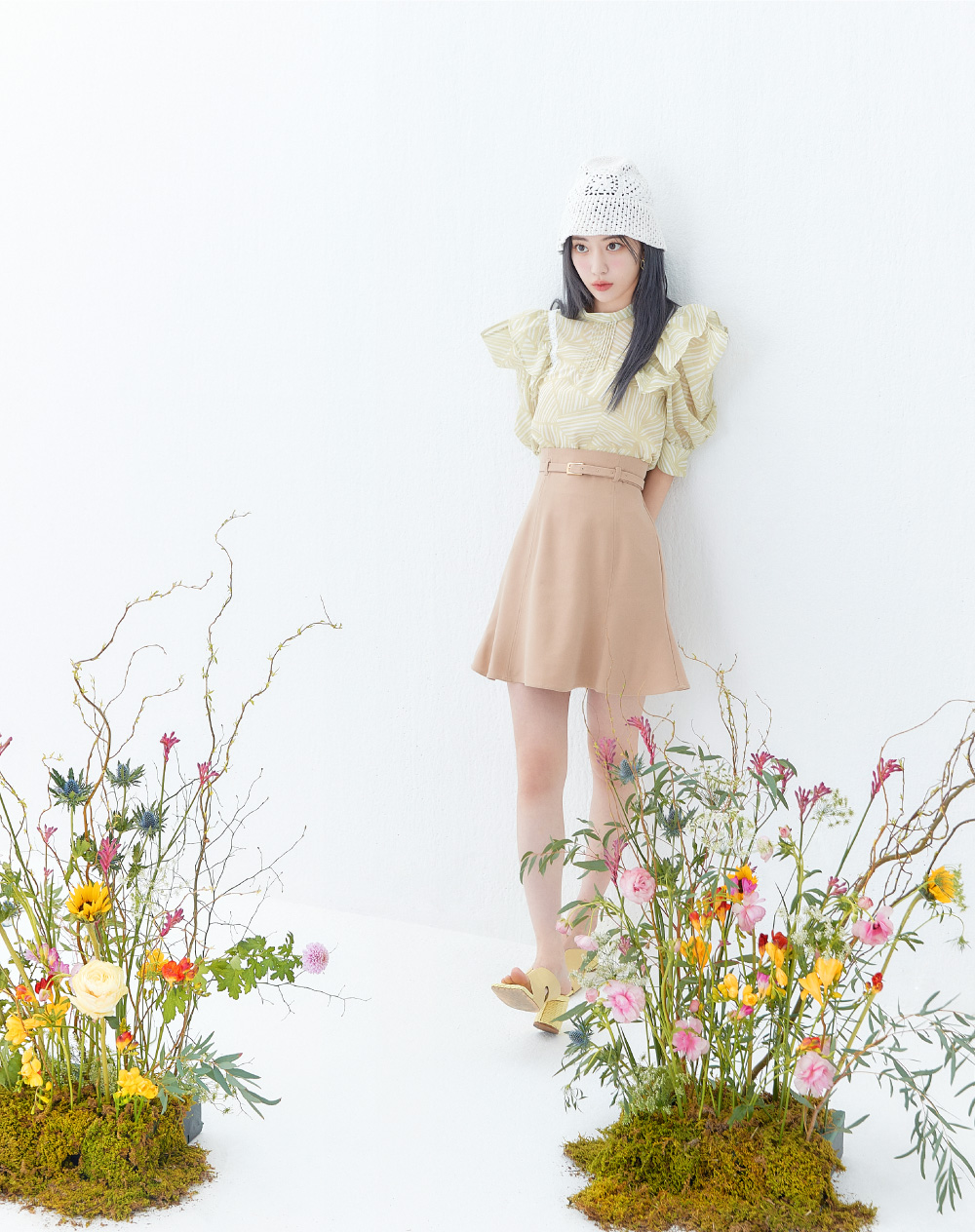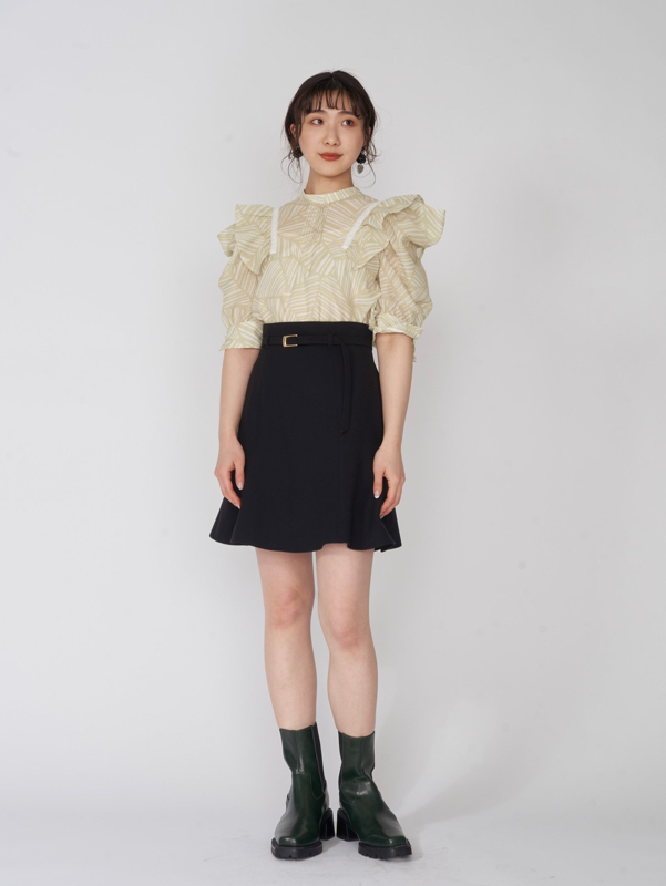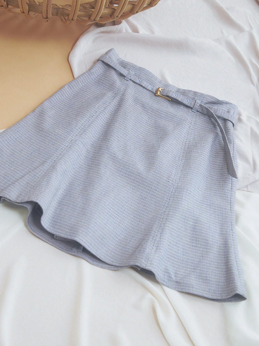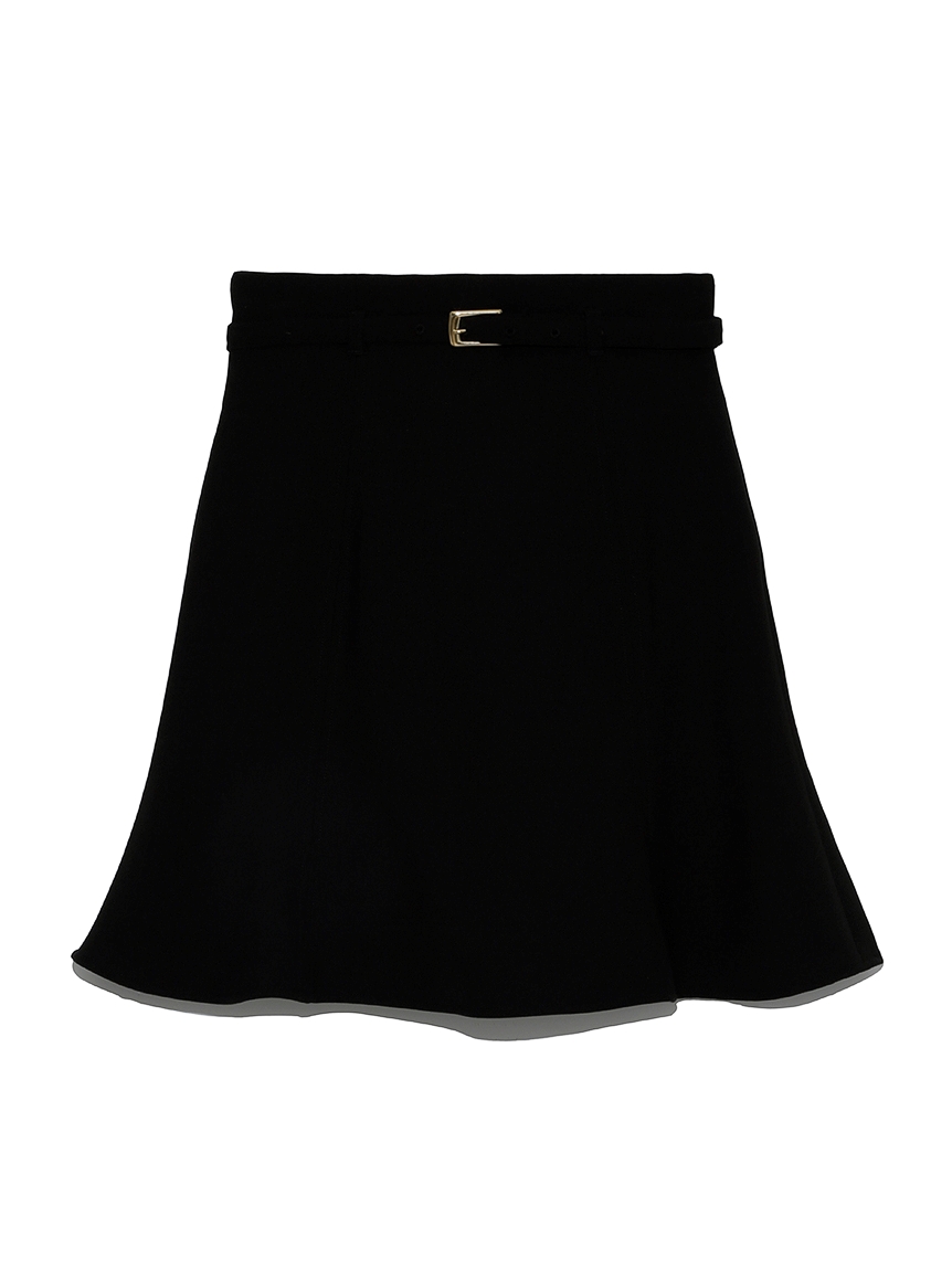 裾に向かってフレアに広がる愛らしいシルエットが印象的な、大人っぽく女性らしいスタイルにぴったりなスカートショートパンツ。内側がパンツ仕様なので安心感があり、実用性を兼ね備えた技ありの1着です。ゴールドバックルのベルトを備えたハイウエストデザインは、スタイルアップ効果◎。今年らしいボリュームトップスを合わせたメリハリのあるスタイリングがおススメです。