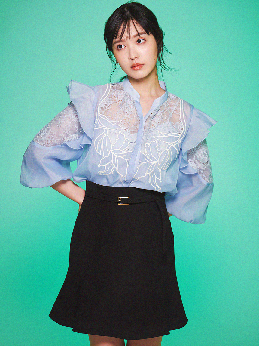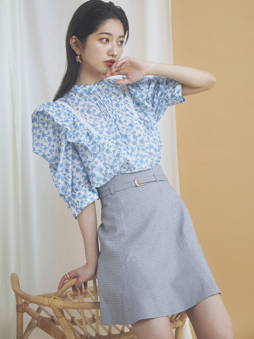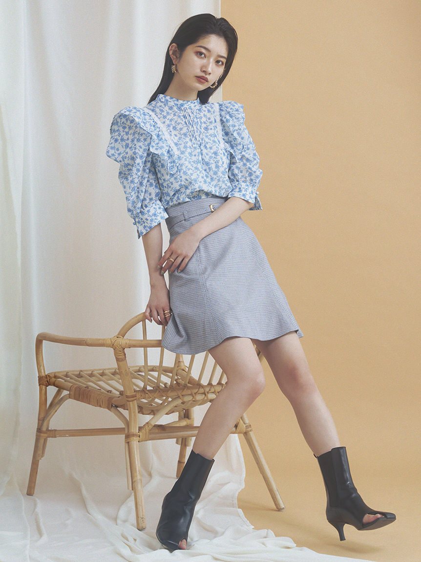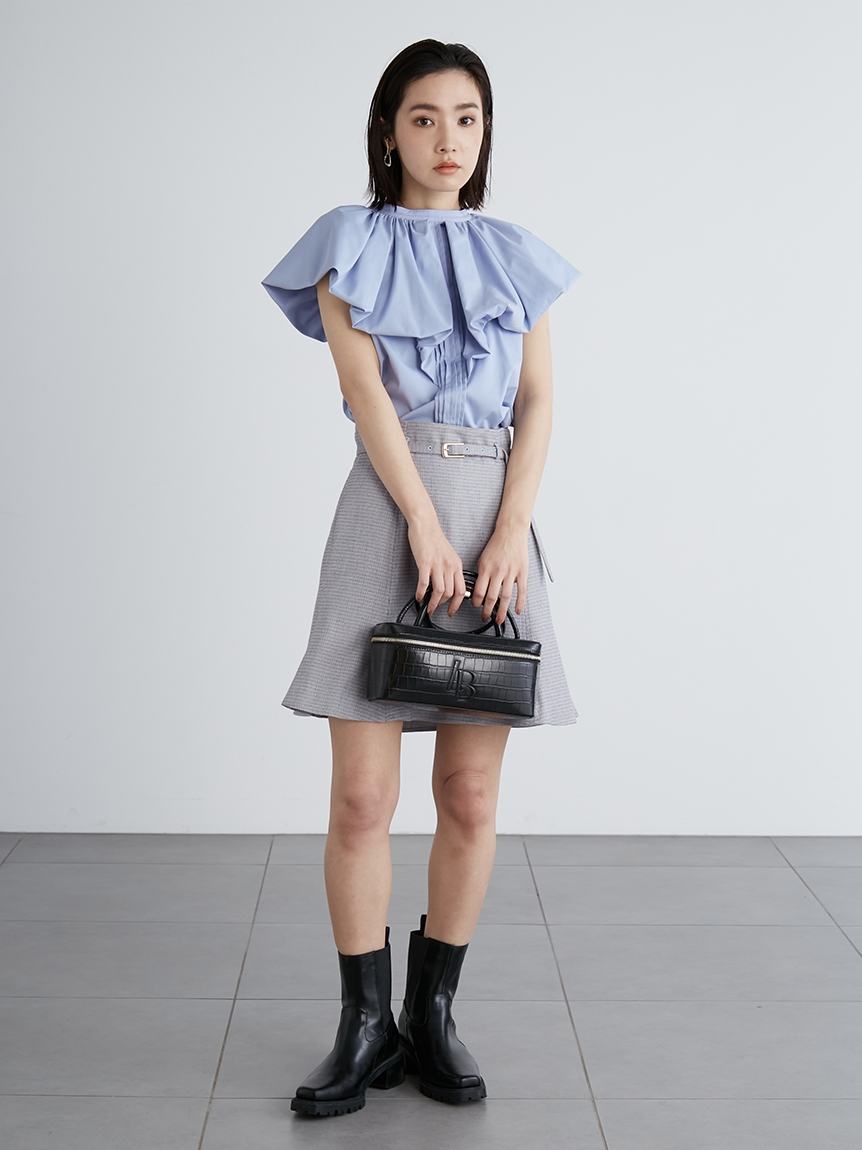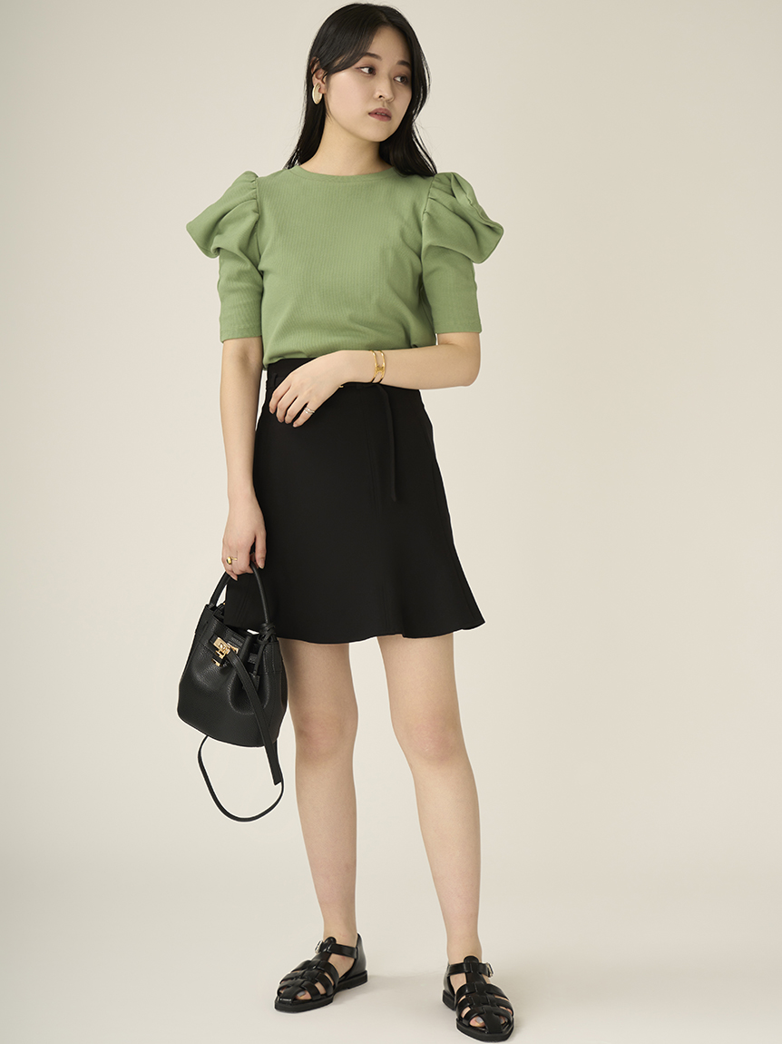 裾に向かってフレアに広がる愛らしいシルエットが印象的な、大人っぽく女性らしいスタイルにぴったりなスカートショートパンツ。内側がパンツ仕様なので安心感があり、実用性を兼ね備えた技ありの1着です。ゴールドバックルのベルトを備えたハイウエストデザインは、スタイルアップ効果◎。今年らしいボリュームトップスを合わせたメリハリのあるスタイリングがおススメです。
