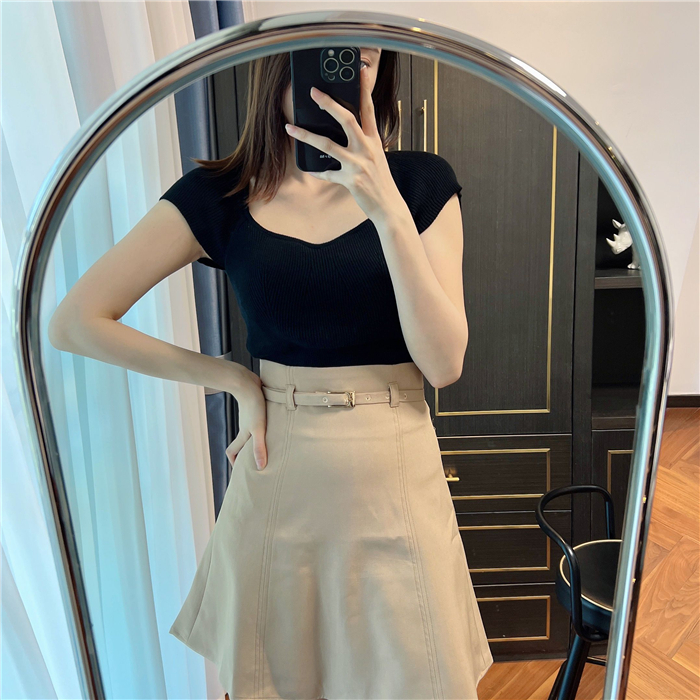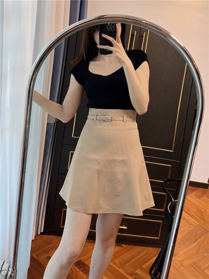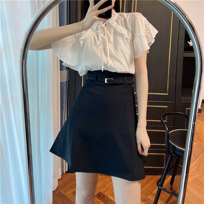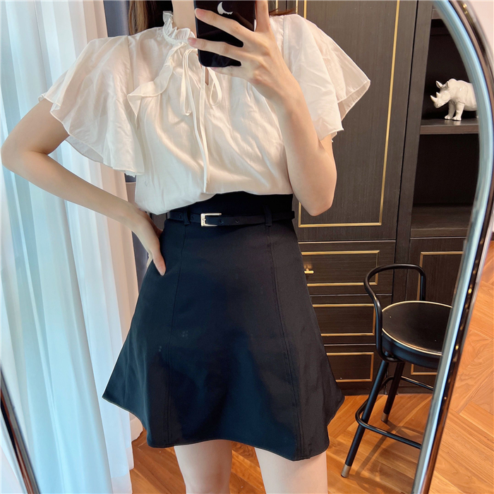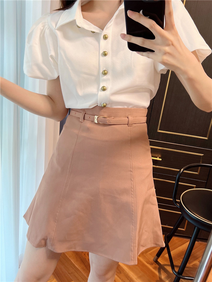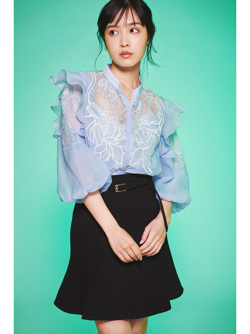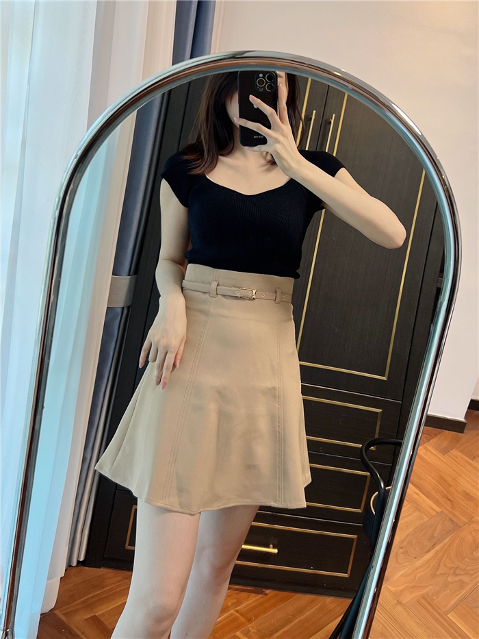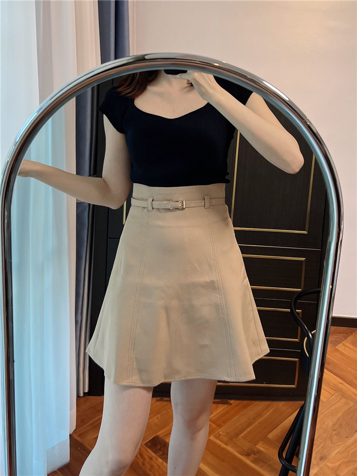 裾に向かってフレアに広がる愛らしいシルエットが印象的な、大人っぽく女性らしいスタイルにぴったりなスカートショートパンツ。内側がパンツ仕様なので安心感があり、実用性を兼ね備えた技ありの1着です。ゴールドバックルのベルトを備えたハイウエストデザインは、スタイルアップ効果◎。今年らしいボリュームトップスを合わせたメリハリのあるスタイリングがおススメです。